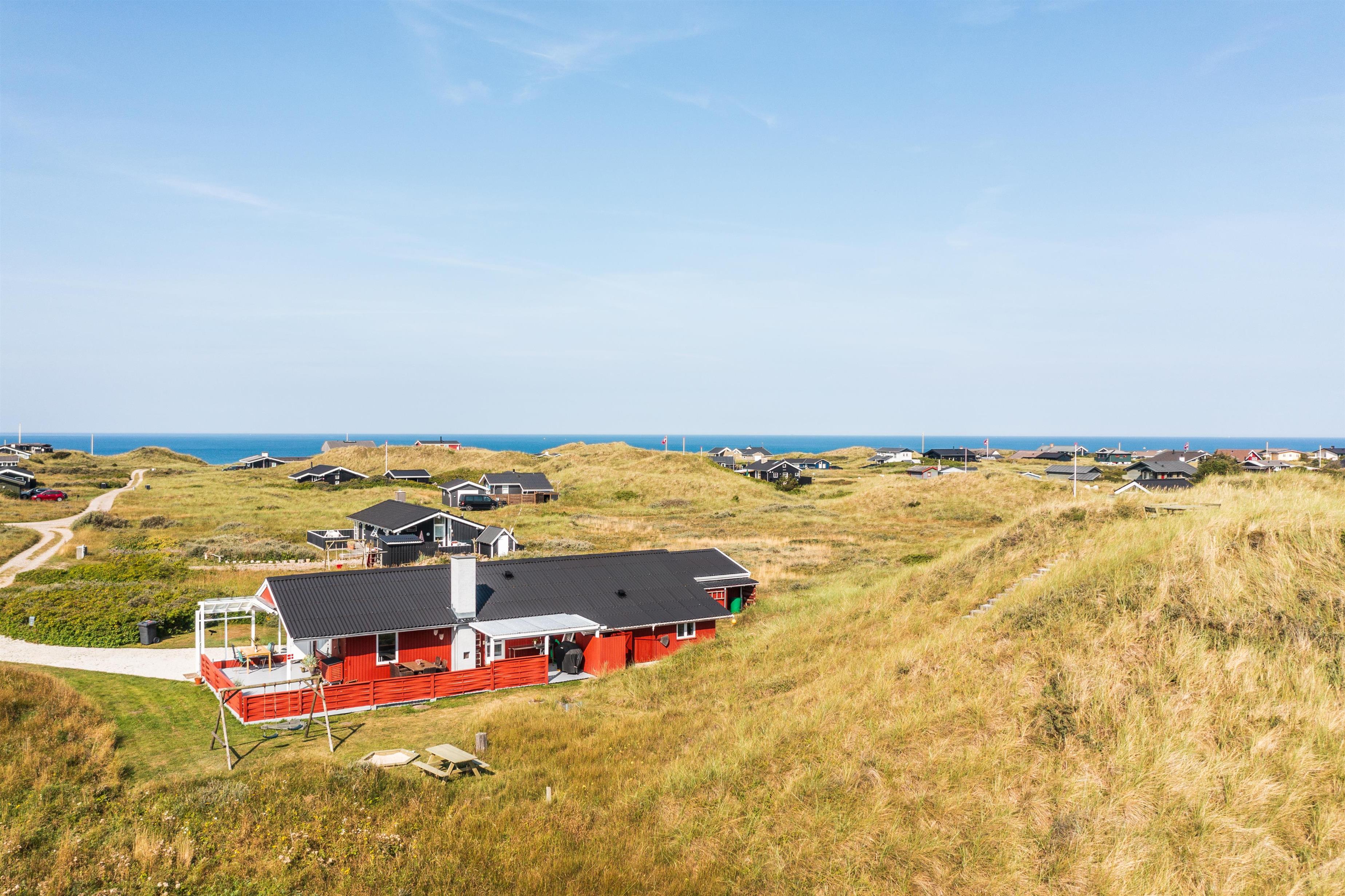 Tæt på huset fører en trappe op til et fantastisk udsigtspunkt med bord-bænke-sæt – et oplagt sted at nyde solnedgangen over vestkysten, mens himlen maler sig i smukke farver. Naturen omkring feriehuset er rig på dyreliv, og det er ikke ualmindeligt at se fasaner eller råvildt passere forbi.