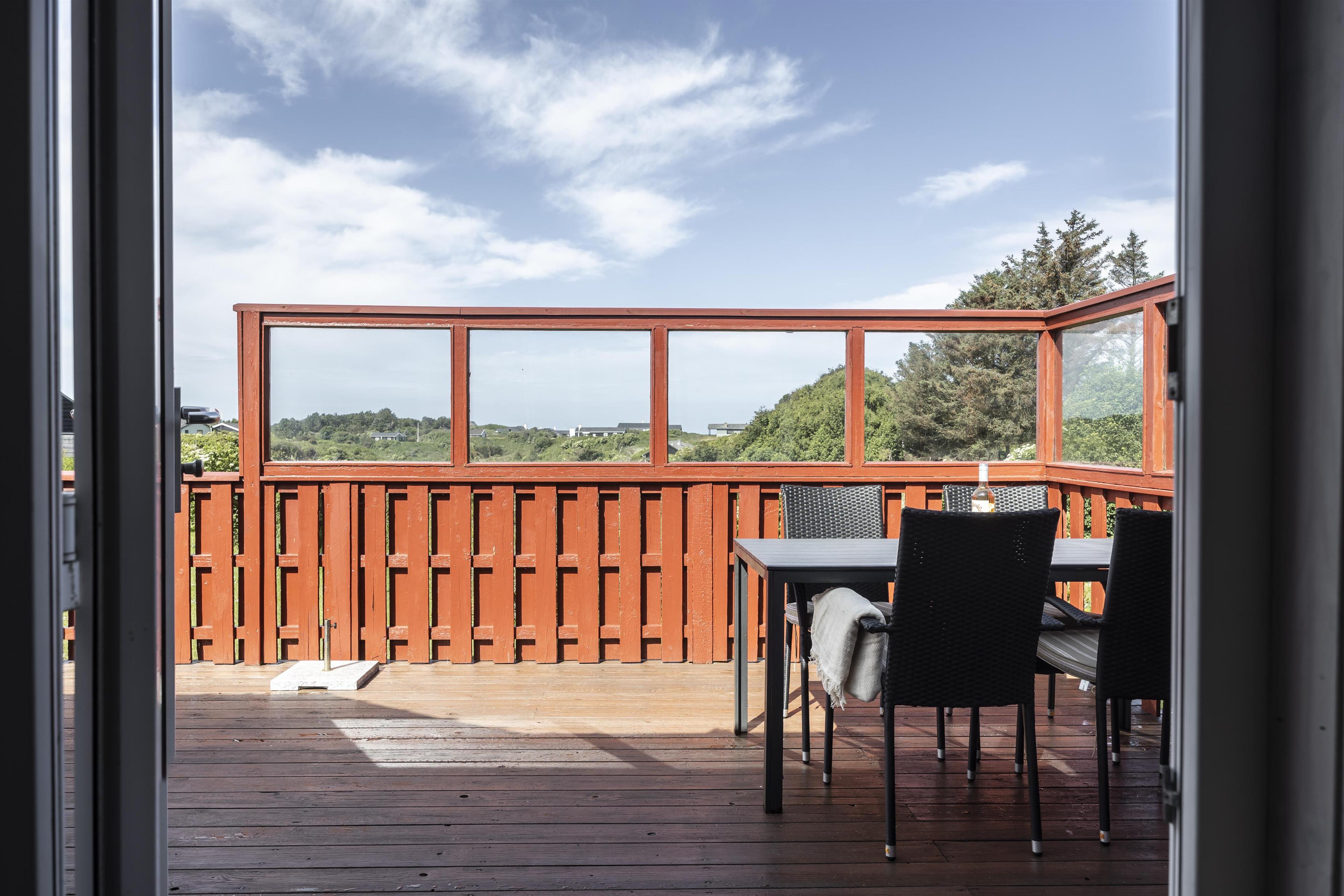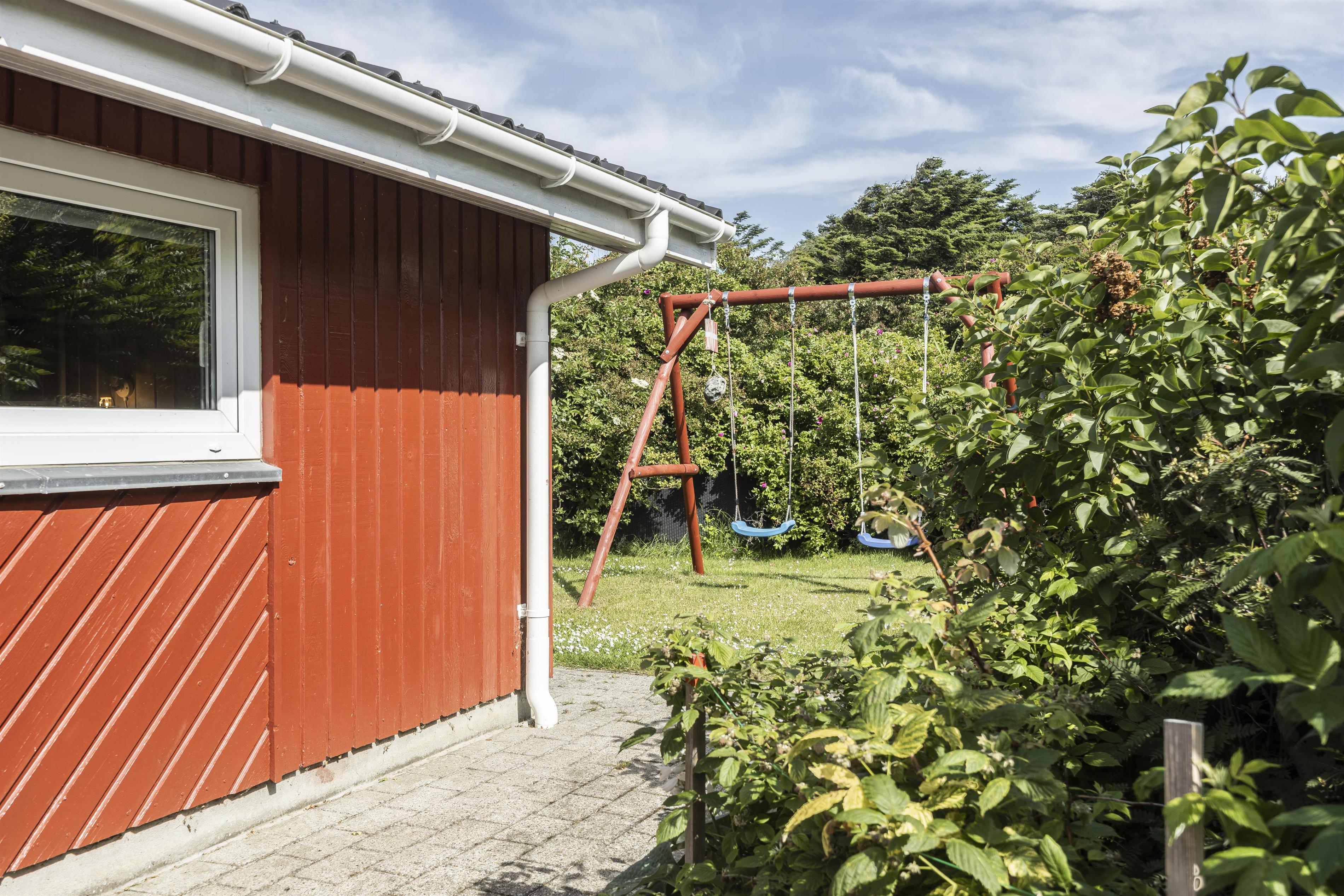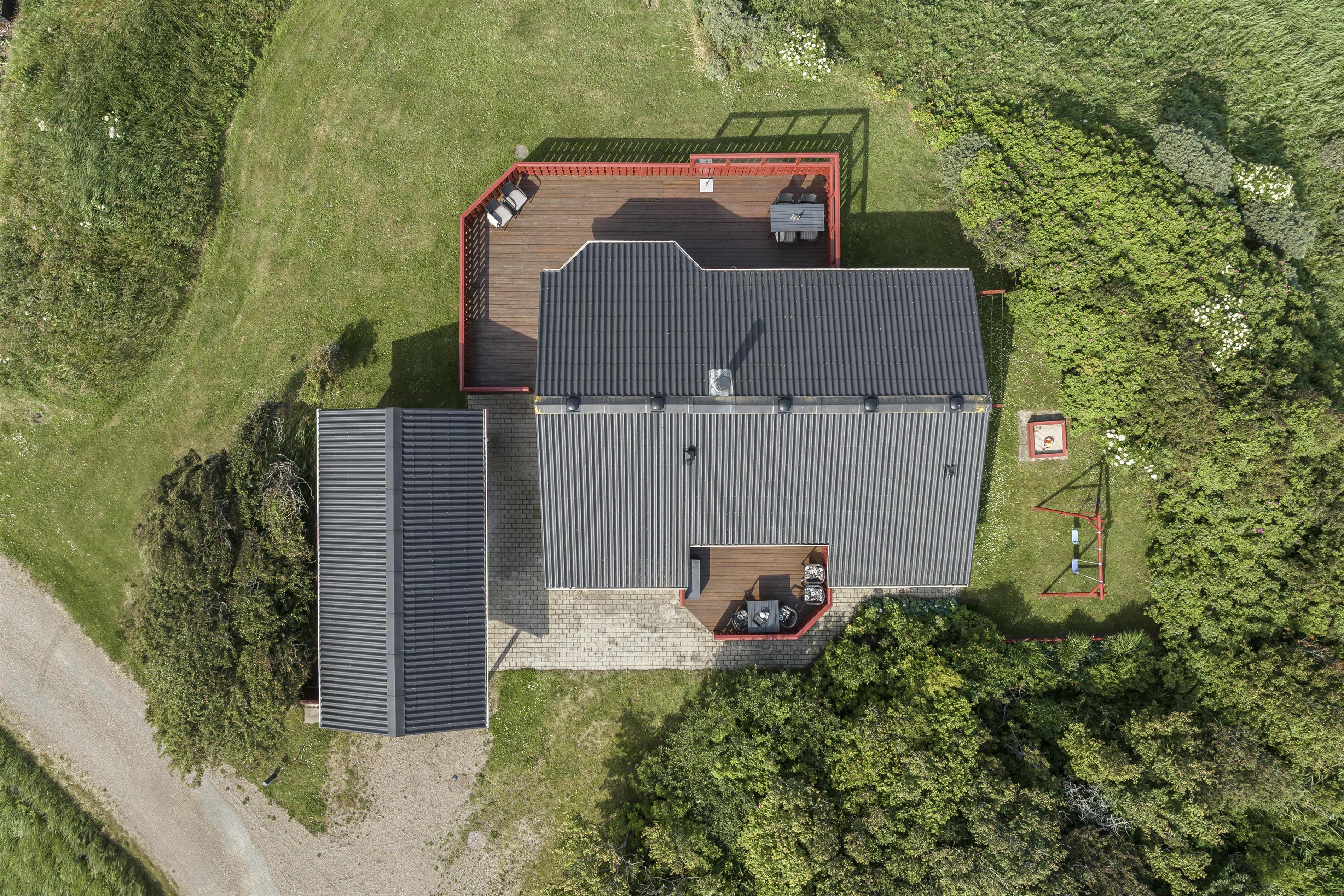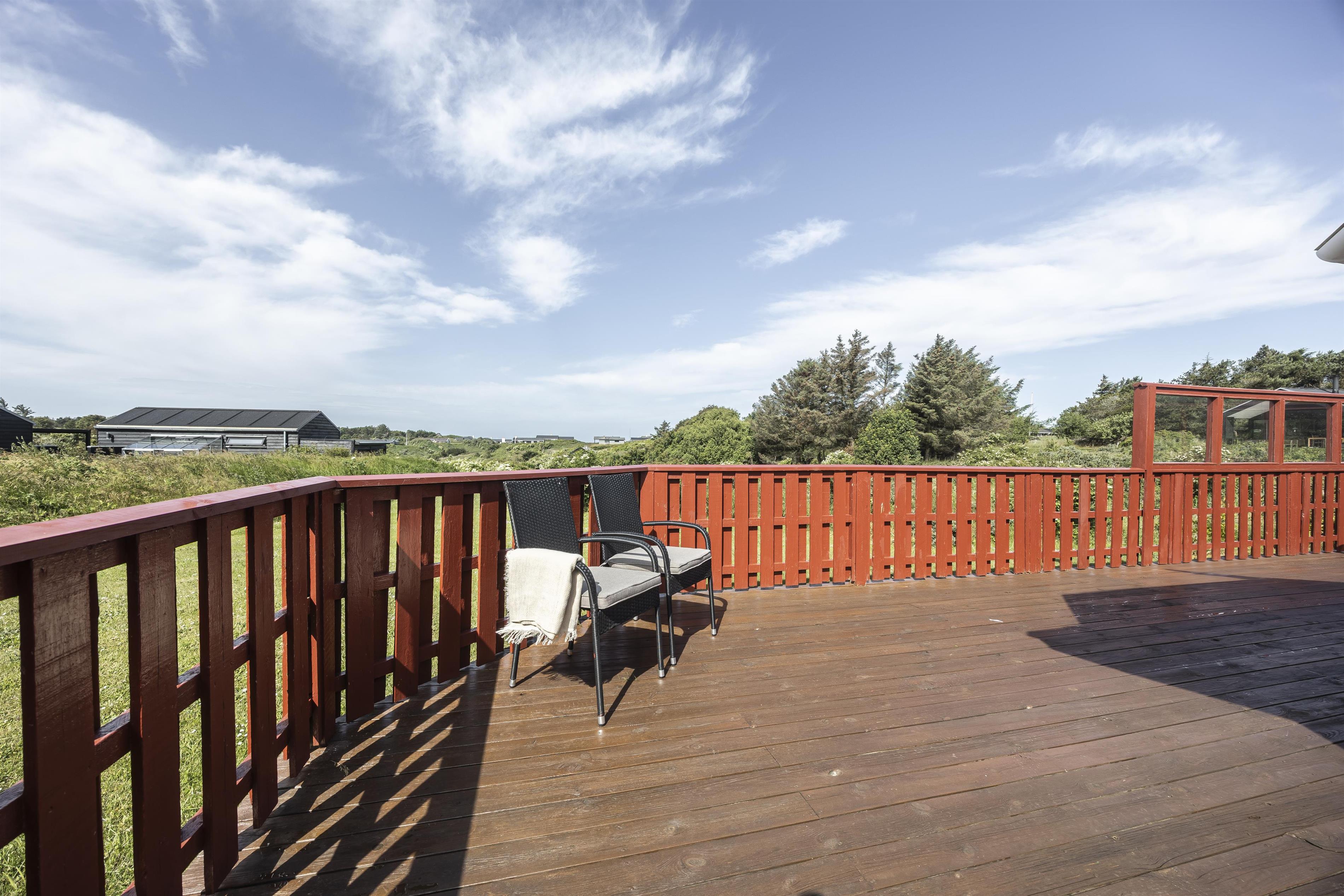 Udenfor venter en skøn græsplæne med plads til boldspil og leg, omgivet af en ugeneret naturgrund, hvor du kan nyde freden og den friske luft fra Vesterhavet. Flere solrige terrasser giver plads til morgenkaffe og aftensmad under åben himmel, mens du nyder udsigten over Tornbys kuperede landskab. Her er masser af lækroge, så du kan finde sol – eller skygge – hele dagen.