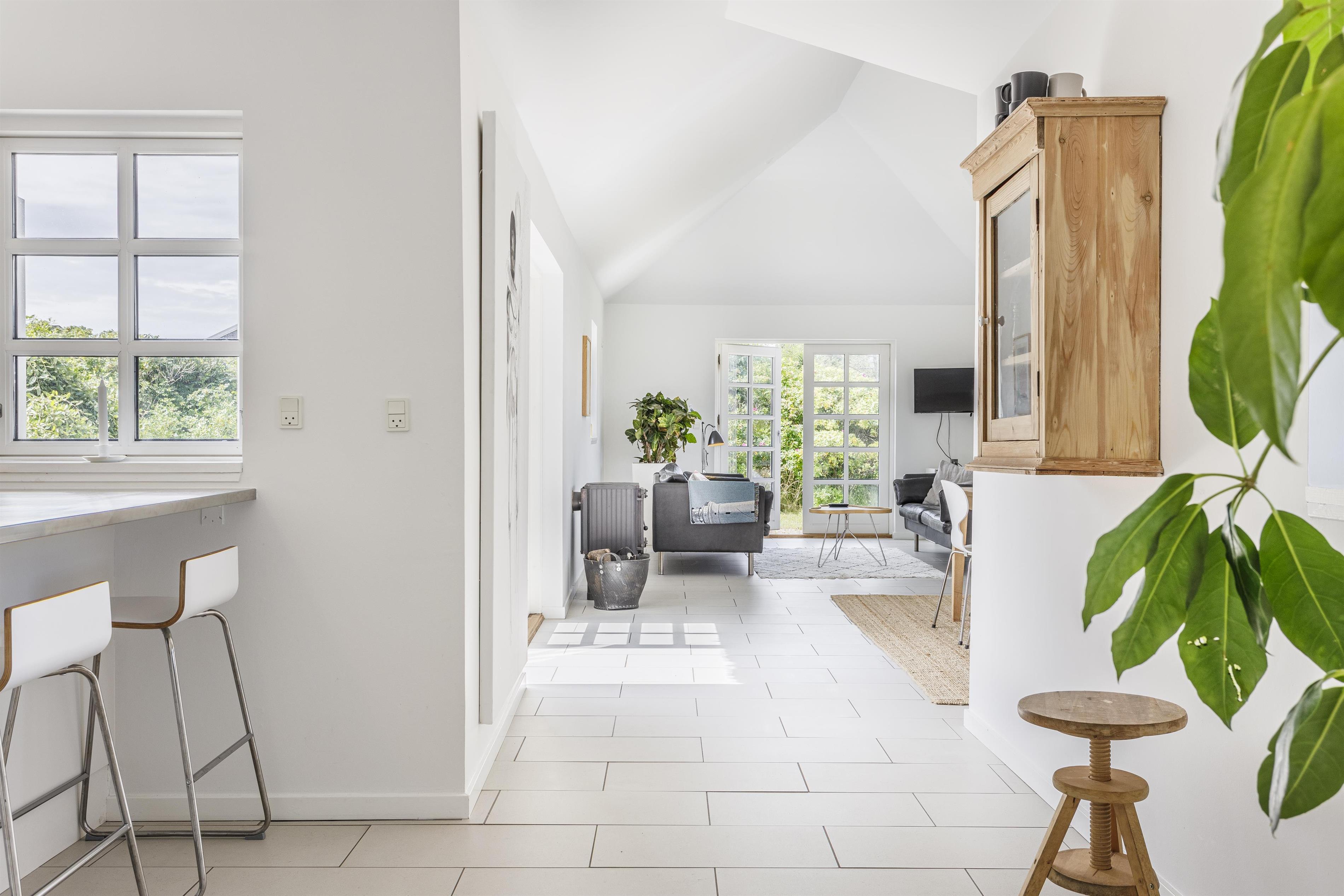 Det originale sommerhus er fra 1938, men gennemgik en omfattende renovering - med respekt for huset - i 2009 og fremstår i dag lyst, moderne og velholdt. Det stilrene køkken med køkkenø indbyder til gode snakke henover madlavningen. Fra køkkenet er der åben forbindelse til det dejlige, rummelige alrum, hvor I kan åbne de dobbelte terrassedøre og invitere naturen og fuglefløjt indenfor - her får I de ideelle rammer for hygge og samvær. Sæt jer godt til rette i sofaen og nyd varmen fra brændeovnen og ildens knitren på de kølige dage. Huset er til 6 personer og består desuden af 3 soveværelser, hvoraf det ene er med direkte udgang til den sydvestvendte terrasse samt et badeværelse med bruser.