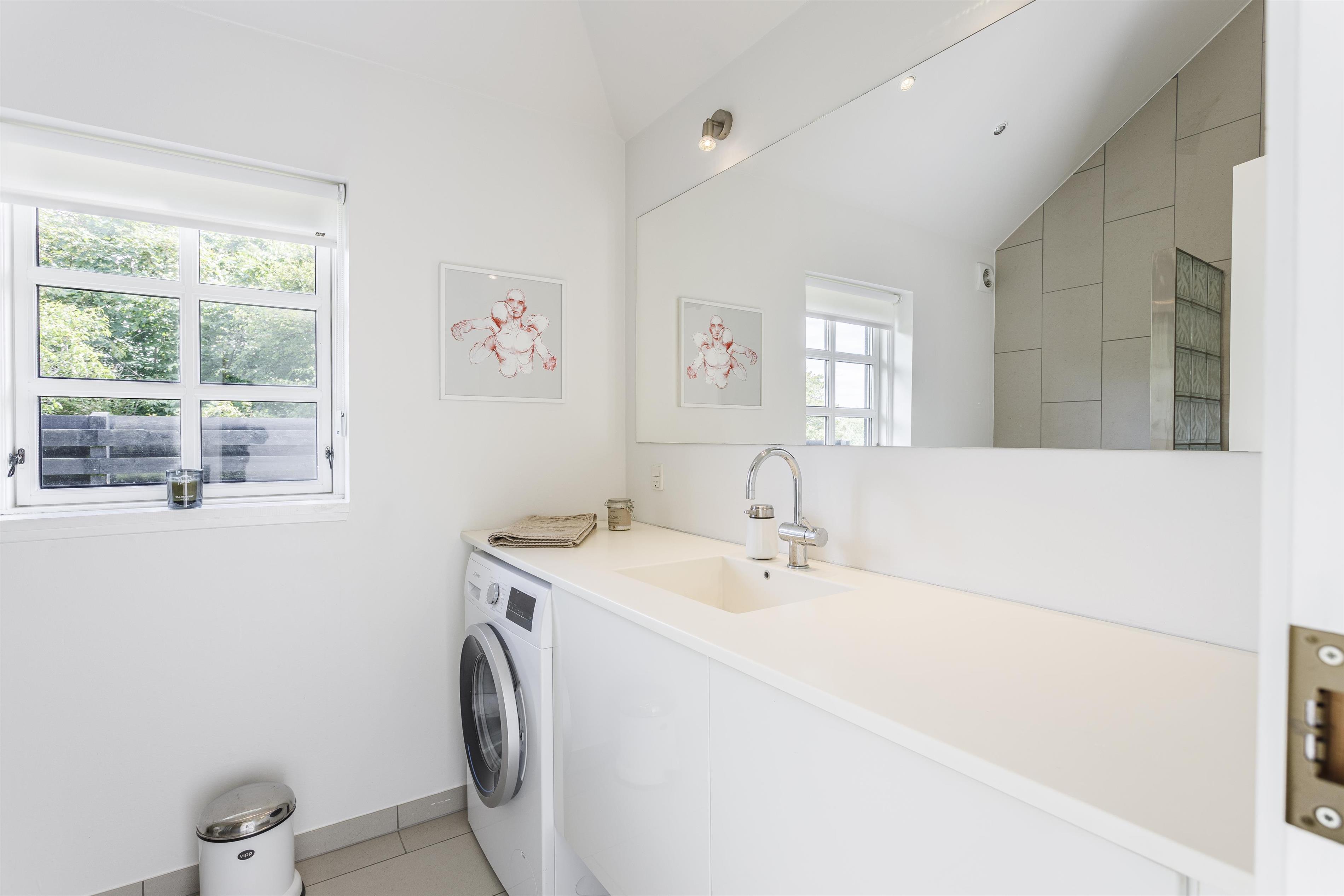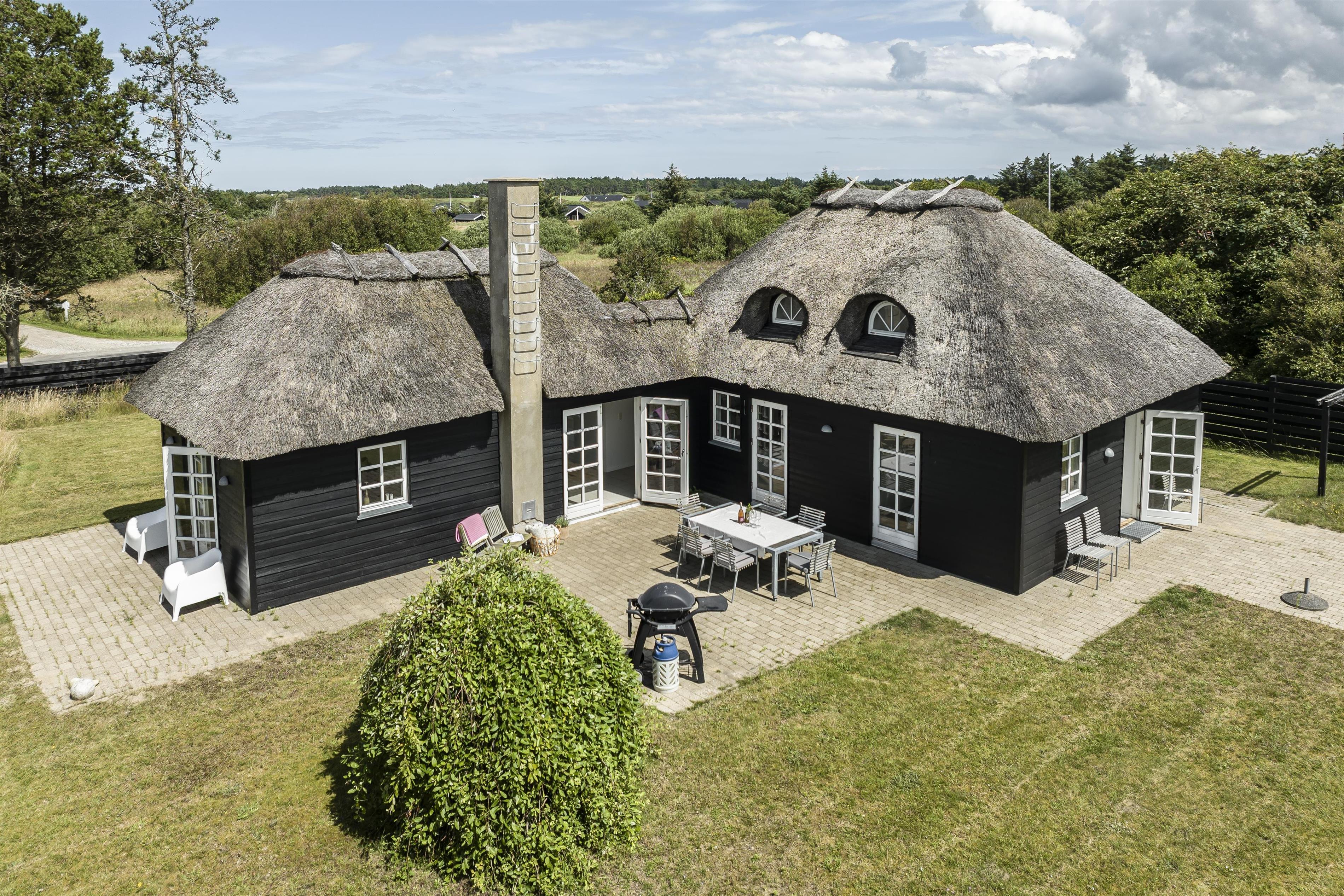 Træd ud på den store terrasse der omkranser huset, og tilbring sommerens solskinsdage i den ugenerede baghave, hvor der er god plads til boldspil og en frisk vandkamp. Tænd op i grillen og nyd et hjemmelavet måltid på terrassen, og når dagen går på hæld, kan I tage den korte spadsertur ned til stranden, hvor I fra første parket kan se solnedgangen over Vesterhavet - en udsigt som aldrig er ens, og som altid er tryllebindende.