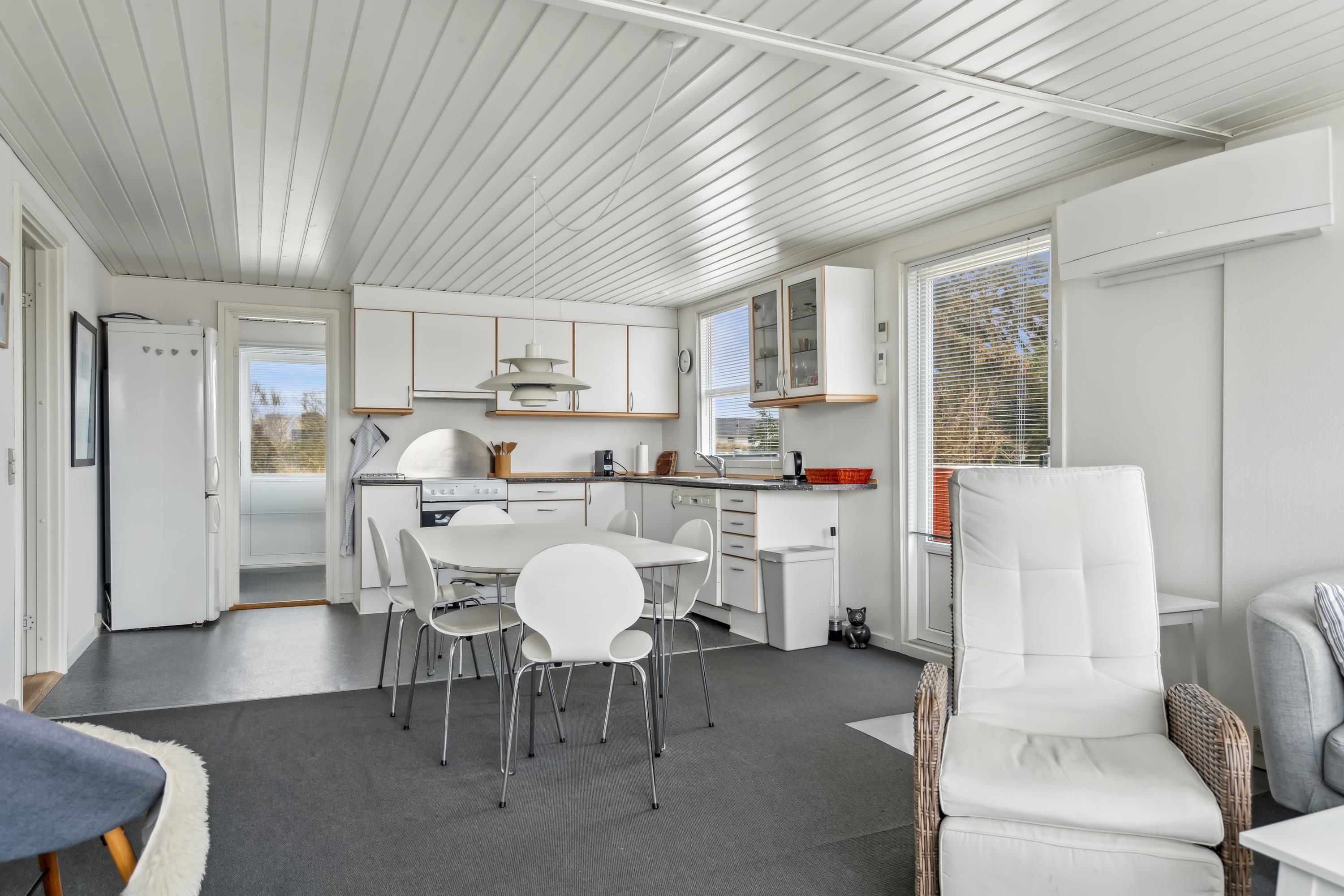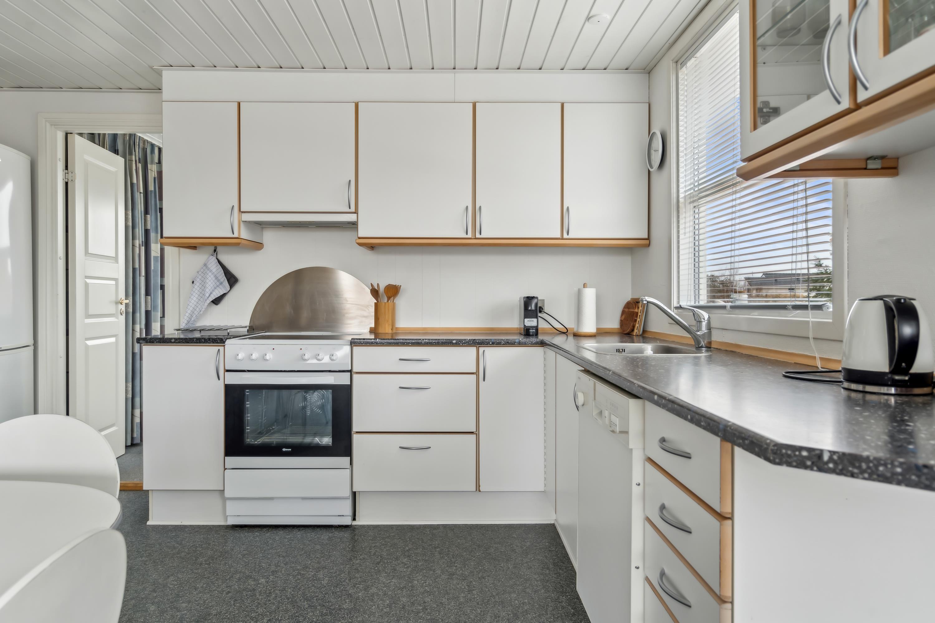 Det veludstyrede køkken gør det nemt at tilberede feriens måltider, uanset om det er hurtige frokoster eller hyggelige middage.