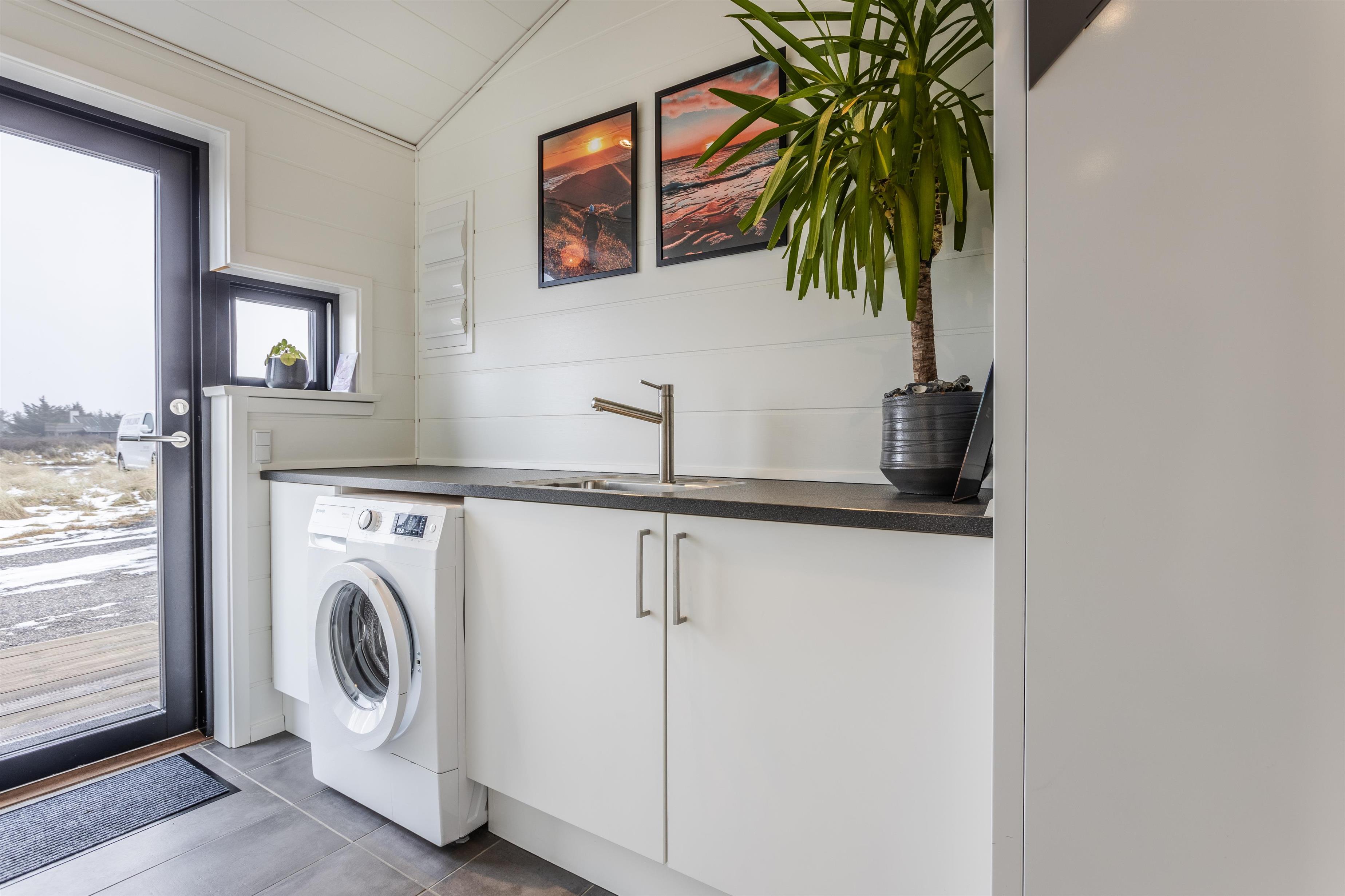 Træd ind i den lyse entré, hvor der er god plads til overtøj og sko. Her finder I også vaskemaskinen.