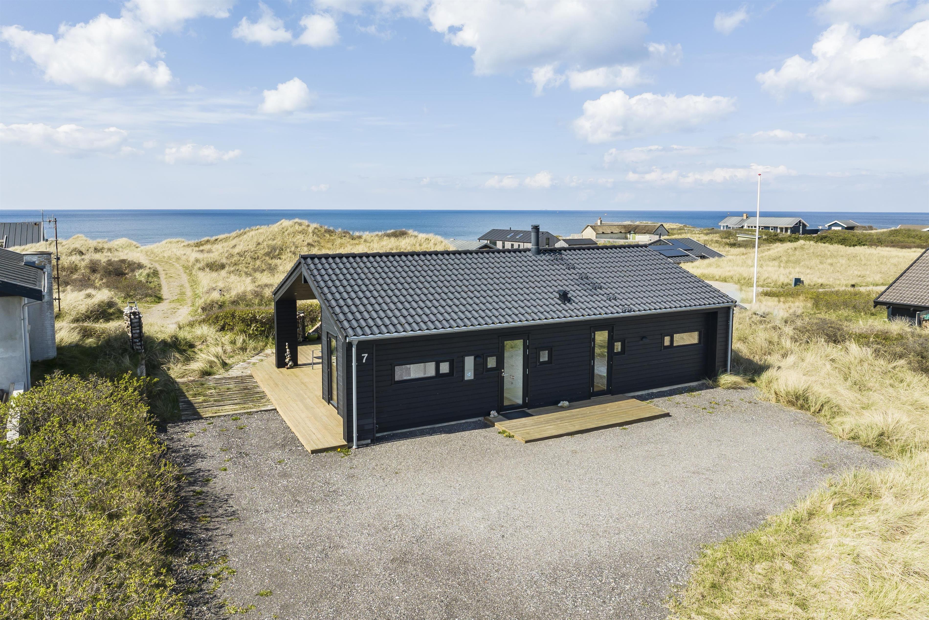 Beliggende i det smukke sommerhusområde i Tornby nær Hirtshals, byder dette luksuriøse feriehus på en enestående kombination af komfort, elegance og fantastisk havudsigt. Med plads til op til 7 personer er der rigeligt med plads til familien eller gode venner. Nyd morgenkaffen på den hyggelige og rummelige terrasse, mens du nyder udsigten over det brusende Vesterhav. Med en privat sti direkte fra terrassen til stranden kan du nemt og hurtigt få dine fødder i sandet og nyde solen og bølgernes brus.
