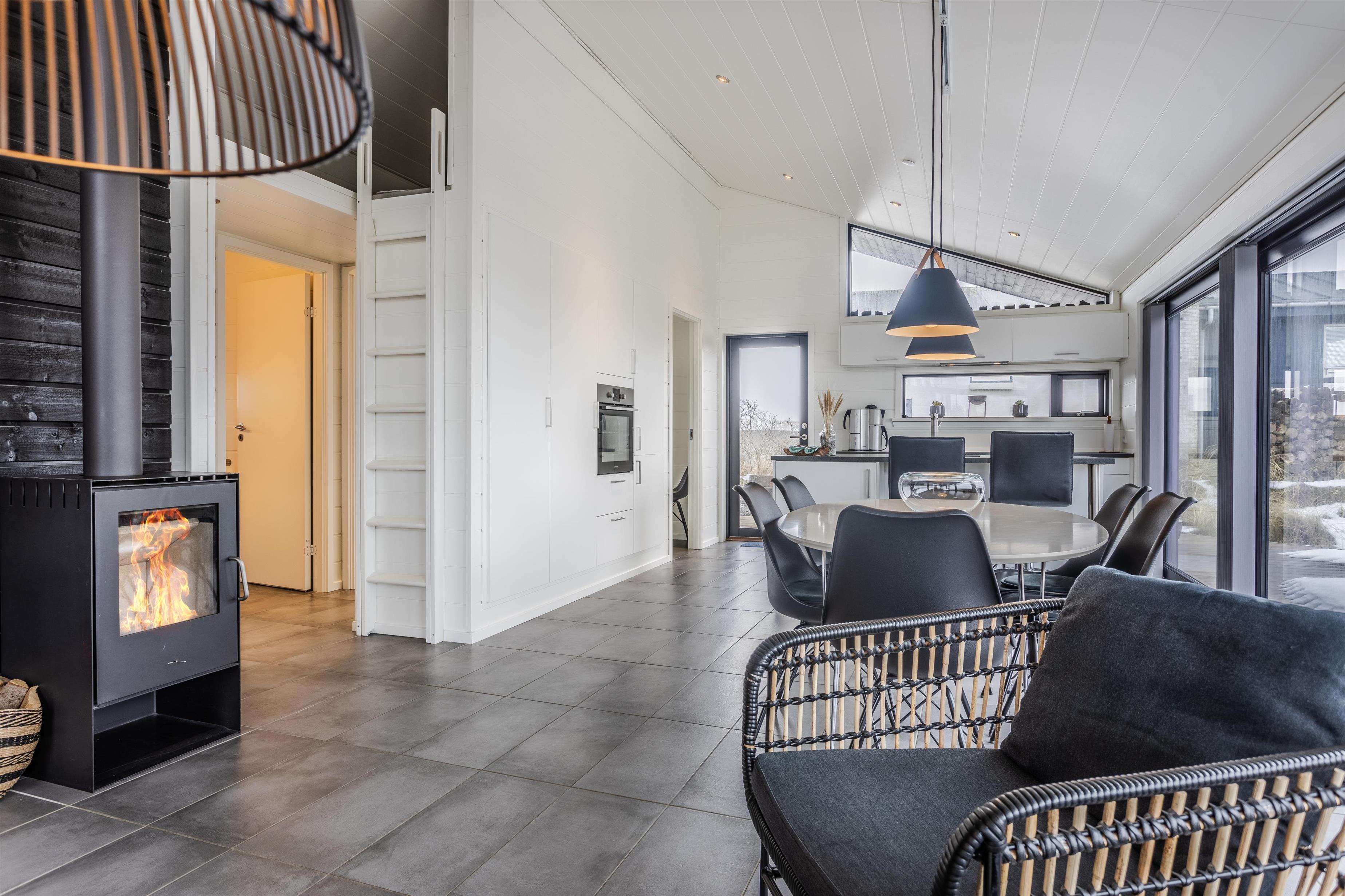Nyd varmen fra brændeovnen, mens I slænger jer i sofaen. Spil kort eller se, hvem der er mester i Ludo, men der forberedes et lækkert måltid i det åbne køkken.