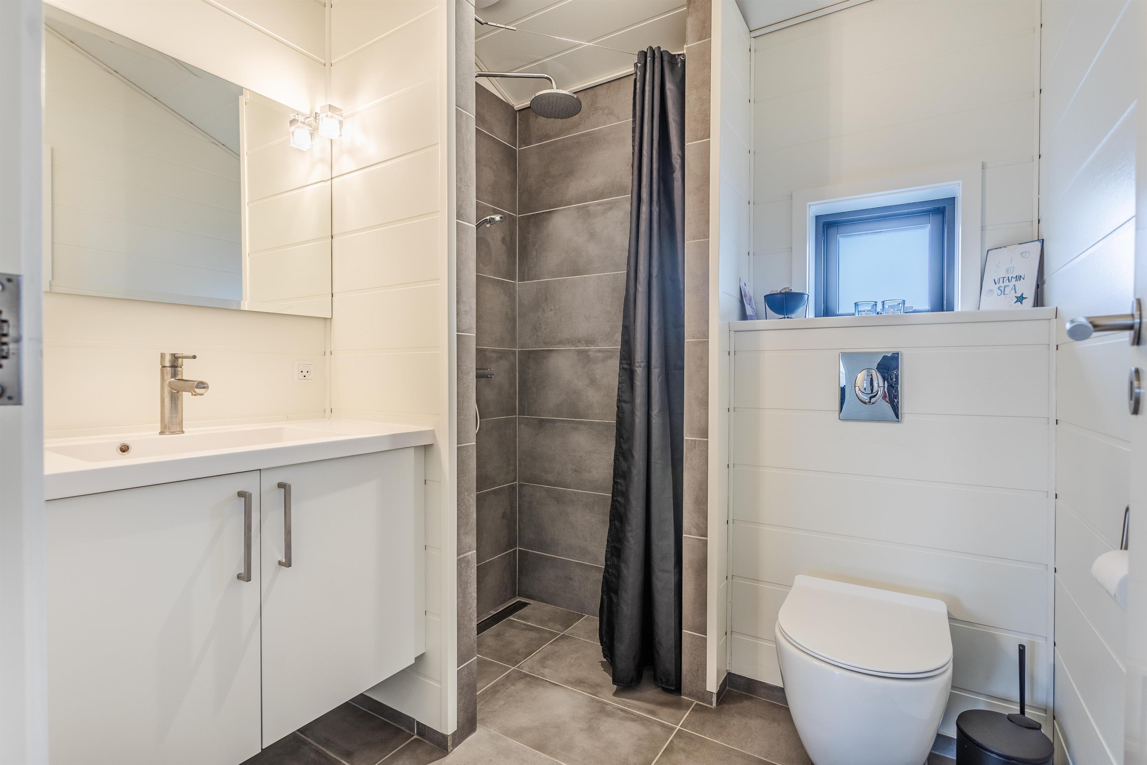 Bevæger I jer længere ind i huset, finder I et funktionelt badeværelse og 3 komfortable soveværelser - alle udstyret med dobbeltsenge, der sikrer en behagelig og afslappende ferieoplevelse.