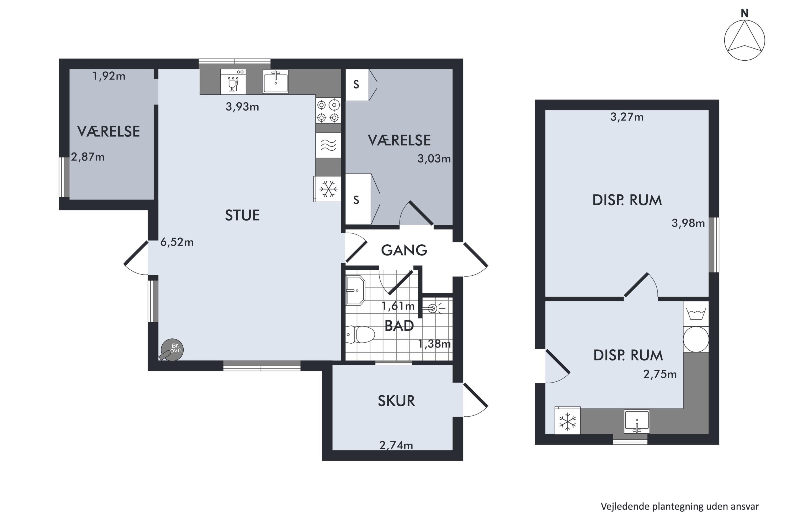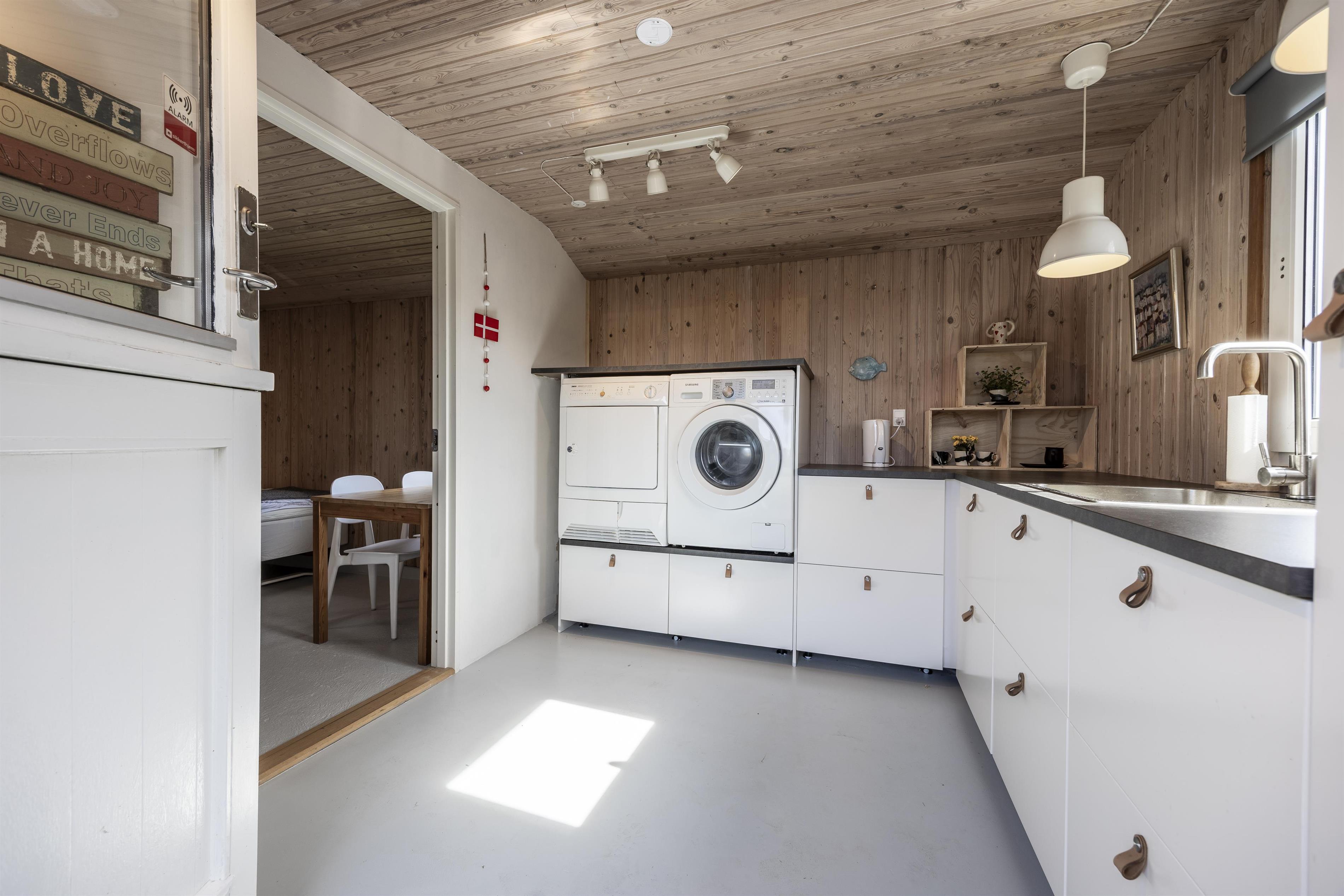 I annekset finder I, udover et stort soverum, også et praktisk bryggers, hvor vaskemaskinen og tørretumbleren er placeret.