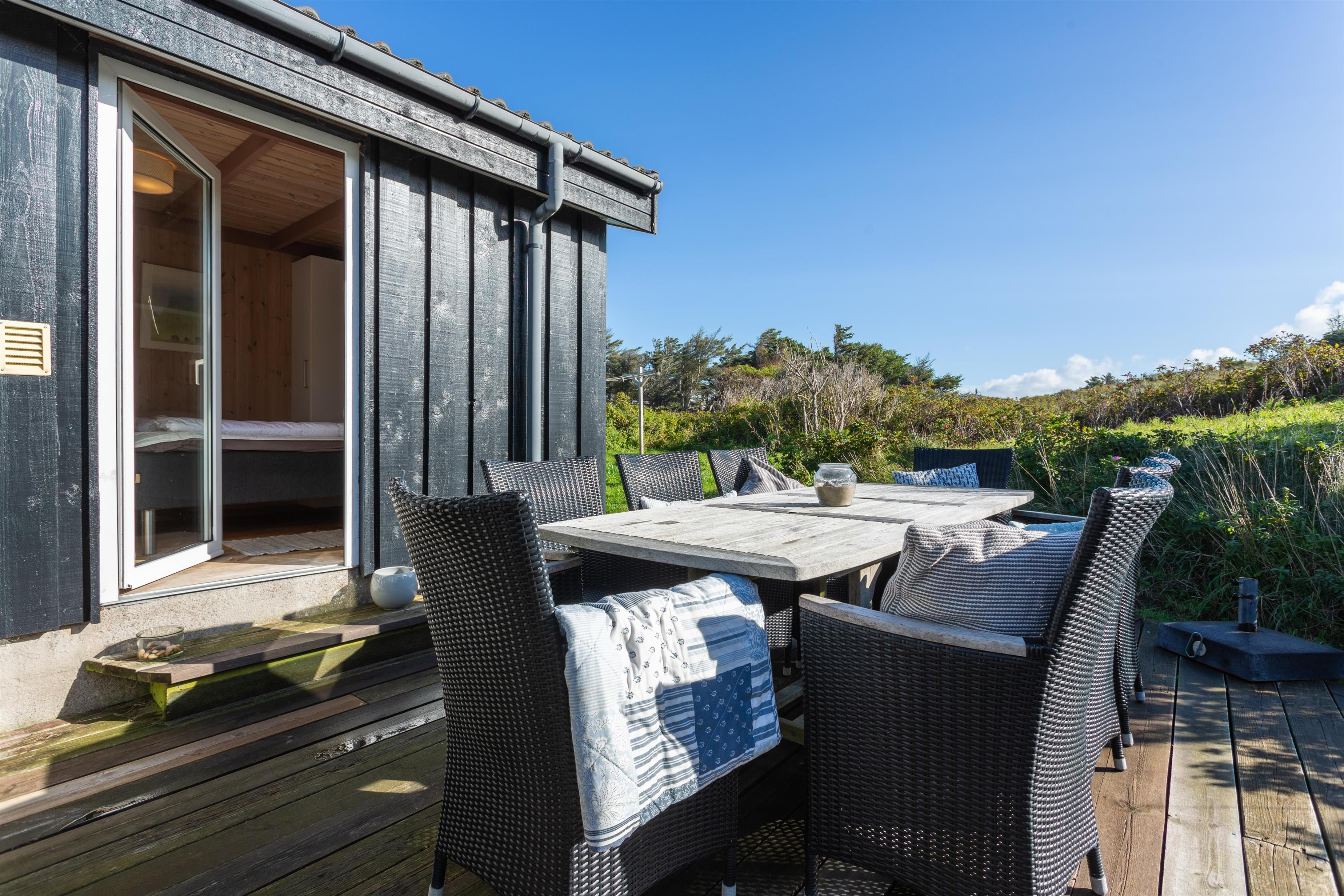 Sommerhuset ligger på en stor og naturskøn grund, hvor I er omkranset af marehalm og hybenbuske. Nyd sommervejret på den store terrasse og ryk ind under den overdækkede del, når duggen falder eller I trænger til et afbræk fra solen. Takket være den korte afstand til stranden kan I let tage en dukkert eller gå en tur langs kysten. Om aftenen er terrassen et oplagt sted at samle familien til grillmad og hyggelige stunder i den friske havluft.