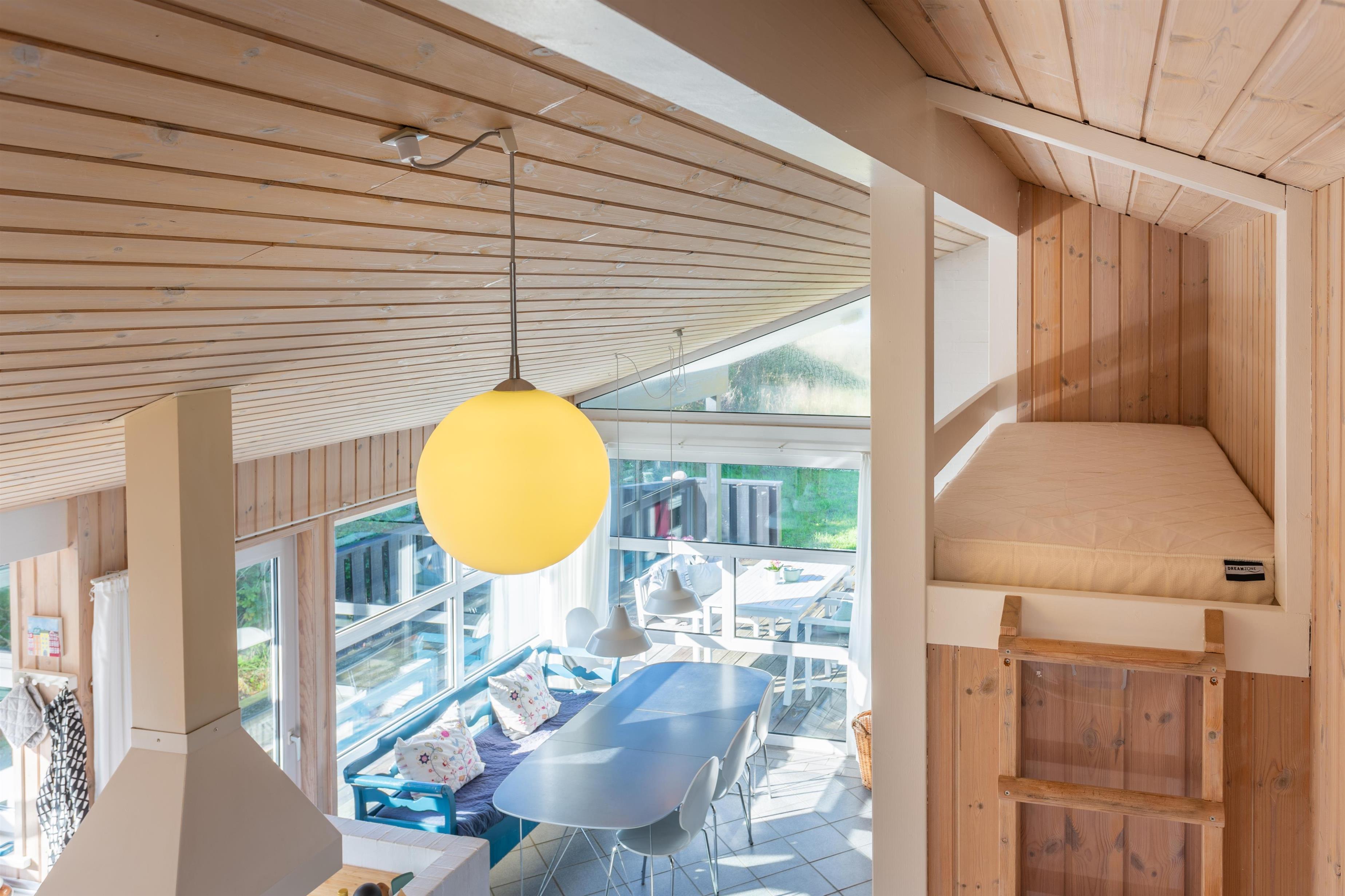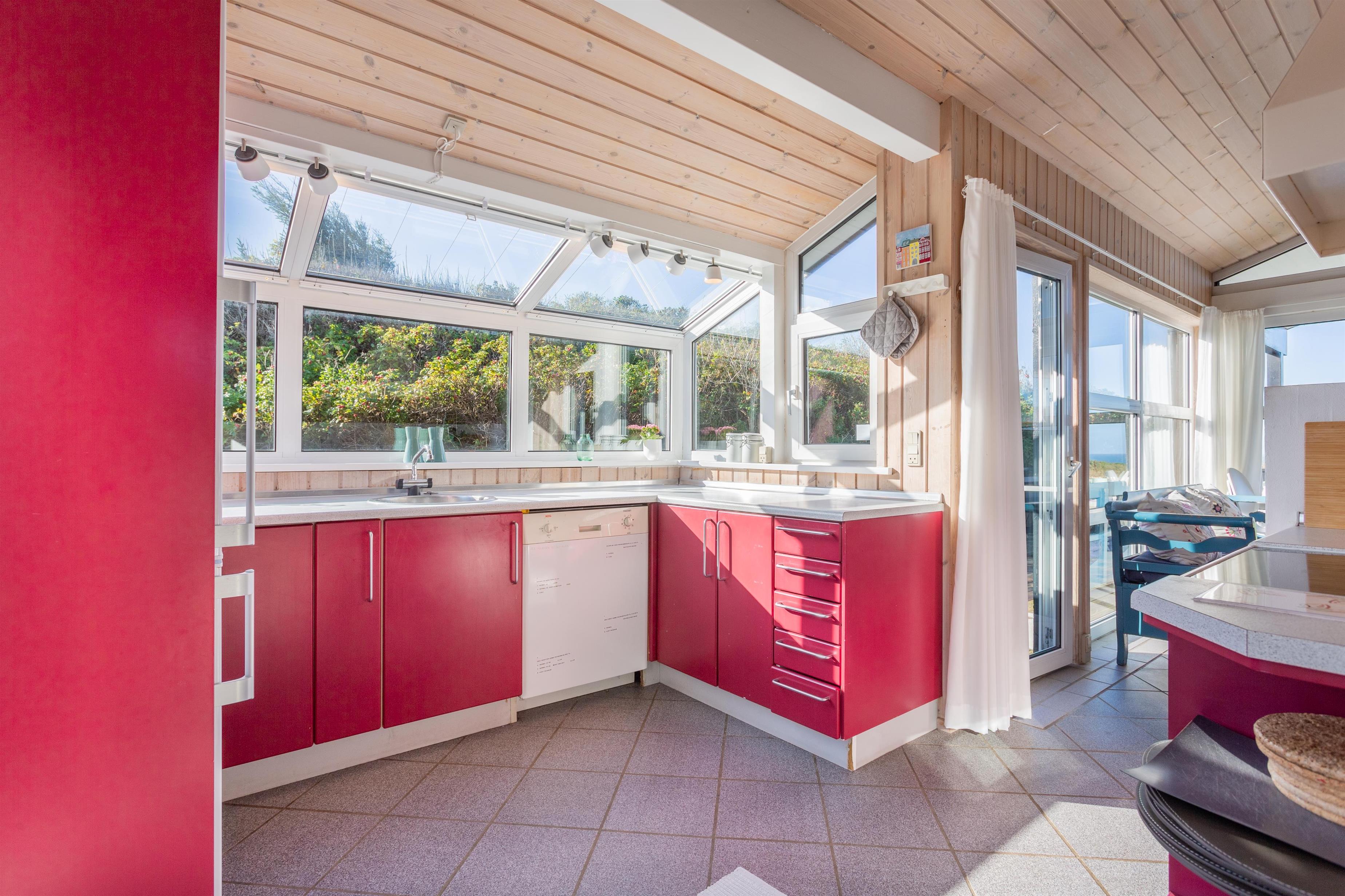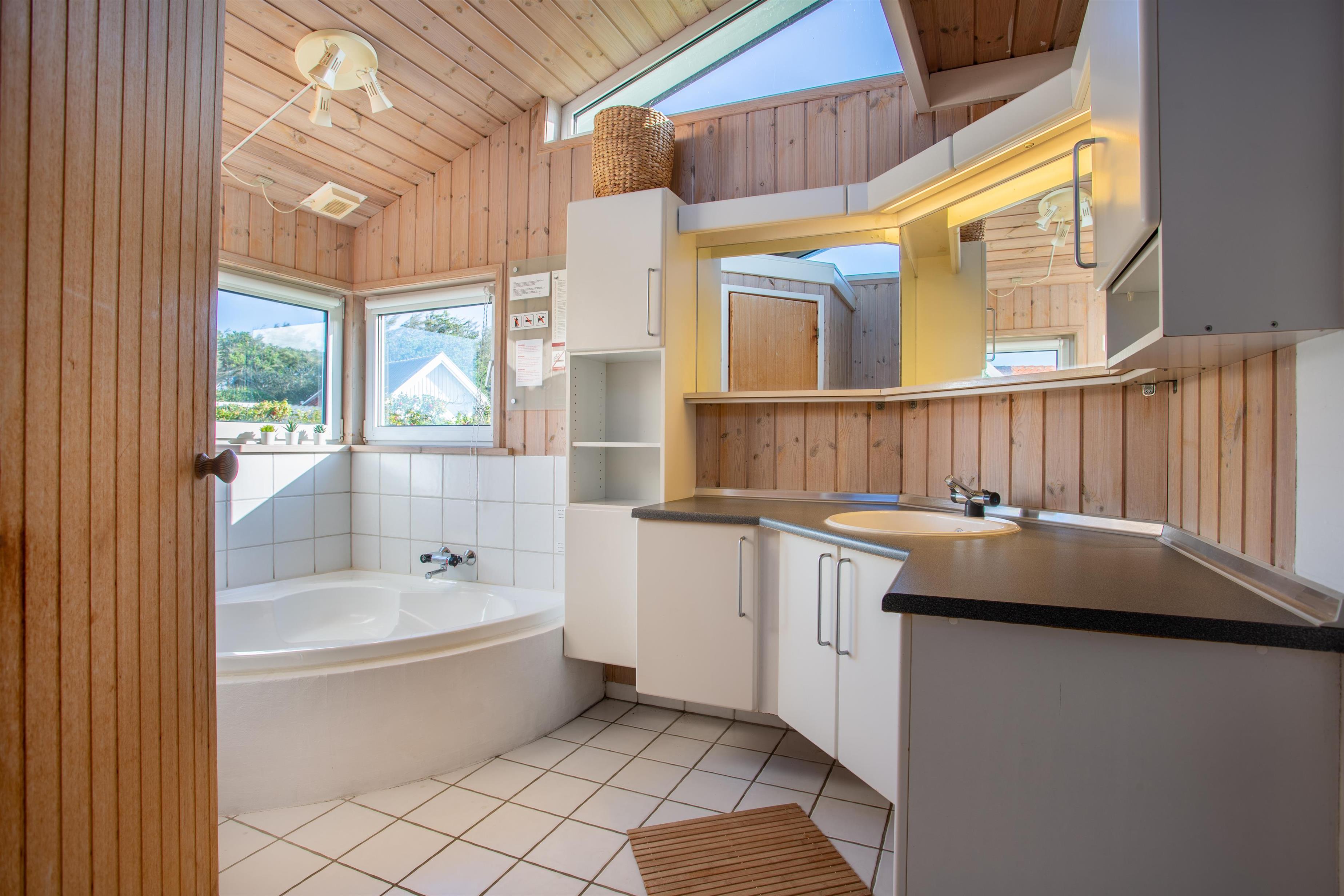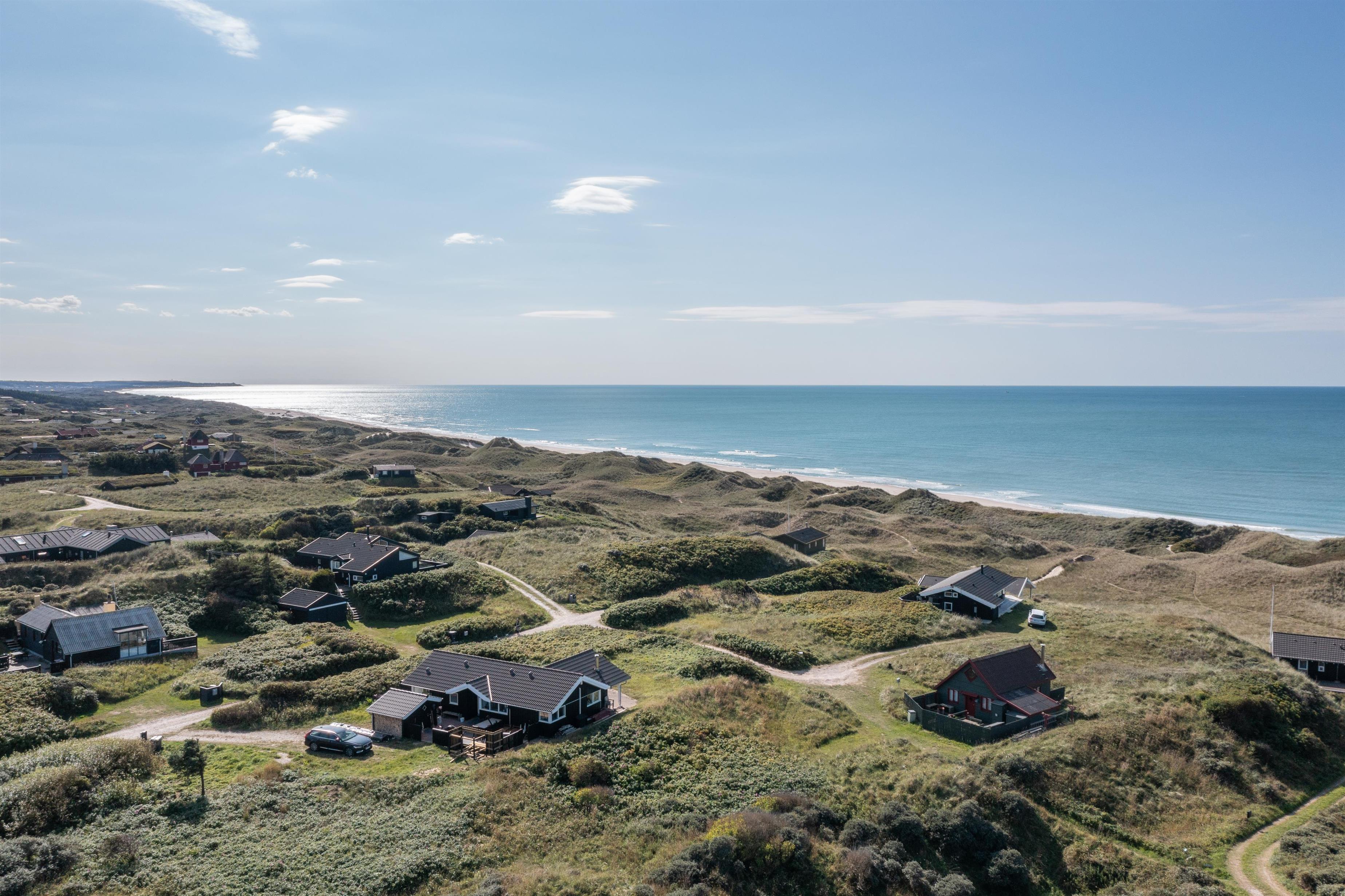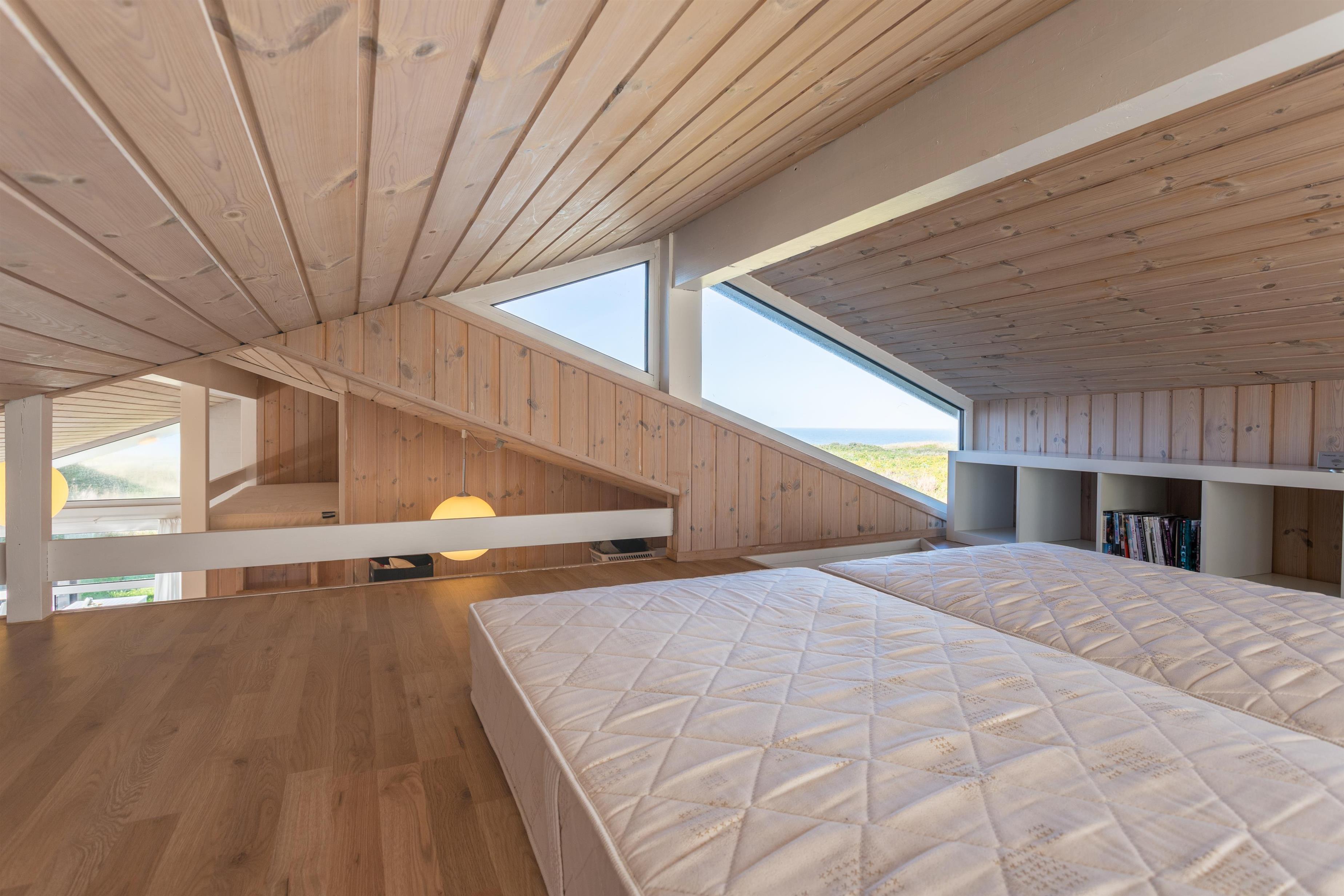 Sommerhuset fremstår lyst og rummeligt med store vinduespartier, der inviterer naturen indenfor, og man kan få lang tid til at gå ved blot at nyde udsigten. Fra stuen kan I nyde den betagende havudsigt og lade timerne flyve afsted i ren afslapning. Huset har en åben planløsning mellem køkken og stue, hvilket gør det nemt at samles til måltider og hygge foran brændeovnen. Med tre soveværelser og to badeværelser – begge med brus – er der plads til seks overnattende gæster samt mulighed for yderligere to sovepladser på den store hems, som også fungerer som et afslappende opholdsområde. I feriehuset er der desuden et stort hjørnespa og sauna, så der er rig mulighed for selvforkælelse efter en dag ved Vesterhavet.