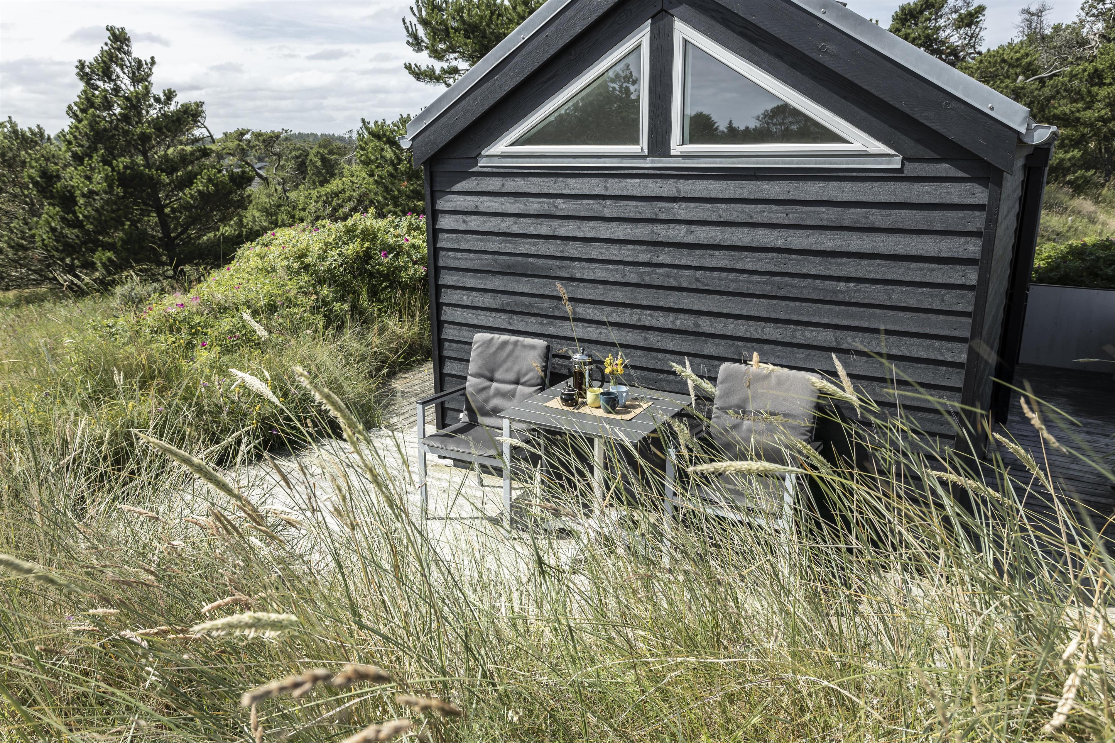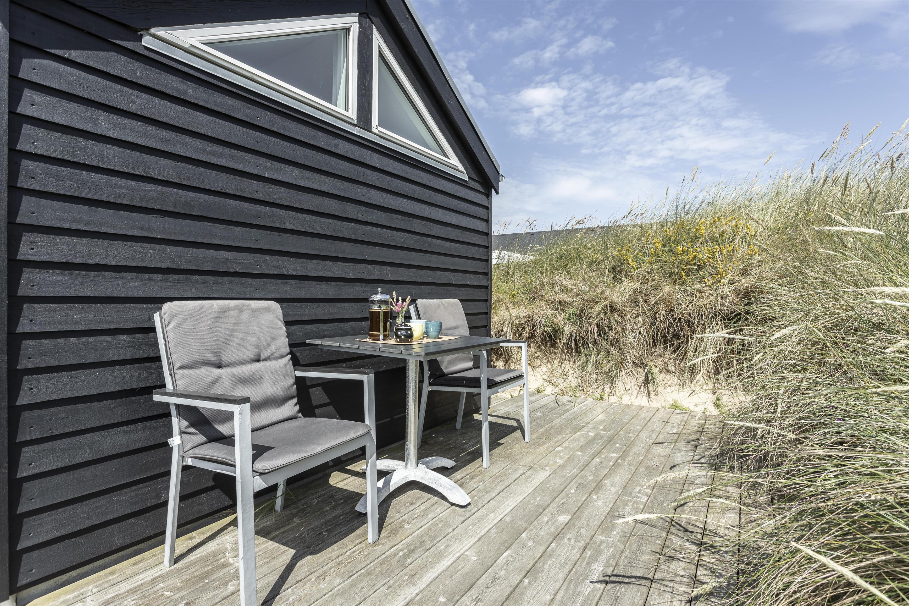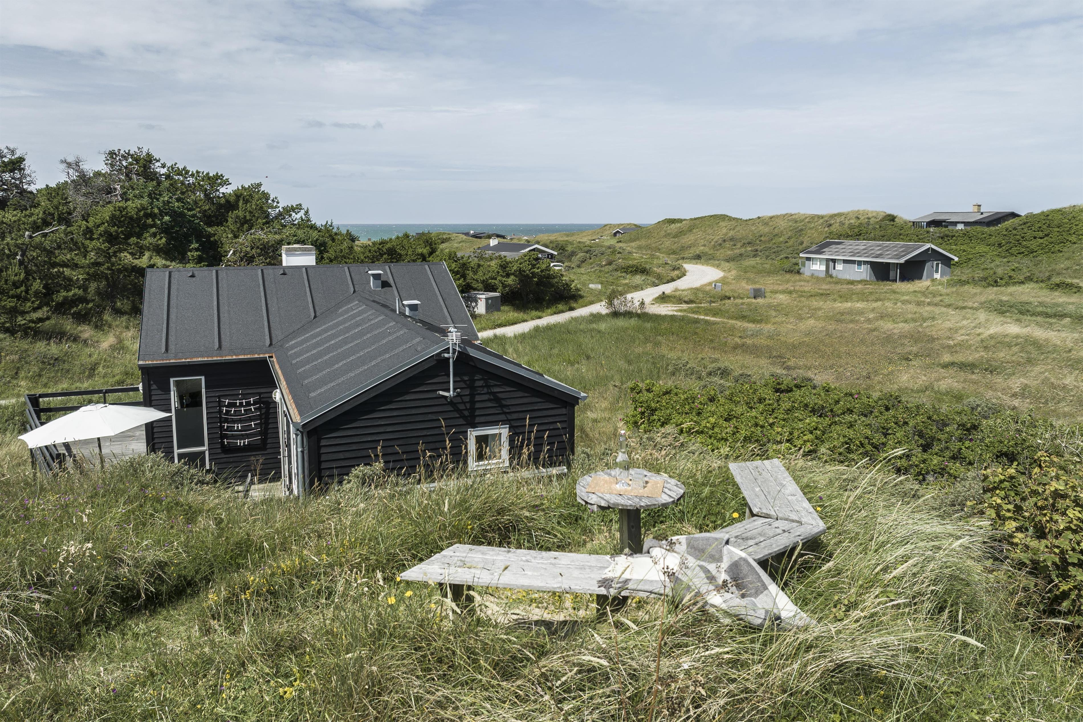 Bevæger du dig længere op i klitterne finder du en udsigtsbænk på grunden, hvor du kan sidde og betragte det smukke landskab og solnedgangen i horisonten. De forskellige udemiljøer skaber de perfekte rammer for både afslapning og socialt samvær, og indbyder til mange timers hygge under åben himmel.