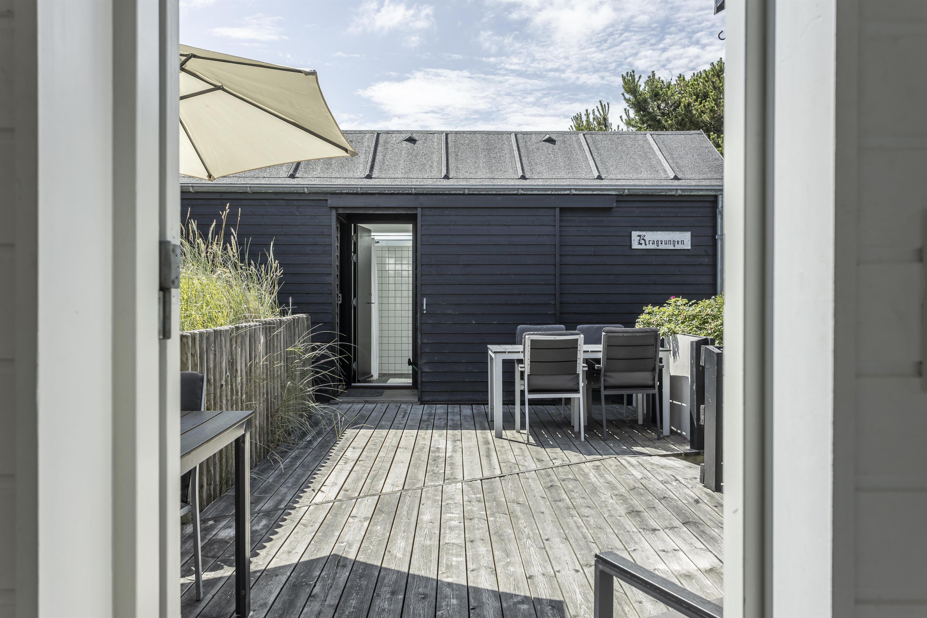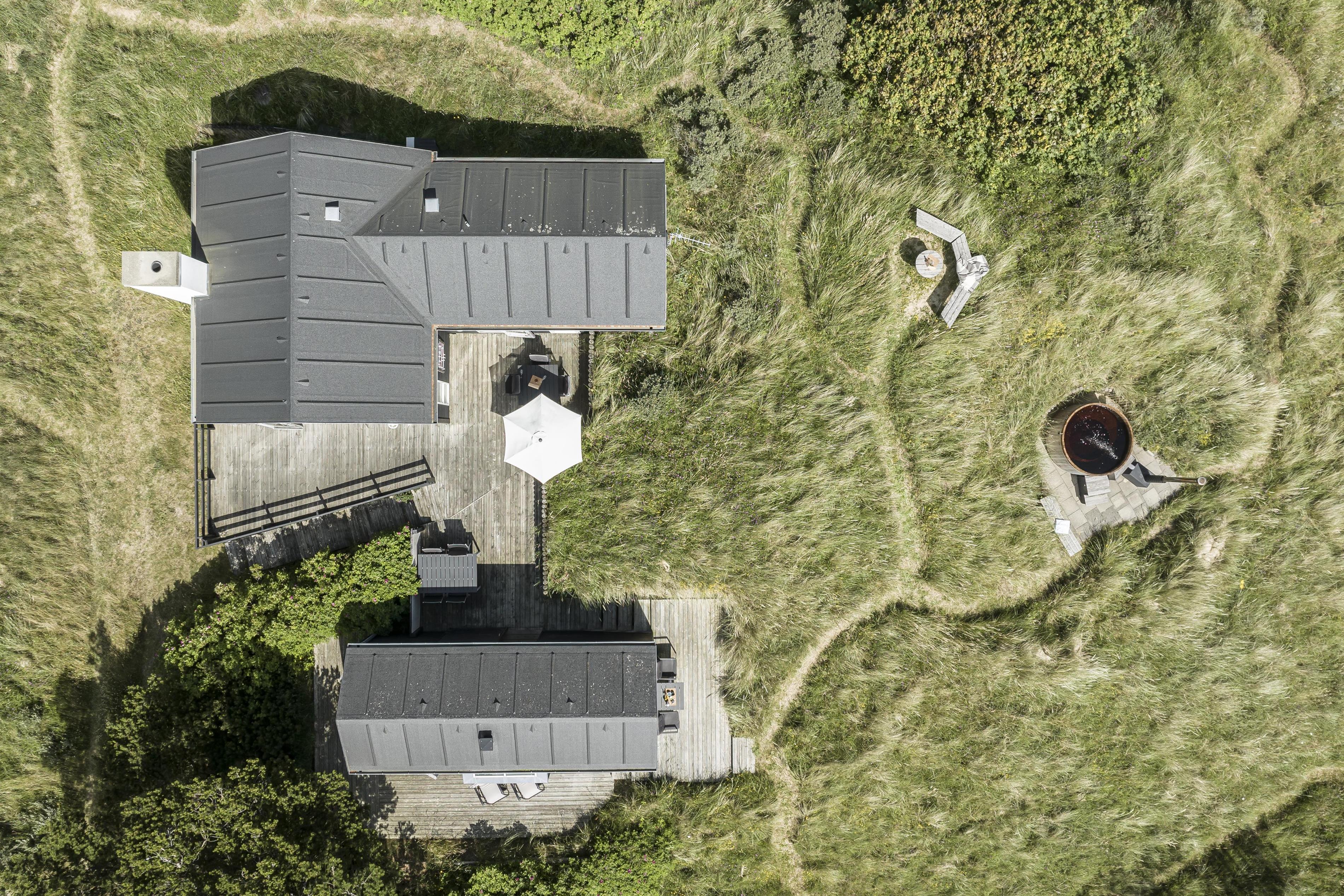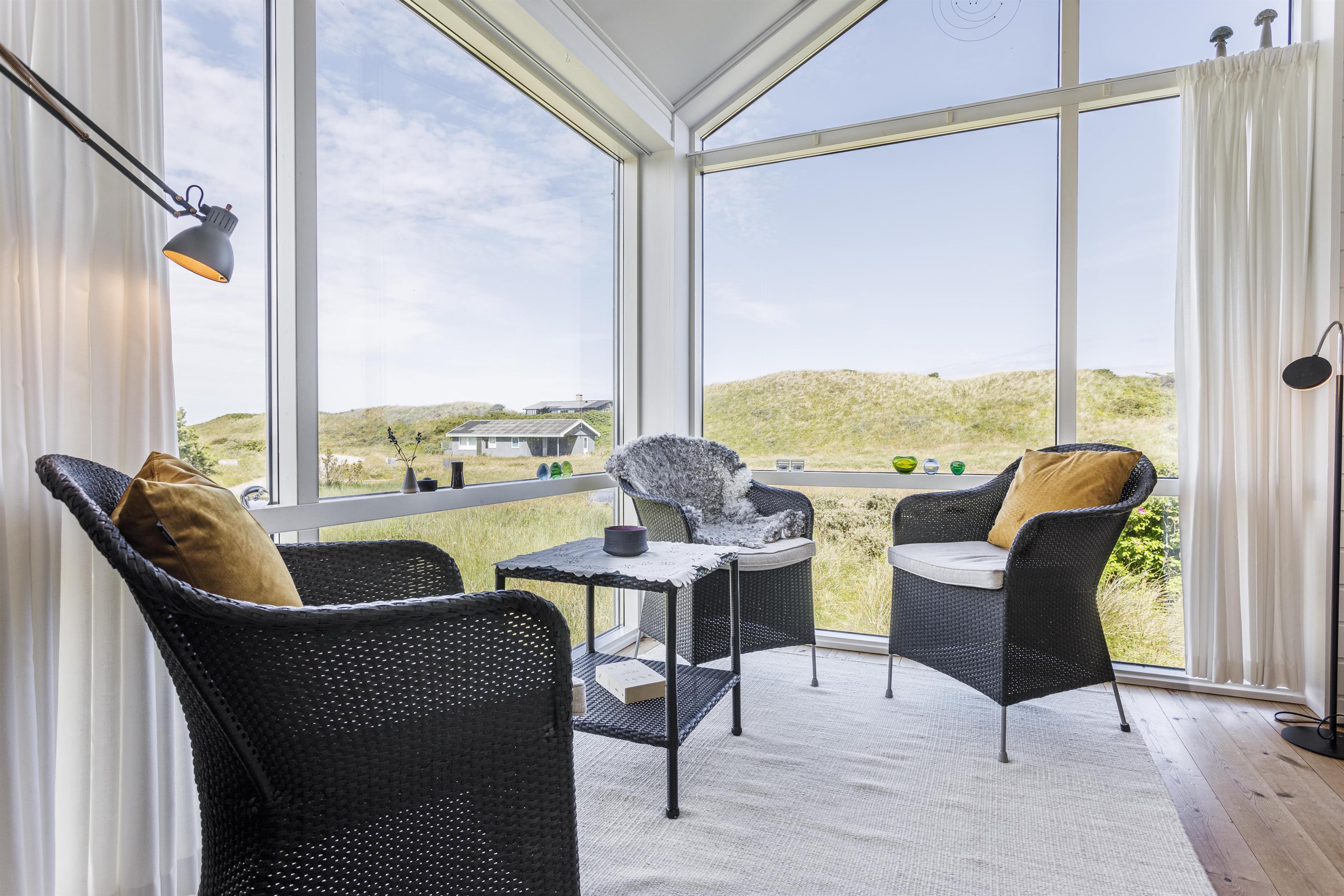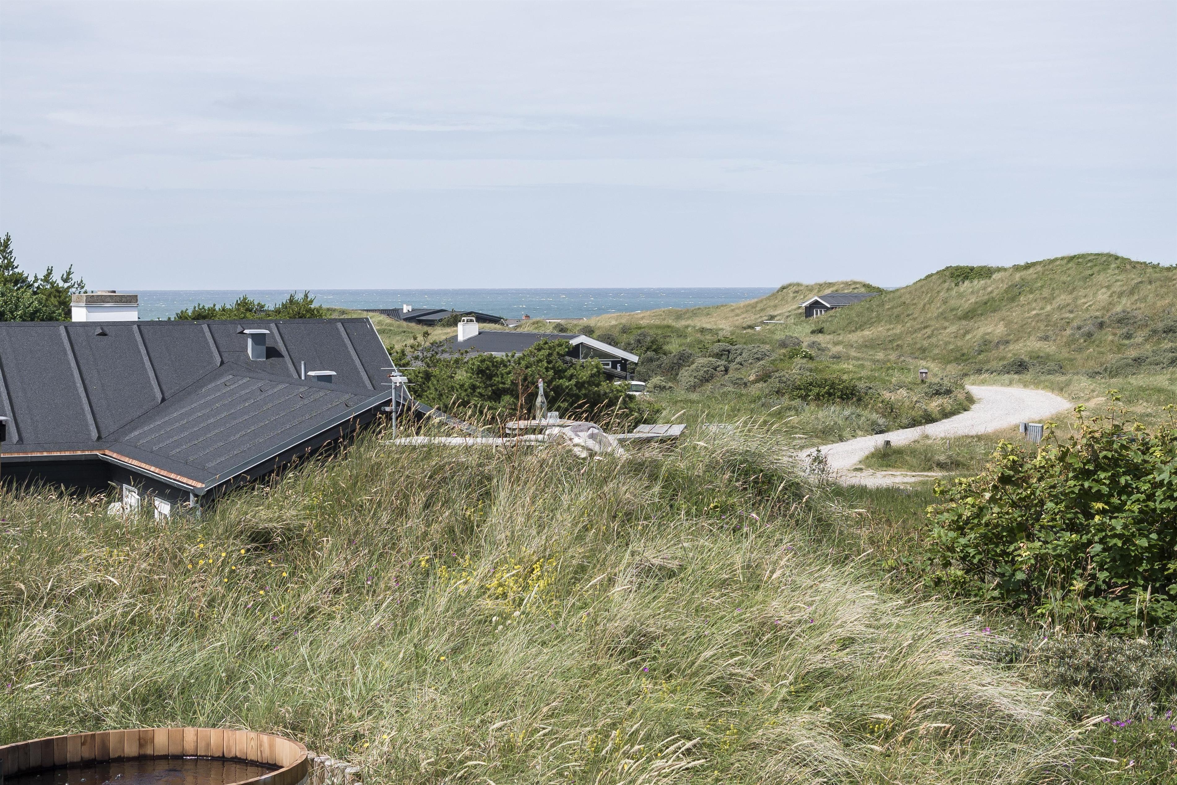 Bevæger du dig længere op i klitterne finder du en udsigtsbænk på grunden, hvor du kan sidde og betragte det smukke landskab og solnedgangen i horisonten. De forskellige udemiljøer skaber de perfekte rammer for både afslapning og socialt samvær, og indbyder til mange timers hygge under åben himmel.