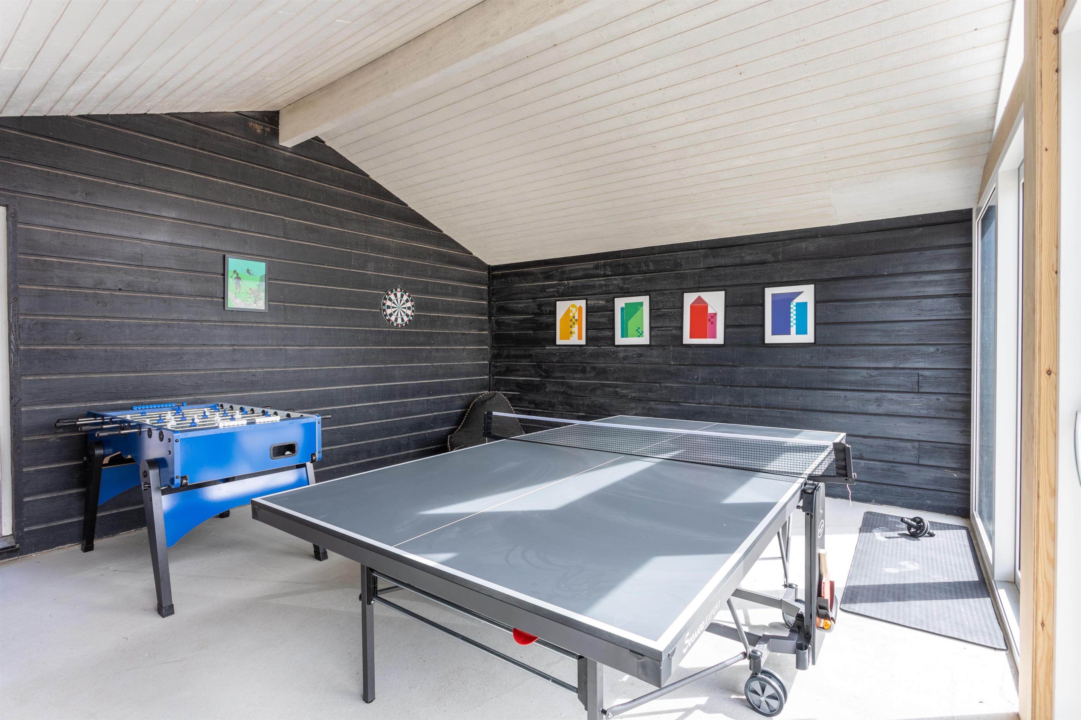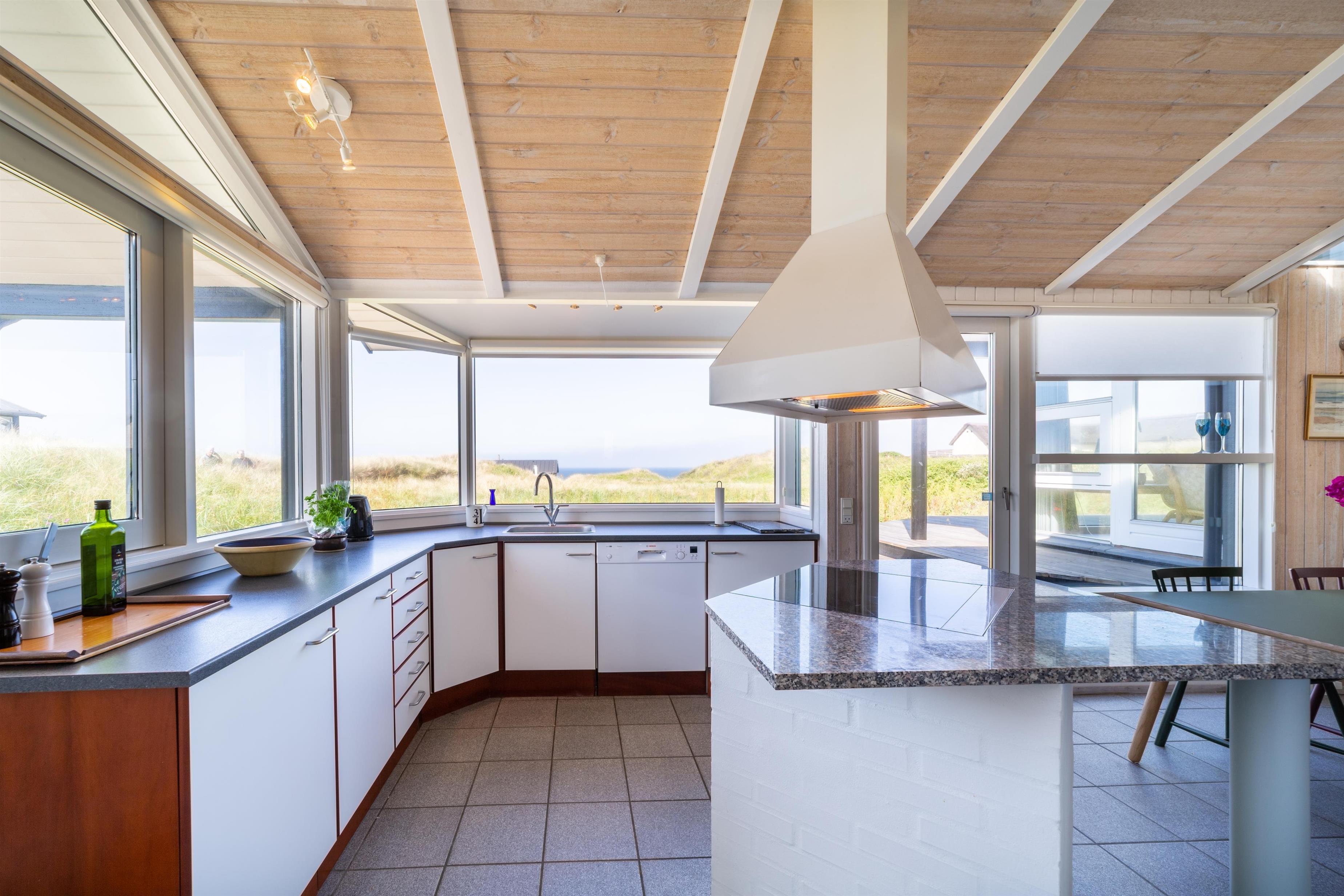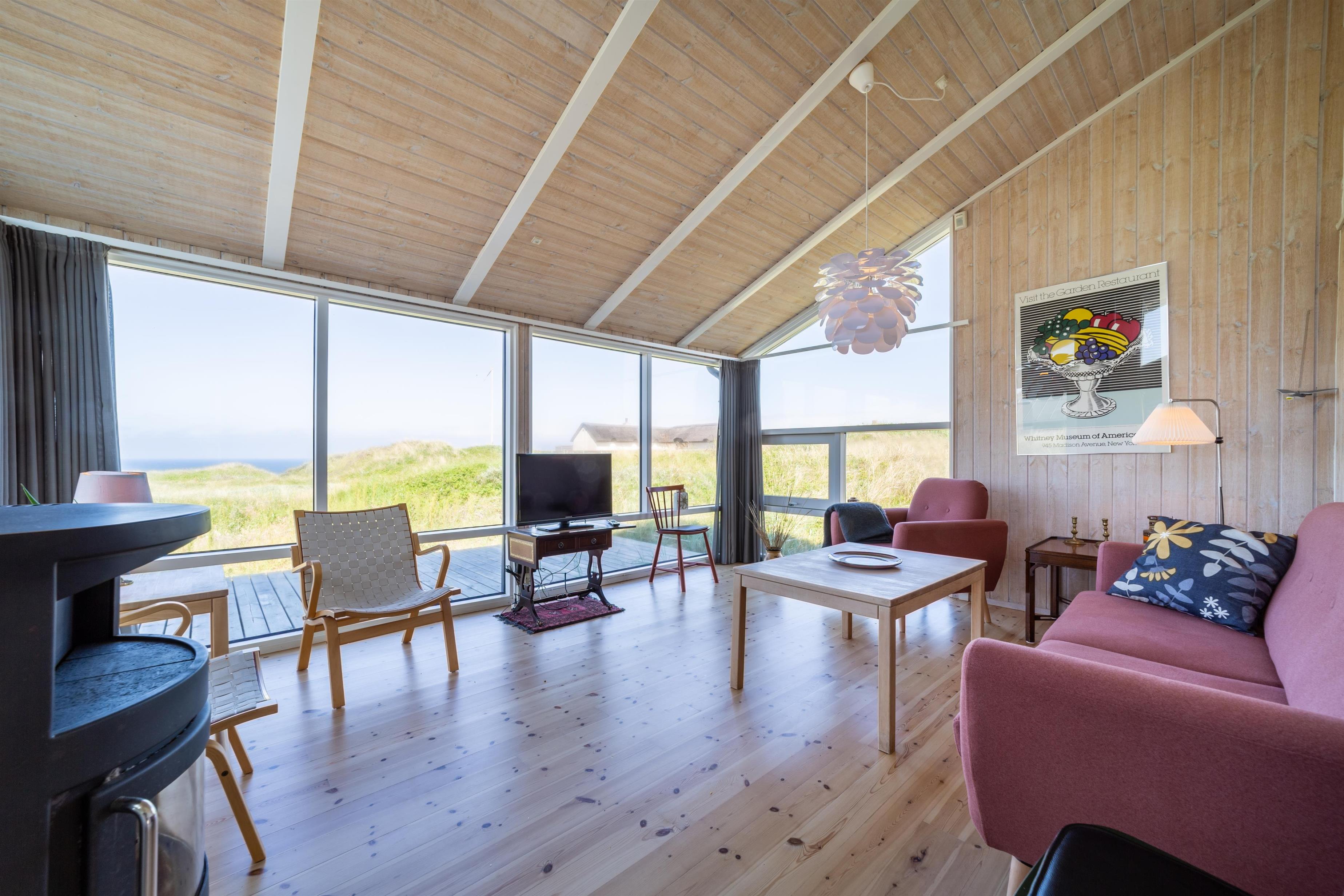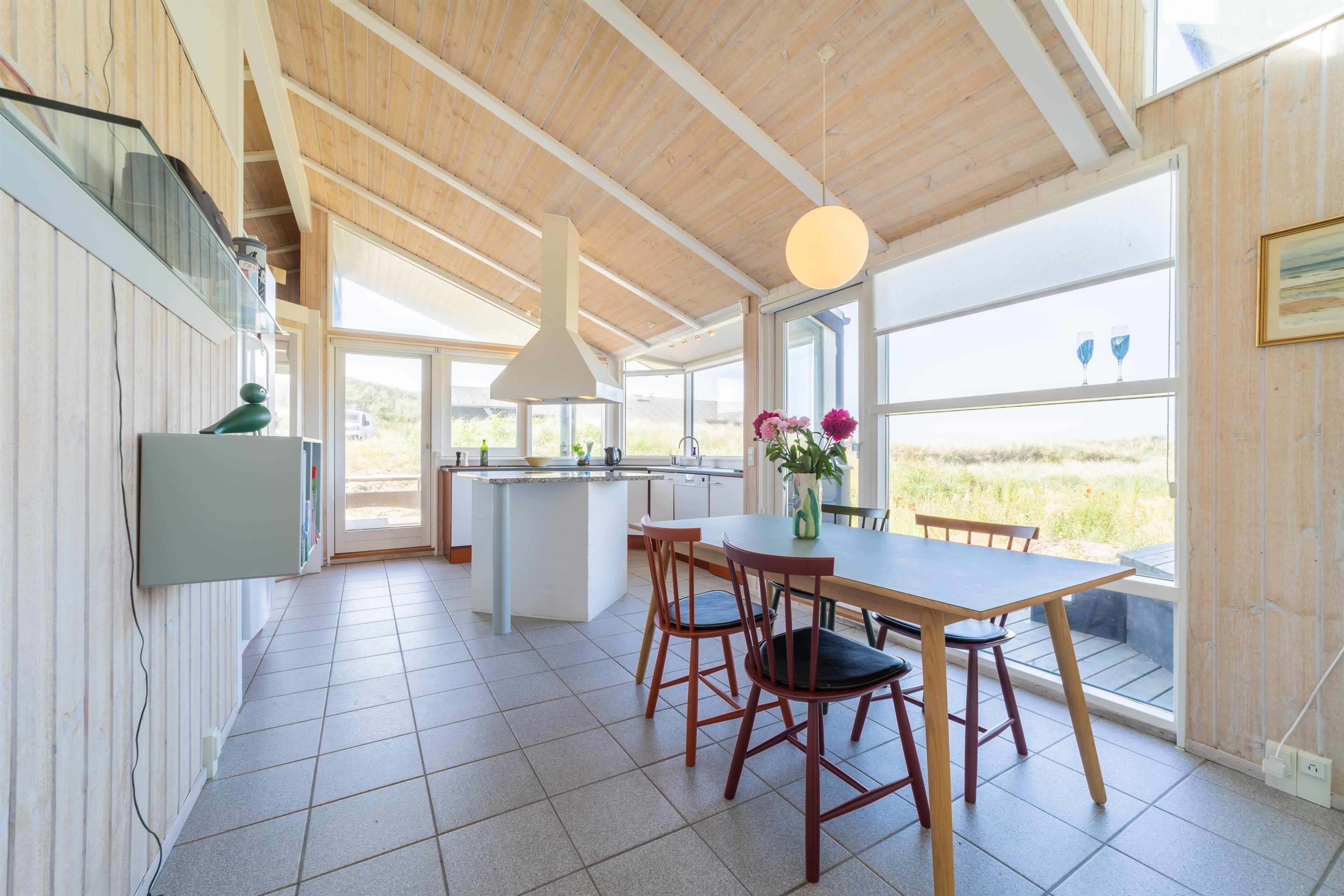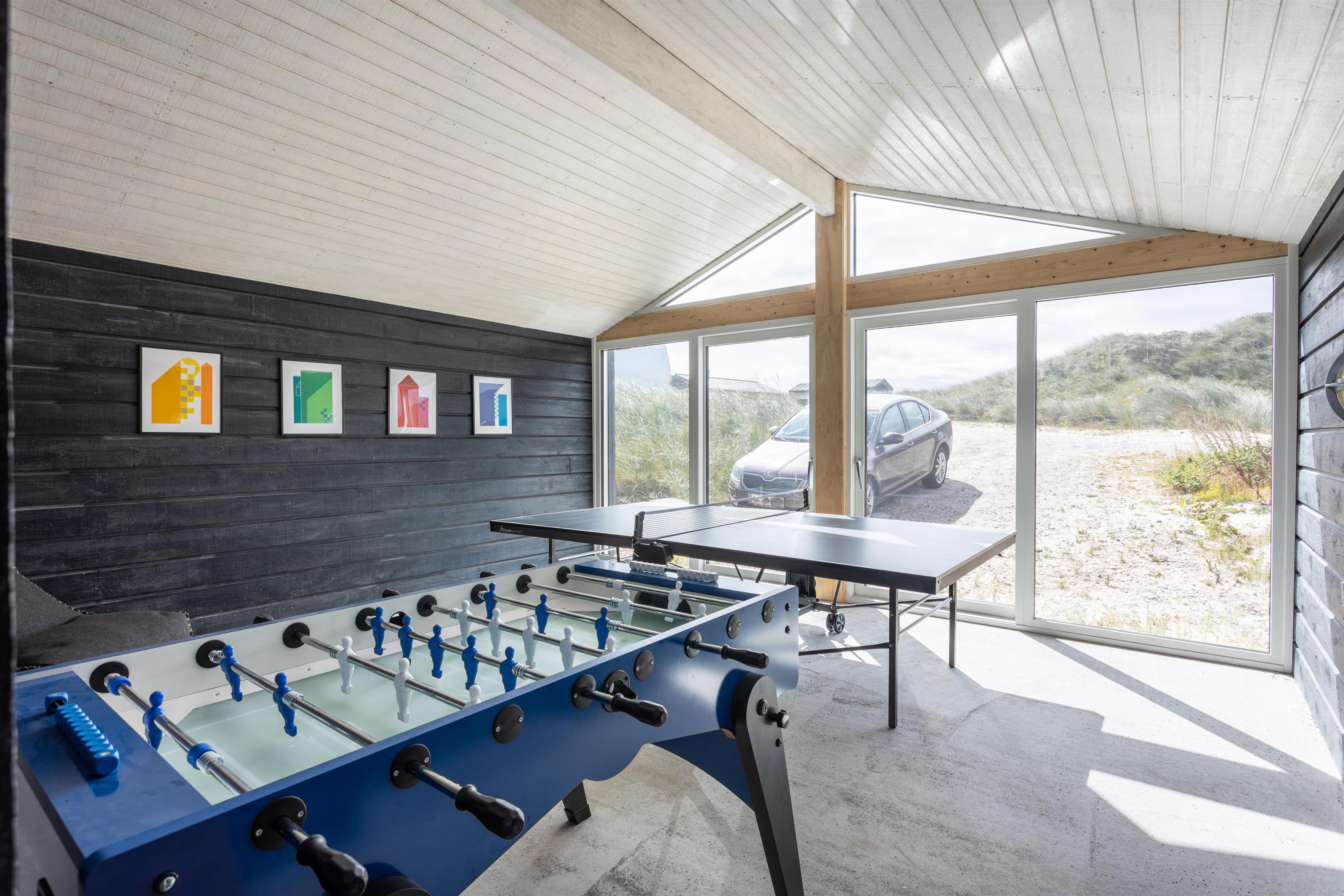 Med en skøn beliggenhed tæt på Vesterhavet er dette sommerhus ideelt for jer, der ønsker en ferie i naturskønne omgivelser. Huset er lyst og rummeligt, og de høje lofter skaber en luftig atmosfære, hvor der er plads til både afslapning og samvær. I den store stue finder I en hyggelig brændeovn, som er perfekt til de kølige dage, mens I nyder udsigten til havet gennem de store vinduer. Det åbne køkken-alrum gør det nemt at samles om madlavning og måltider, og udsigten til Vesterhavet sætter scenen for en uforglemmelig ferie. Sommerhuset byder desuden på et skønt aktivitetsrum med både bordtennis og bordfodbold, hvor der er flere timers underholdning for både store og små. Her kan hele familien få en sjov og aktiv stund sammen – ideelt på gråvejrsdage eller til hygge om aftenen.