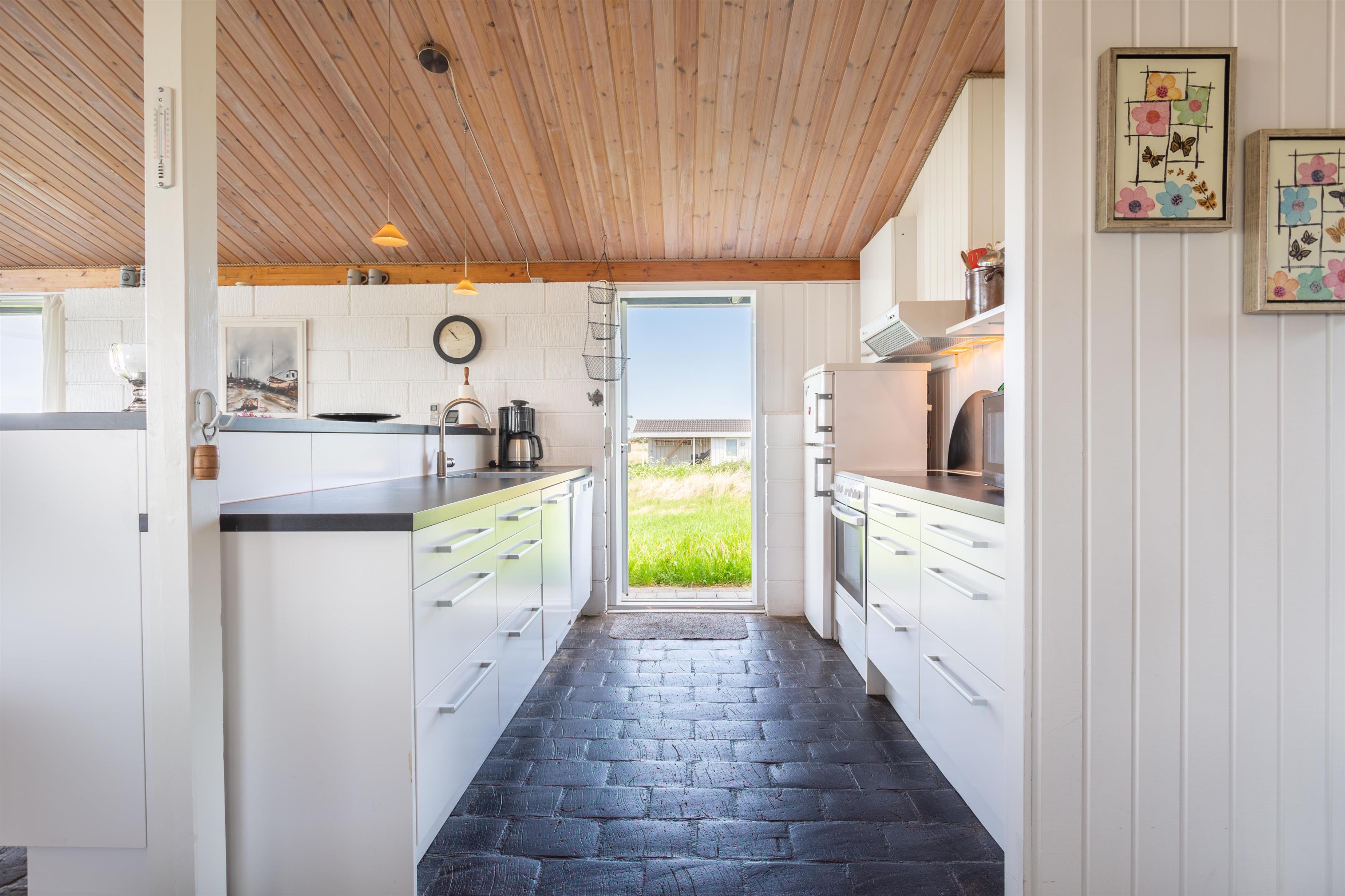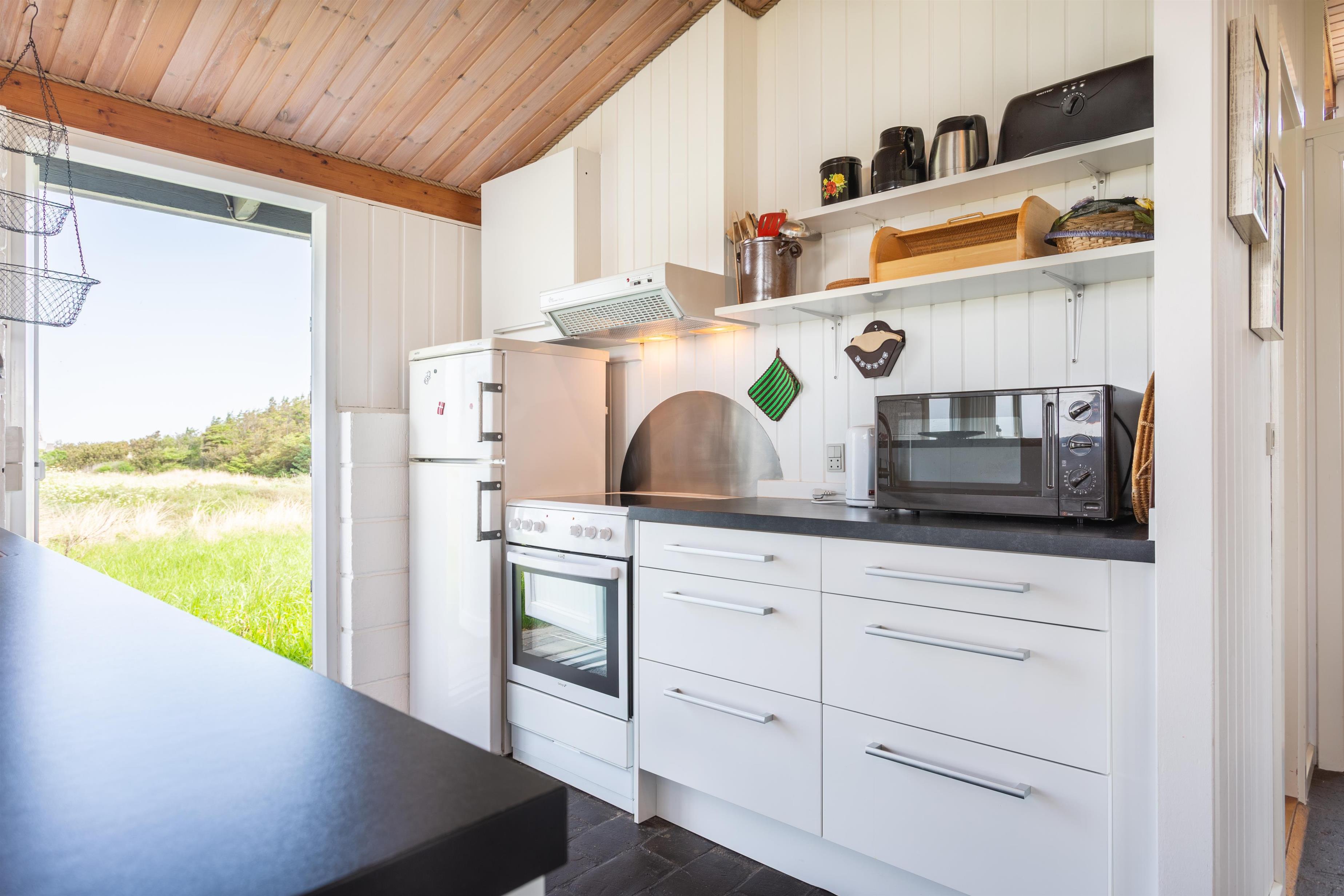 Sommerhuset fremstår pænt og velholdt og ligger på en dejlig grund. Indenfor er huset indrettet med køkken, spisestue og opholdsstue i ét, hvilket skaber en hyggelig atmosfære med plads til gode snakke og samvær med familien. Køkkenet er lyst indrettet og har alt, I skal bruge til madlavningen. Nyd de fælles måltider ved spisebordet og slap af i sofaen foran brændeovnen efter en oplevelsesrig dag. Den skaber varme og hyggelig stemning på kølige dage og aftener. Der er desuden en varmepumpe i huset, som sikrer et godt indeklima året rundt. Med 3 soverum og badeværelse med bruser er der plads til hele familien. Her får i et godt udgangspunkt for en fantastisk ferie i Nordjylland.