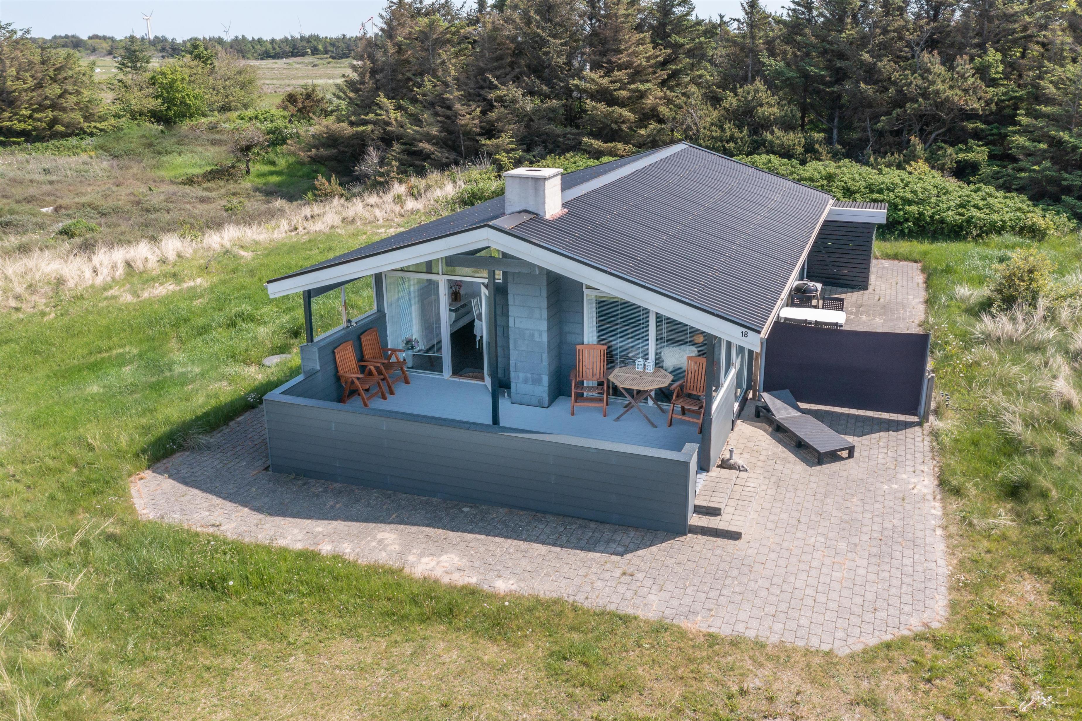 Udendørs finder I flere dejlige terrasser, hvor I kan slappe af og nyde feriestemningen i det rolige feriehusområde. Den overdækkede terrasse er udstyret med havemøbler, hvor I kan nyde måltider i den friske luft, uanset vejret. Der er også en åben terrasse, hvor I kan slappe af i solen. Grunden inviterer til leg og afslapning i private og rolige omgivelser.