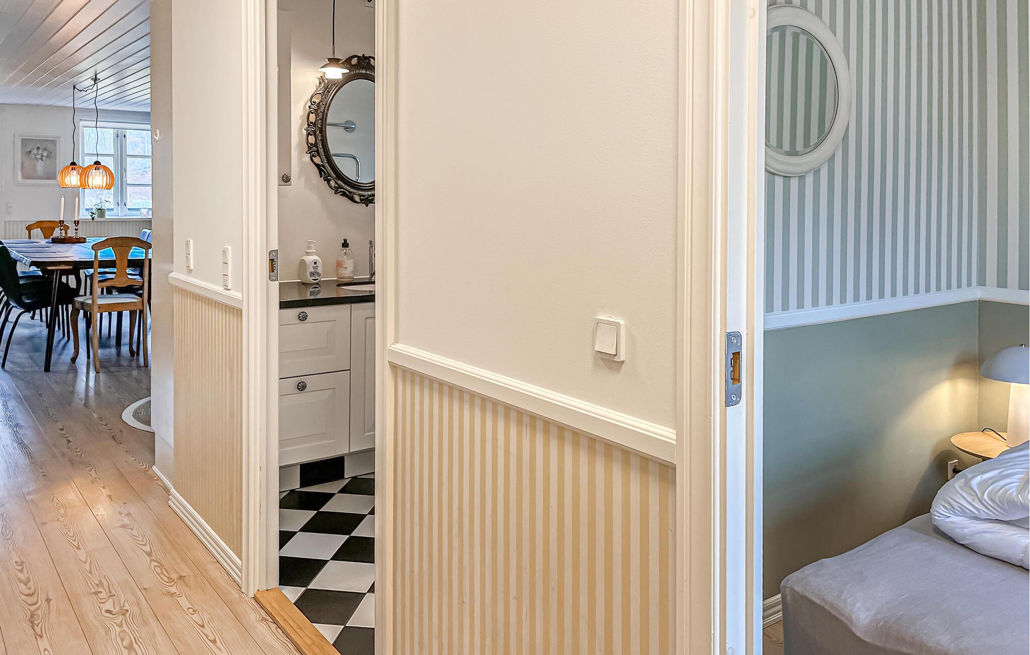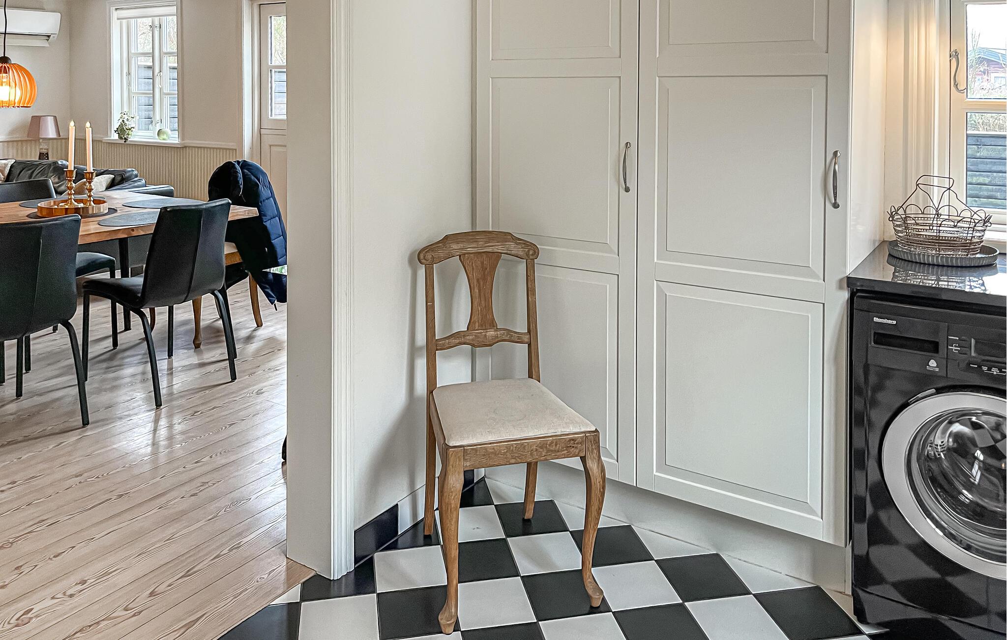 Nyd en lys og indbydende atmosfære med trægulve, stilfulde detaljer og et åbent opholds- og spiseområde, der tilbyder masser af plads til at tilbringe tid sammen. Nyd den hyggelige varme fra brændeovnen, mens I laver mad sammen og tilbringer hyggelige aftener omkring det store spisebord. Senere kan I slappe af på sofaen og streame en god serie sammen.