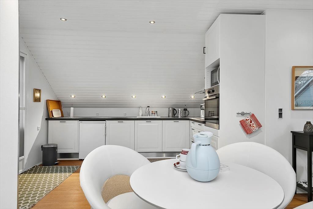 Sommerhus i Syd Samsø, Østjylland, med plads til 2 voksne. Der er en hyggelig indretning.