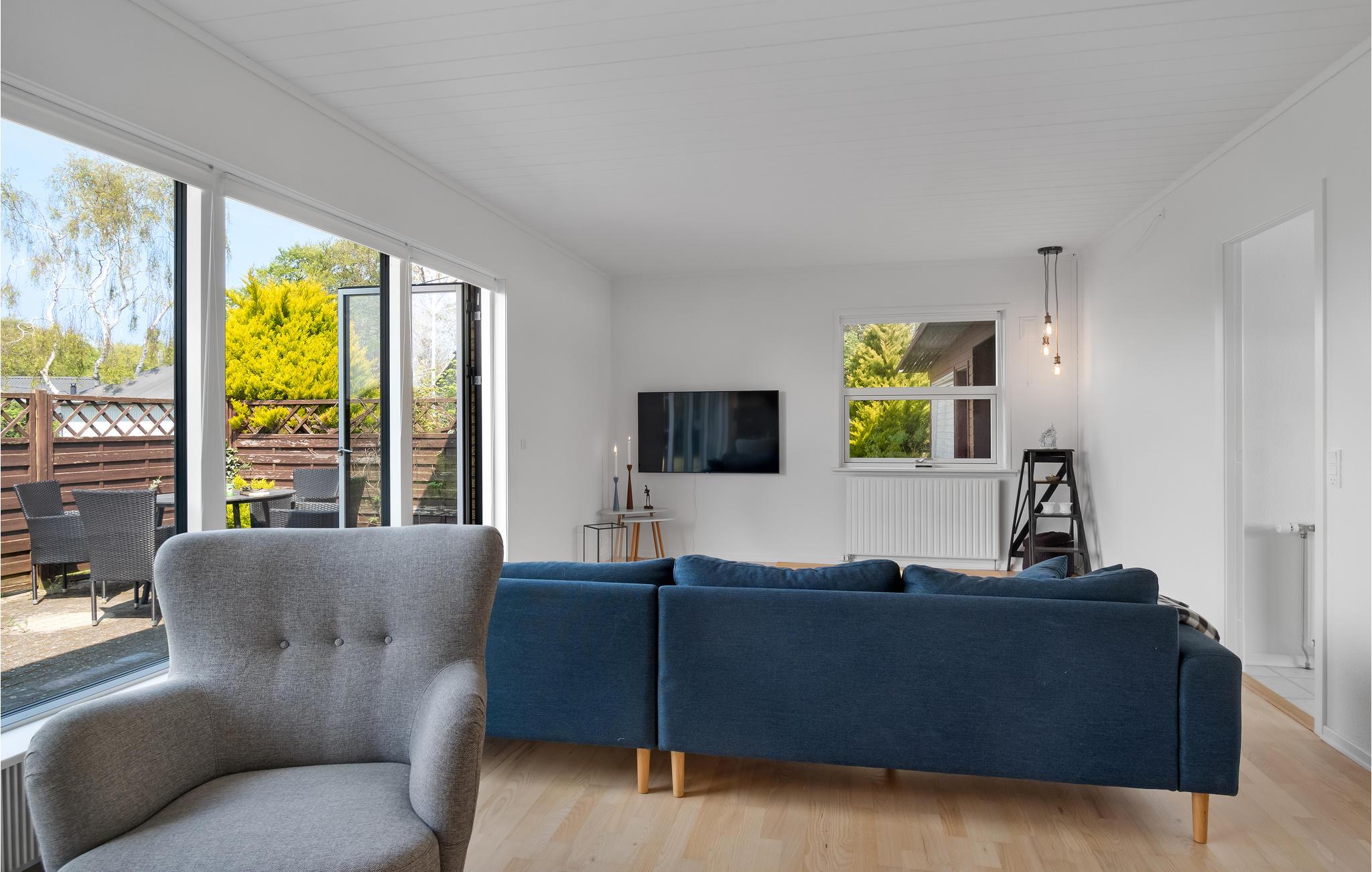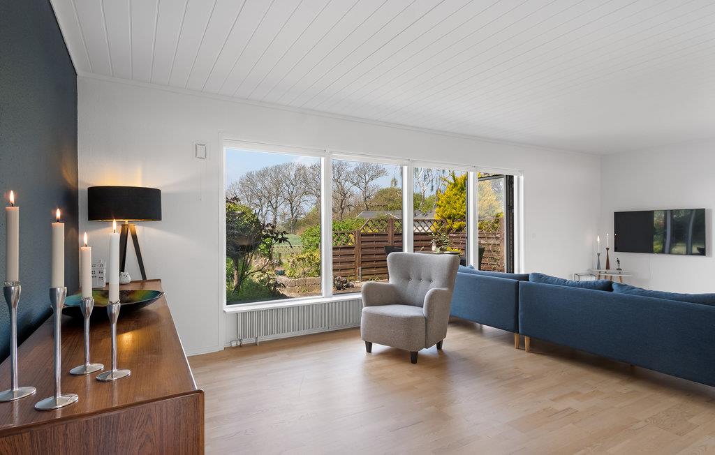 Murstenshuset er pænt og enkelt indrettet og har store vinduespartier, hvilket inviterer de grønne rammer indenfor. Her sænker man automatisk skuldrene og slapper af. Sæt jer med en god bog i stuen og læn jer godt tilbage, inden det igen går løs med flere oplevelser ude på øen. På terrassen kan I nyde sommerens måltider sammen, mens I kigger direkte ud på de flotte omgivelser.