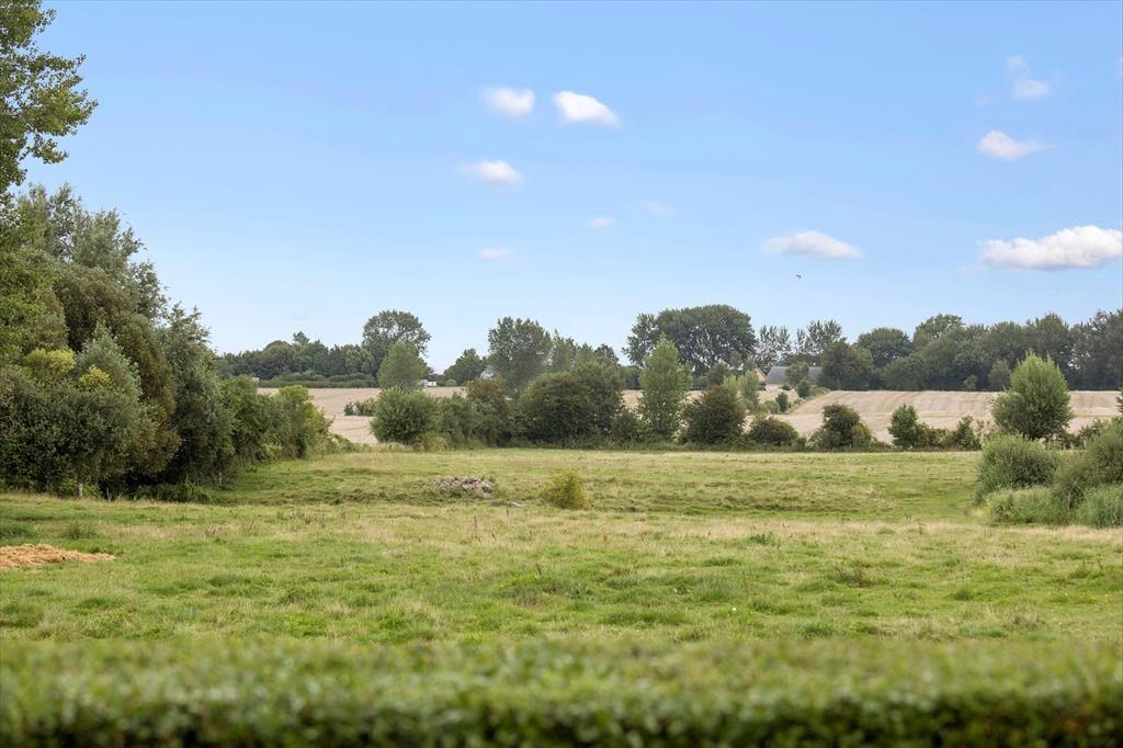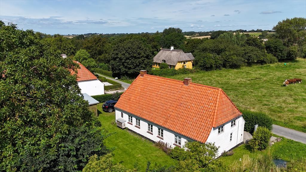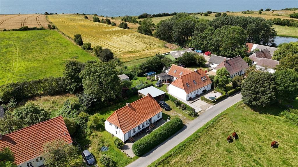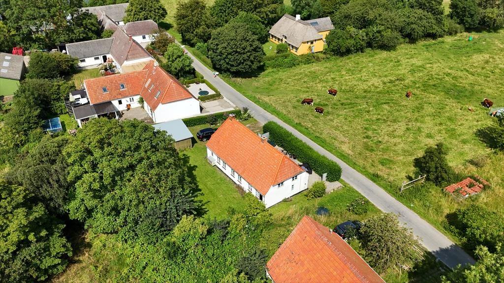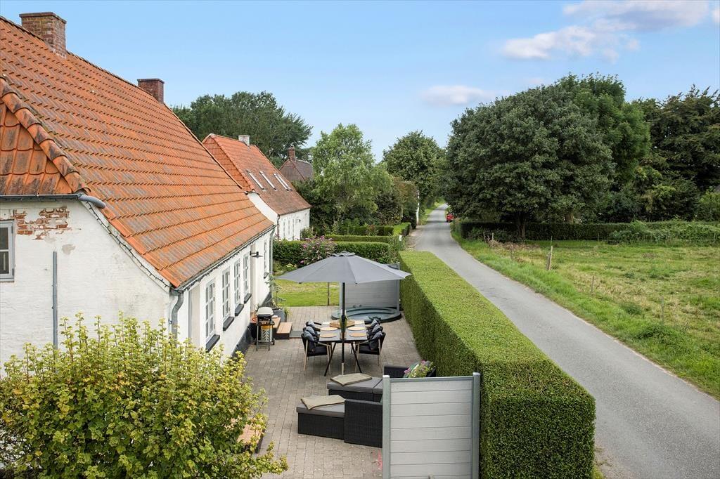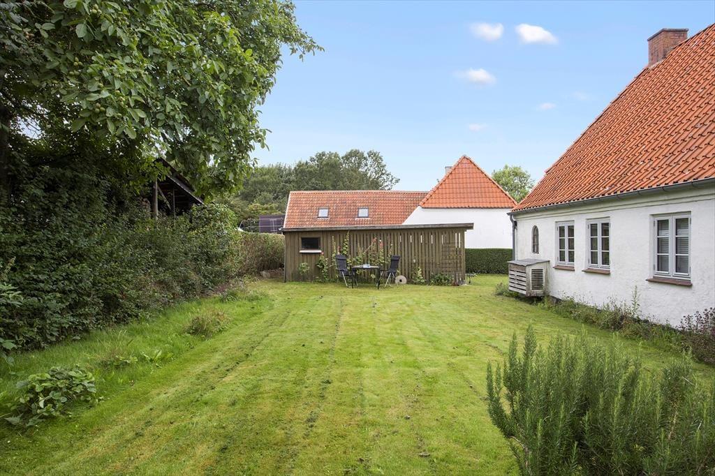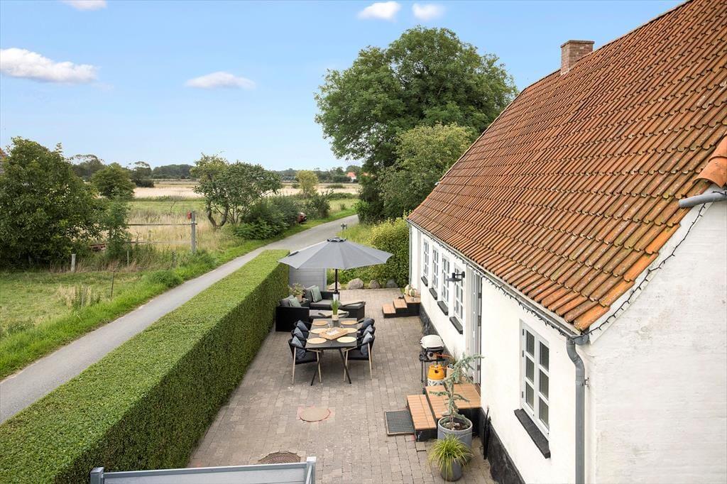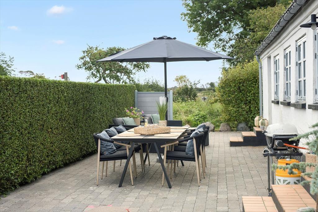 Huset er beliggende midt på Ærø ud mod åbne marker. Til huset er en terrasse med havemøbler, grill og liggestole samt en skøn have. Der forefindes gode parkeringsmuligheder på den store indkørsel/parkeringsplads ved huset.