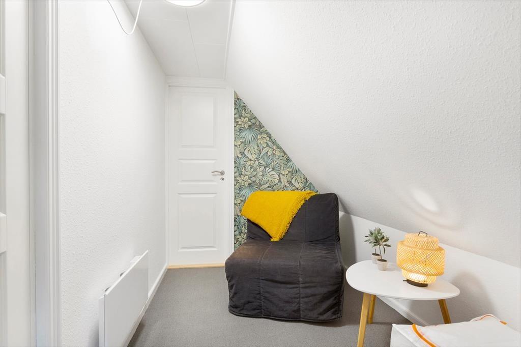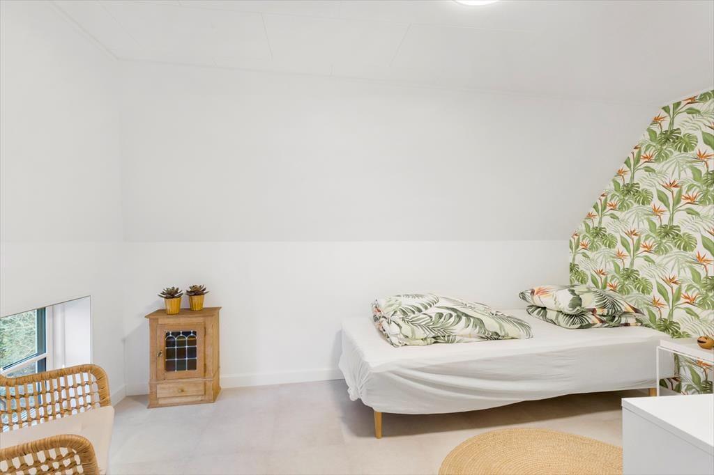 Velholdt feriehus i 2 plan. Huset indeholder i stueplan et bryggers samt et skønt badeværelse med vaskemaskine, et veludstyret køkken med bl.a. opvaskemaskine og spiseplads, en super fin stue med sovesofa samt et stort soverum med dobbetlseng. På førstesalen er der en repos, med et soverum.