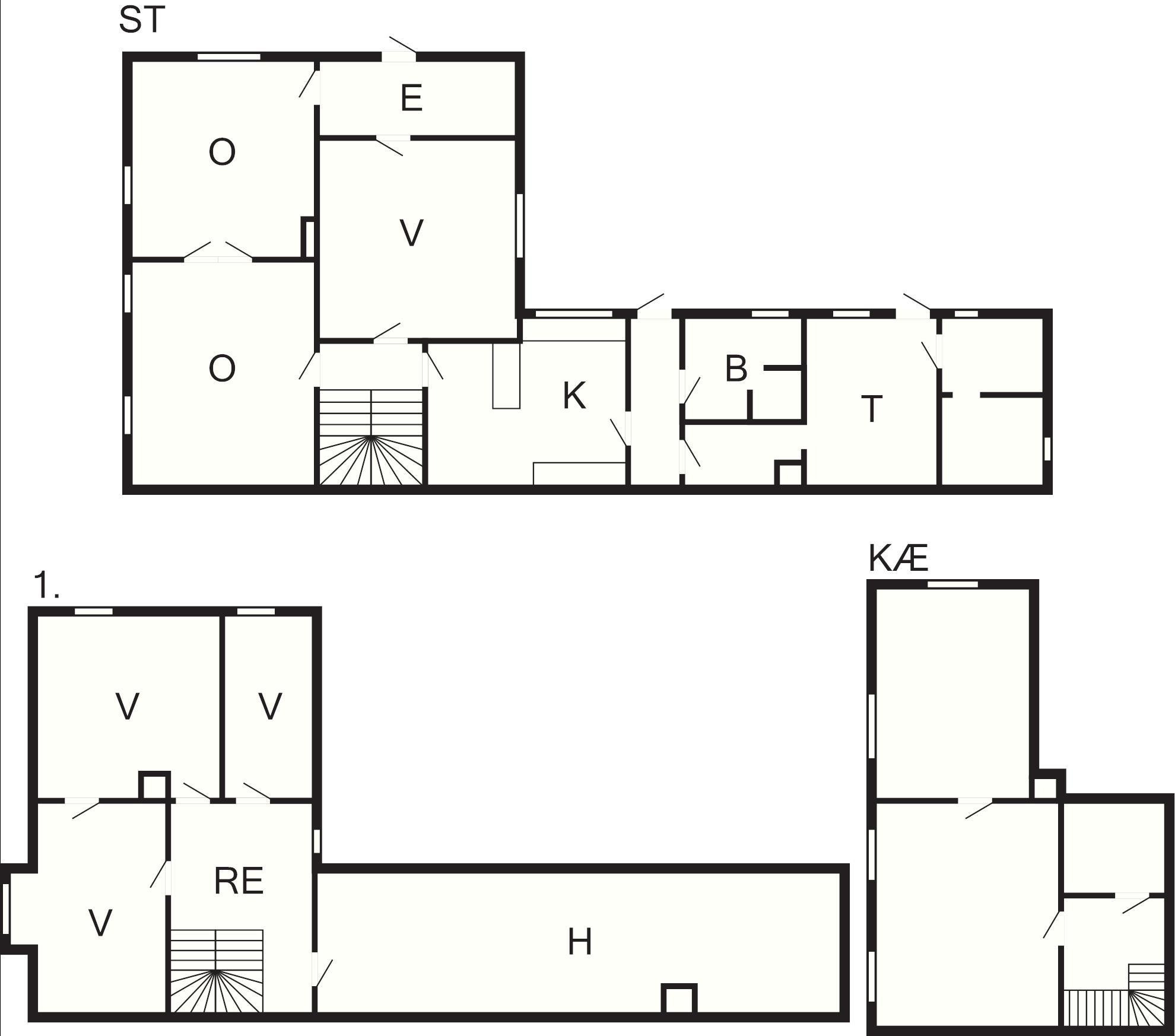 I stueetagen finder du bad/toilet, soveværelse med dobbeltseng, køkken, og to stuer en suite samt udgang til den smukke, kuperede have, hvor der er god plads til at boltre sig eller blot nyde solen, naturen og hyggeligt samvær.