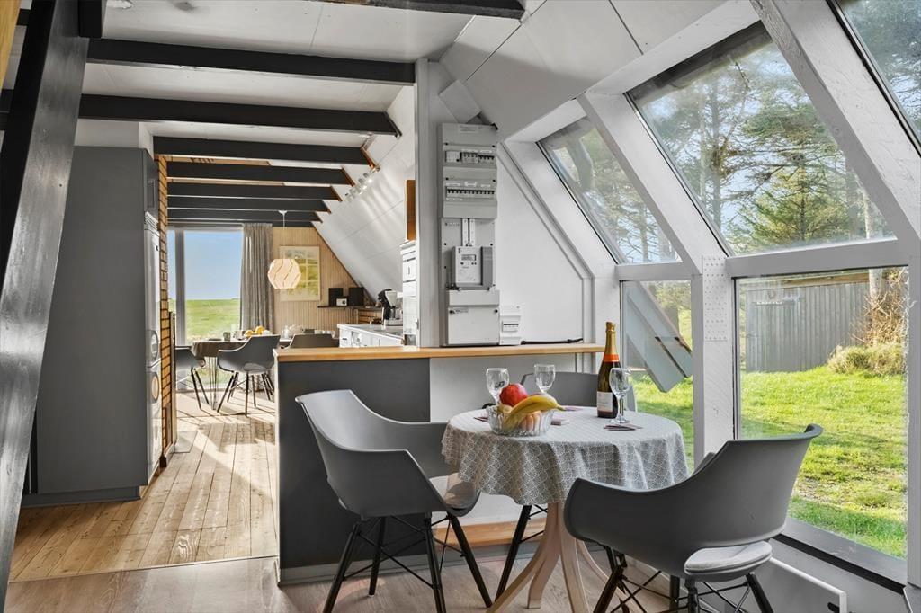 Indenfor byder sommerhuset på en skøn og autentisk atmosfære, hvor træbeklædningen og de varme nuancer giver en følelse af hygge og ro. Her er der tænkt på velvære i alle detaljer – efter en dag i vinden kan du forkæle dig selv med en tur i husets spabad eller sauna, mens du mærker kroppen falde til ro. Opholdsrummet samler det hele i ét: et hyggeligt køkken-alrum, hvor der kan laves mad, spilles spil og hygges foran tv’et, mens regnen trommer på ruden. Her kan op til syv personer nyde ferien sammen, og sovepladserne er fordelt på værelser med både dobbeltsenge, køjeseng og en enkeltseng – perfekt til både familie og venner.