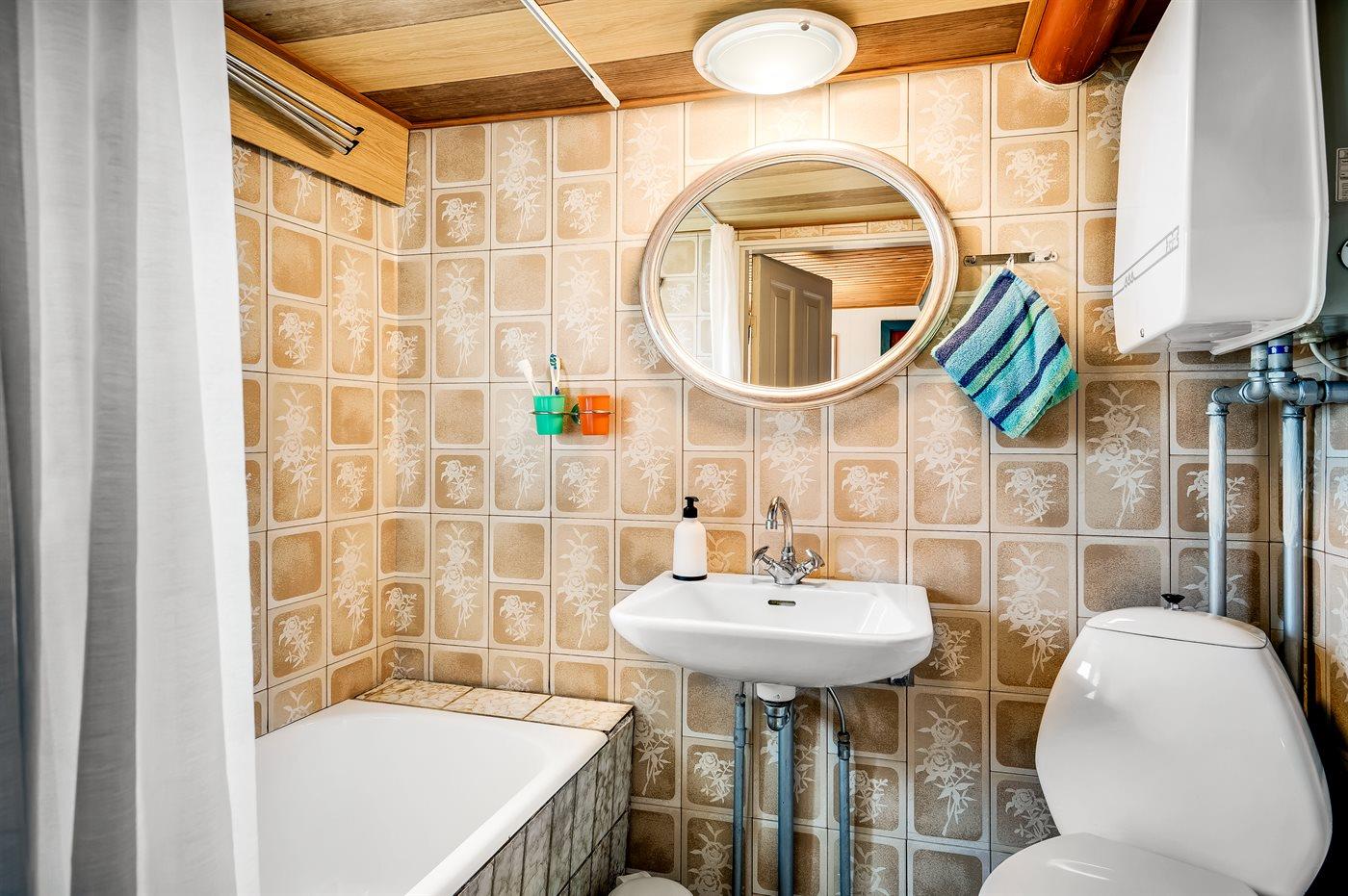 Der er 2 badeværelser med bruseniche og 2 toiletter. Badekar.