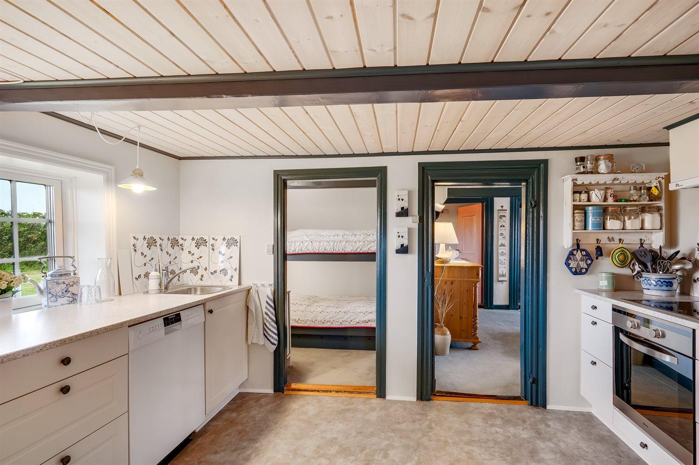 Køkkenet er udstyret med 1 køleskab. Der er 4 keramiske kogeplader, varmluftovn samt opvaskemaskine.