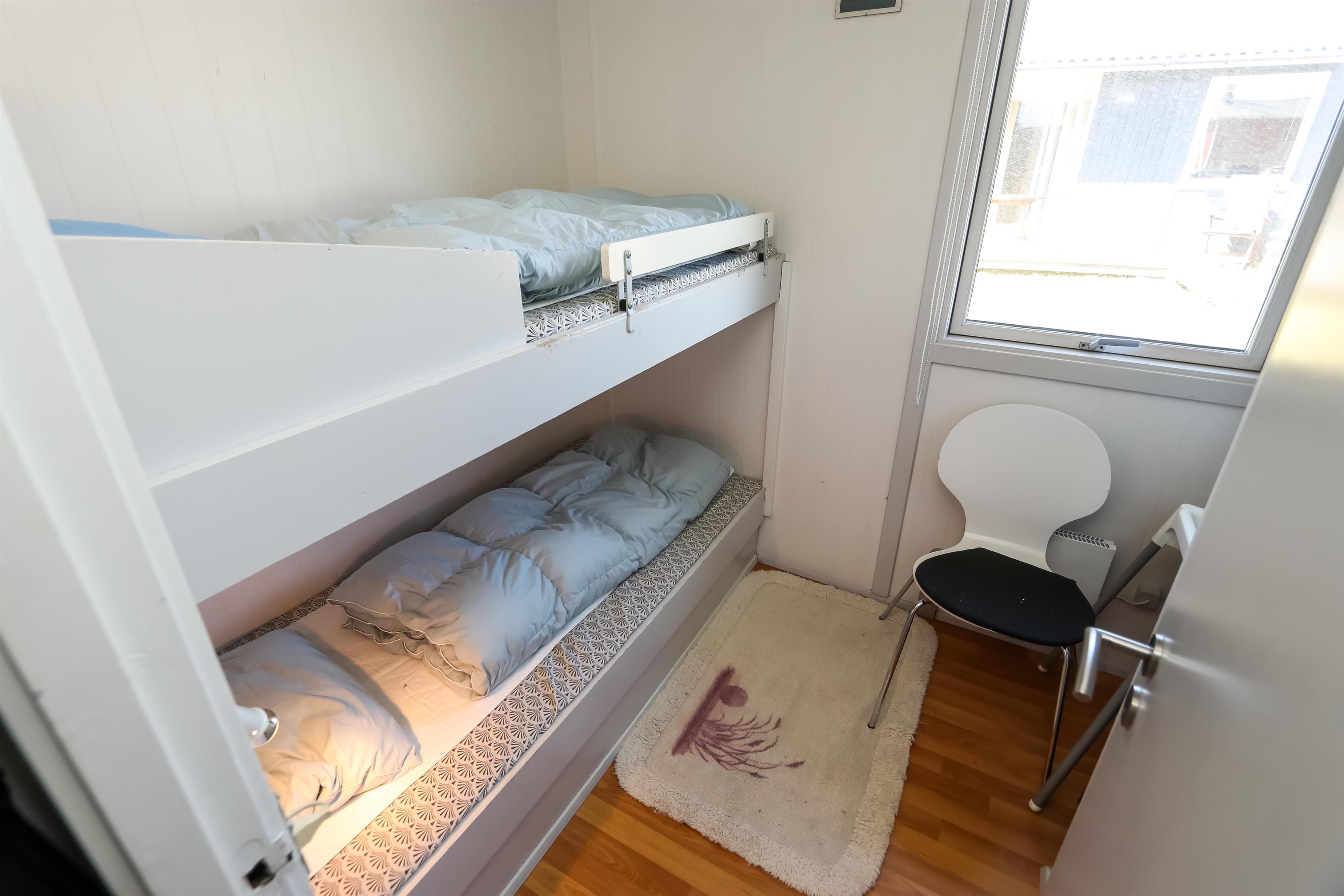 55 m2 træferiehus som er bygget i 1971 og delvis renoveret i 2015. 3 soveværelser (1DS, 1DS, 1KS). Kombineret opholdsstue og pænt, nyere køkkenhjørne. Lige på den anden side af køkkenhjørnet er spisebordet placeret. Herudover er der tv med danske og tyske kanaler, DVD/radio/CD. Varmepumpe og en dejlig brændeovn søger for en billig varmeregning og ekstra hygge. Pænt veludstyret køkkenhjørne med komfur med kogeplader og ovn, emhætte og køleskab med lille fryseboks. Flot badeværelse med toilet, bruser, håndvask, vaskemaskine og klinkegulv med gulvvarme. Fra stuen er er kig til Vesterhavet og klitterne. Der er trægulv i hele huset. Køle-/fryseskab i køjerummet. Ikke ryger hus. Max 1. husdyr tilladt.