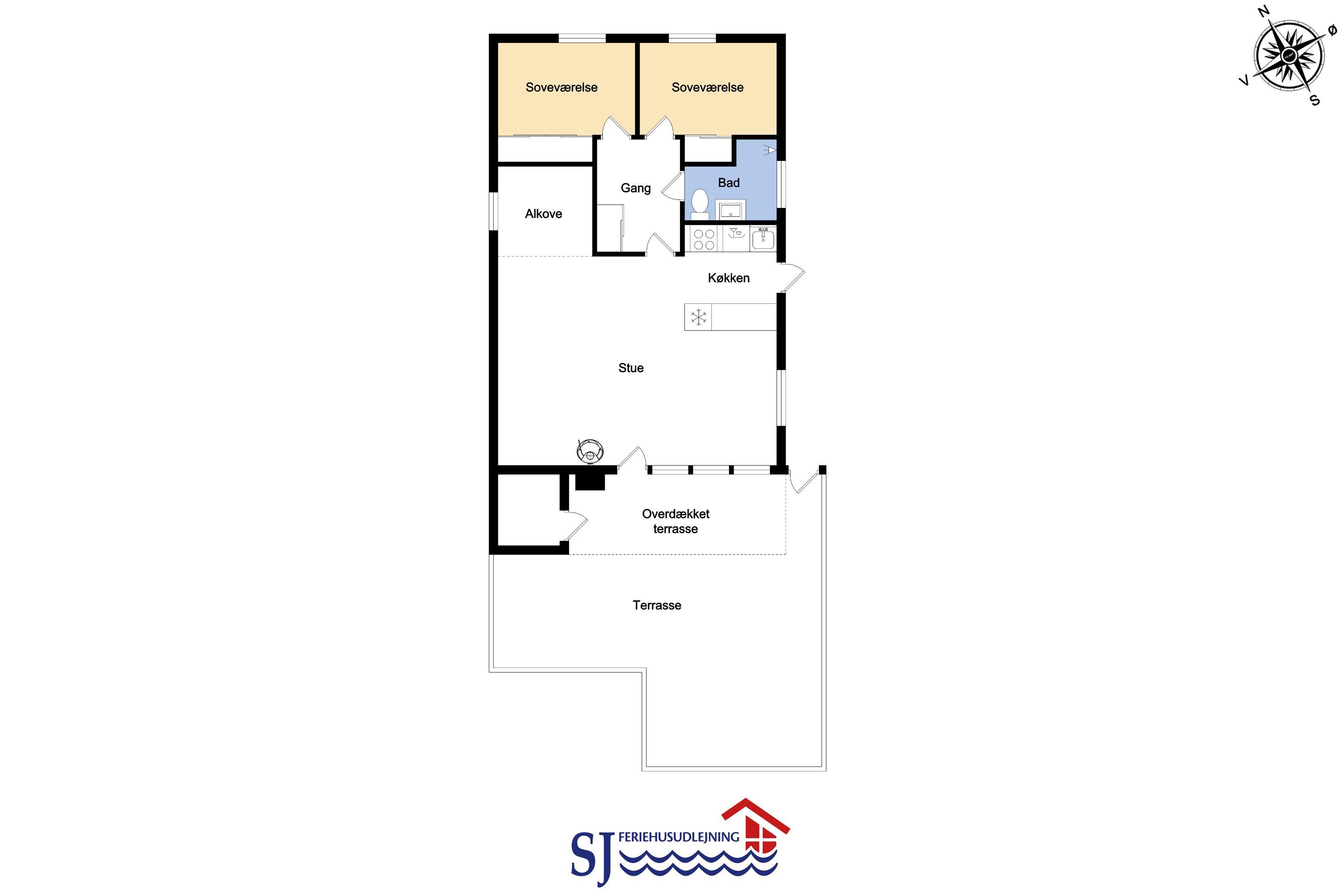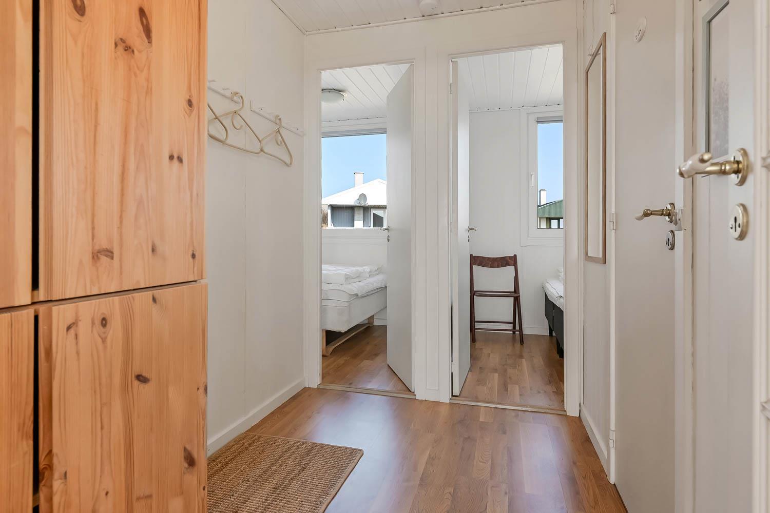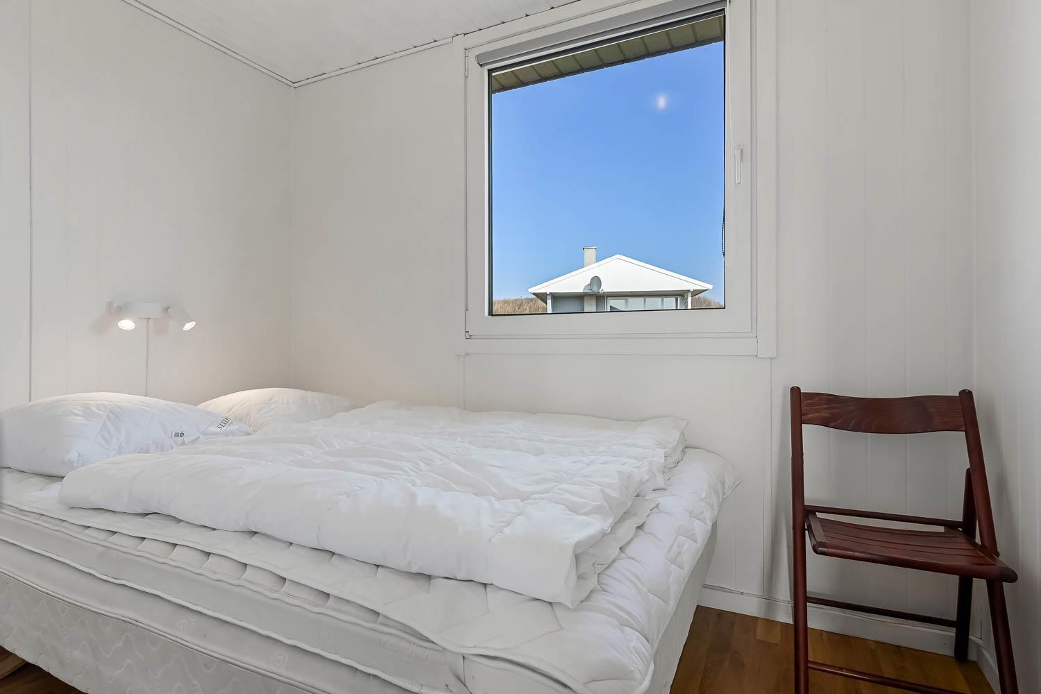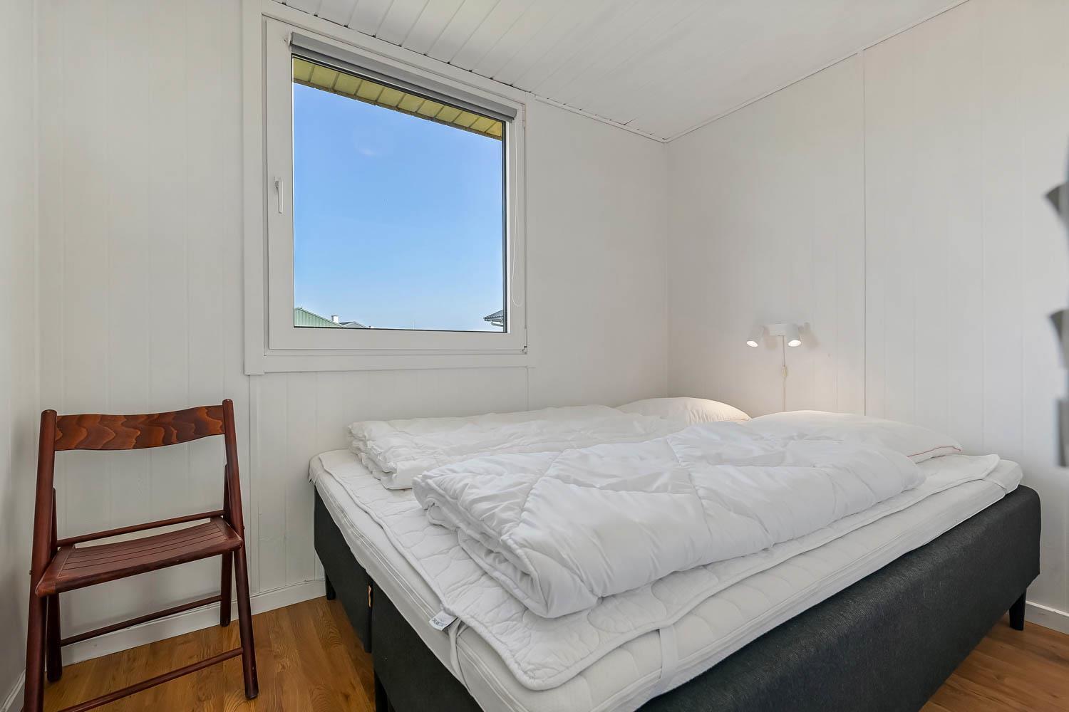 Huset rummer 2 soveværelser, begge med dobbeltseng, samt en hyggelig alkove med 2 ekstra sovepladser – perfekt til børnene.