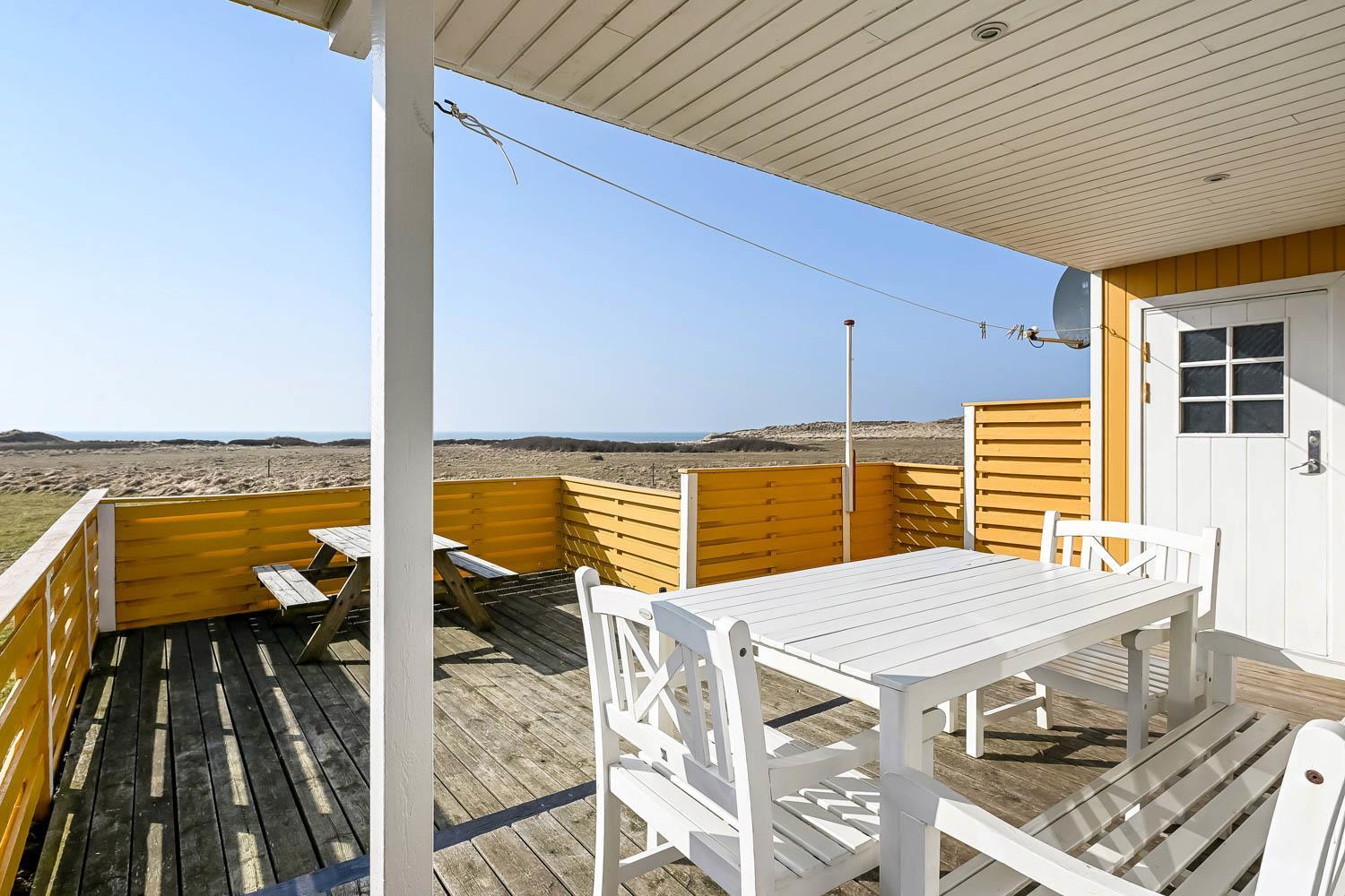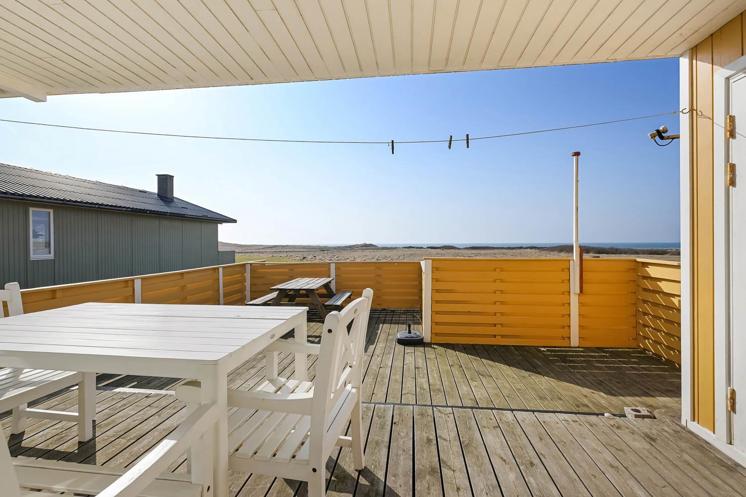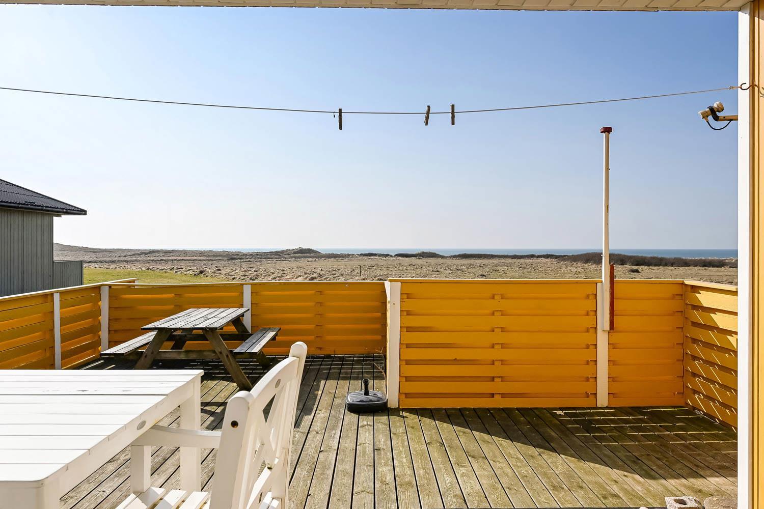 Udendørs kan I nyde livet på terrassen, hvor havudsigten også kommer til sin ret.