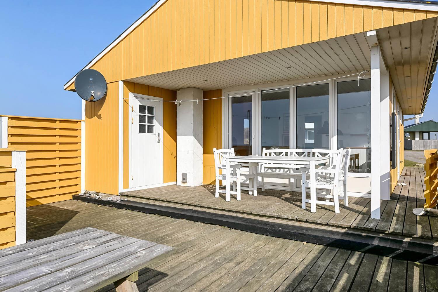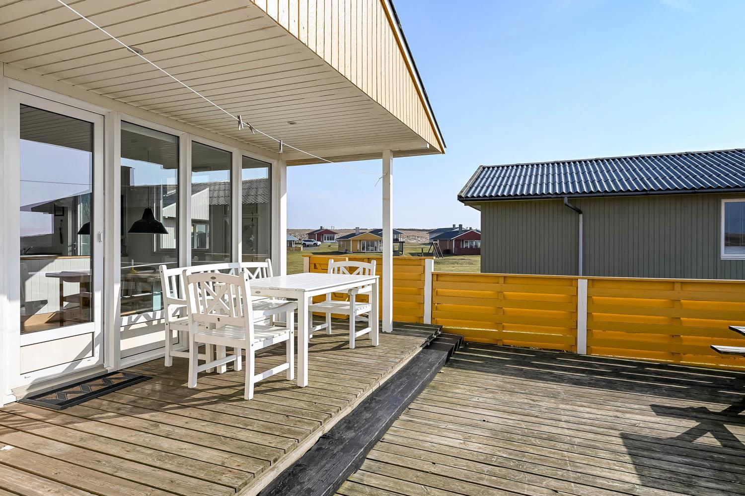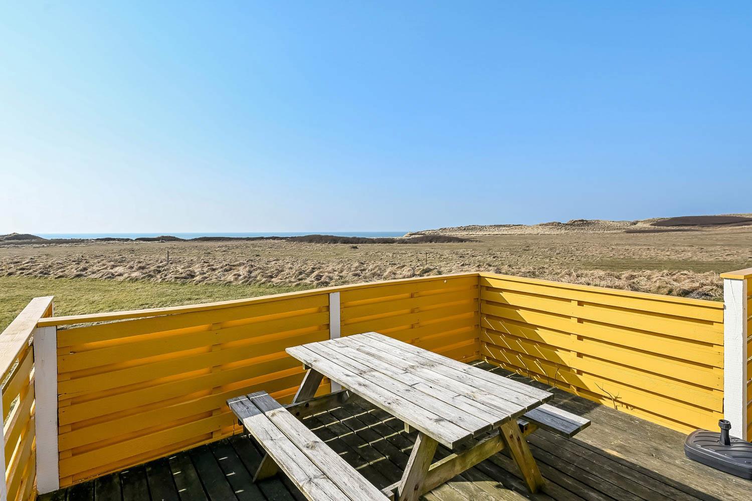 Udendørs kan I nyde livet på terrassen, hvor havudsigten også kommer til sin ret.
