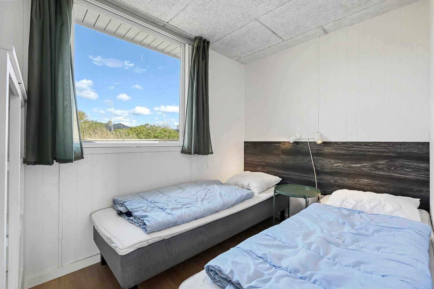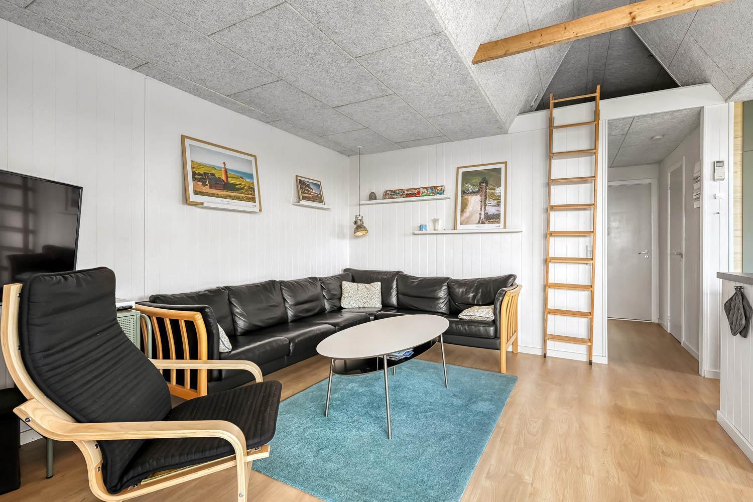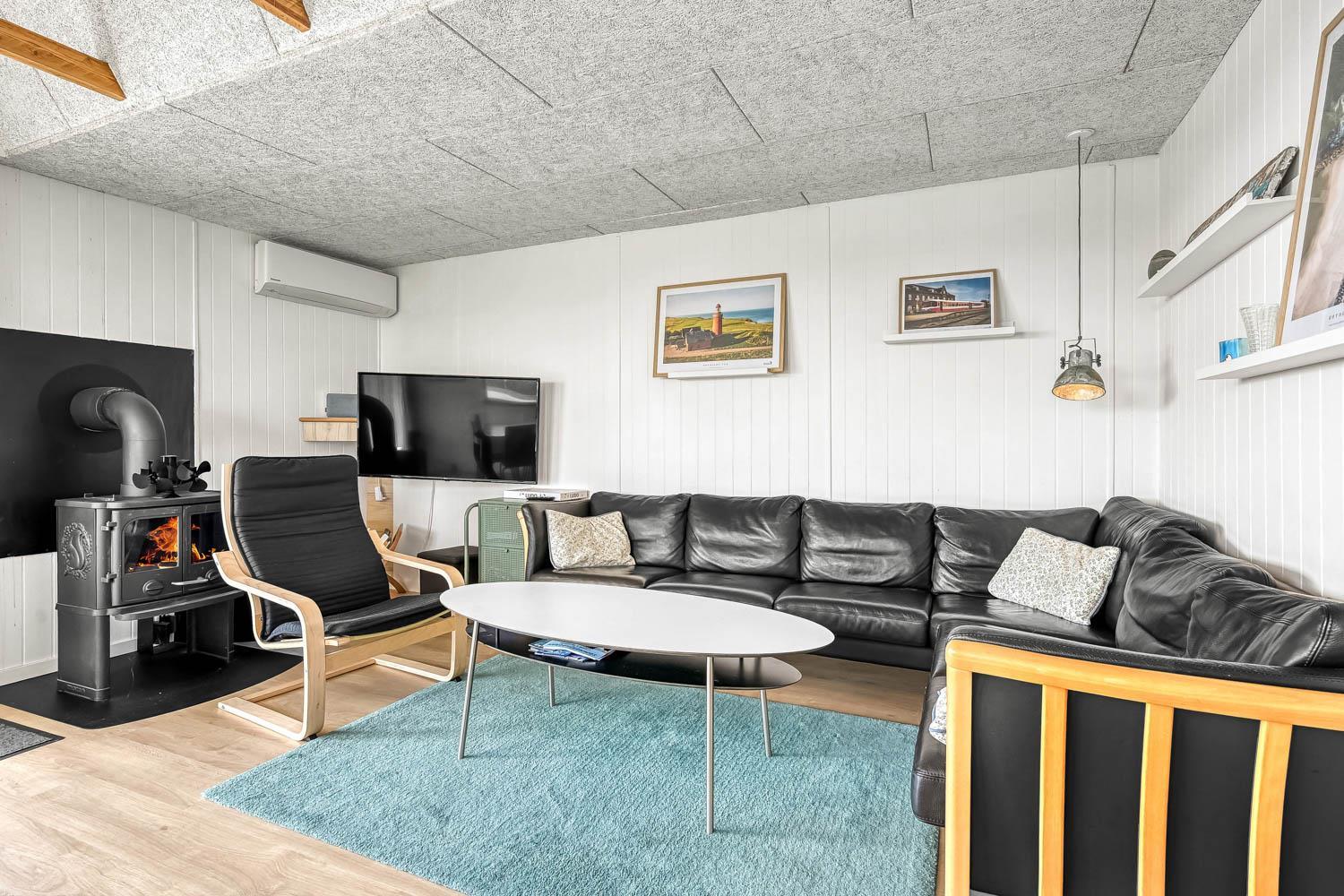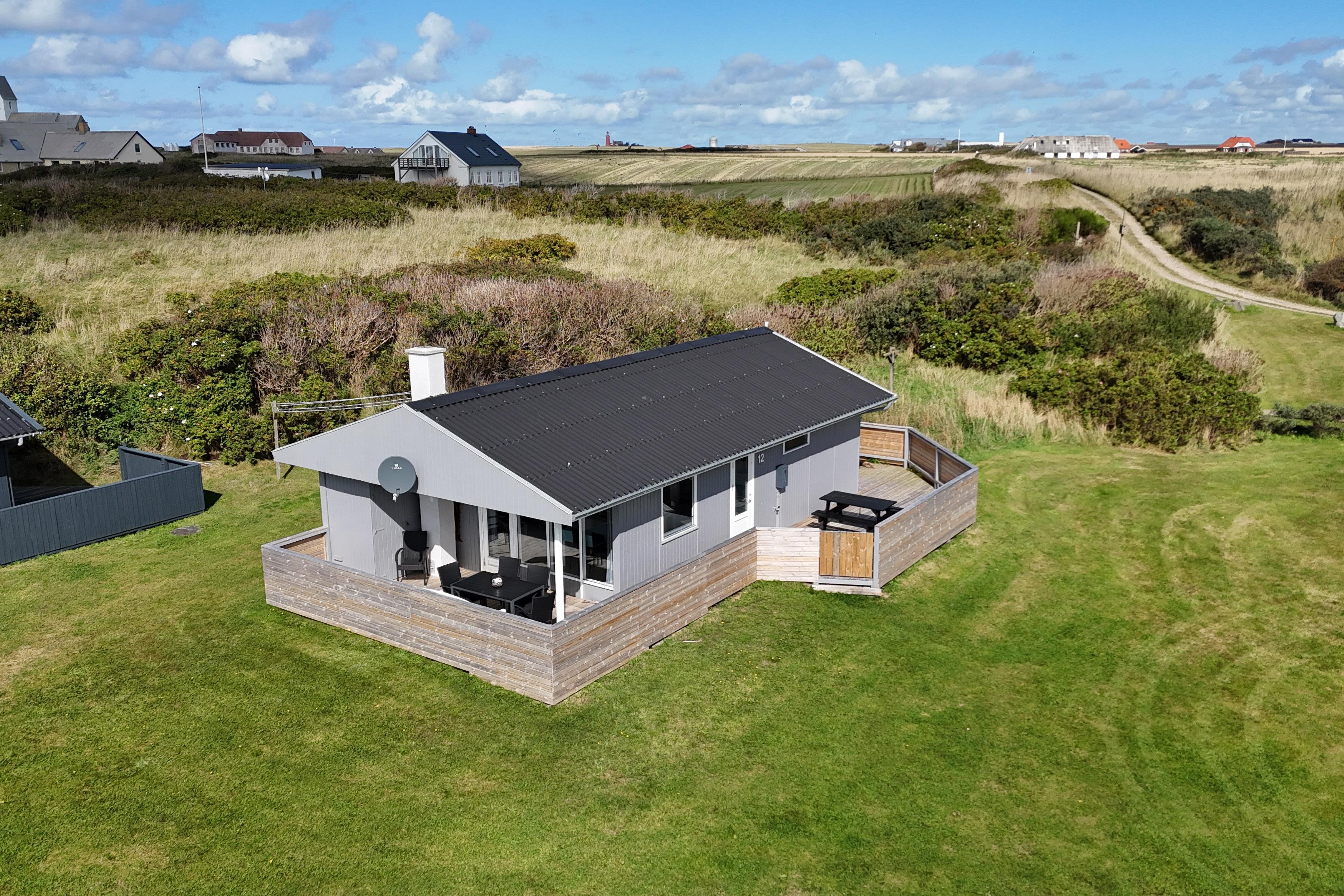 Pænt og hyggeligt inderettet, 55 m2 træferiehus med 3 soveværelser (1DS, 2ES 1S). Kombineret opholdsstue og nyt køkkenhjørne. Lige på den anden side af køkkenhjørnet er spisebordet placeret. Herudover er der tv med danske og tyske kanaler samt mulighed for streaming af TV / radio / Apps via Chromecast. En dejlig brændeovn og varmepumpe sørger for ekstra hygge og for at der altid er dejligt varmt uanset årstid og hjælper til med en billigere forbrugsafregning. Pænt og nyt køkkenhjørne med komfur med induktions kogeplader, emhætte, opvaskemaskine, mikroovn, køle-/fryseskab. Pænt badeværelse med toilet, bruser og håndvask. Fra stuen er er kig til Vesterhavet og klitterne. Der er Linoliumsgulve i alle opholds- og i soverum med 2S, i værelse med 1S og værelset med 1DS er der gulvtæppe. Ikke ryger hus. Husdyr ikke tilladt.