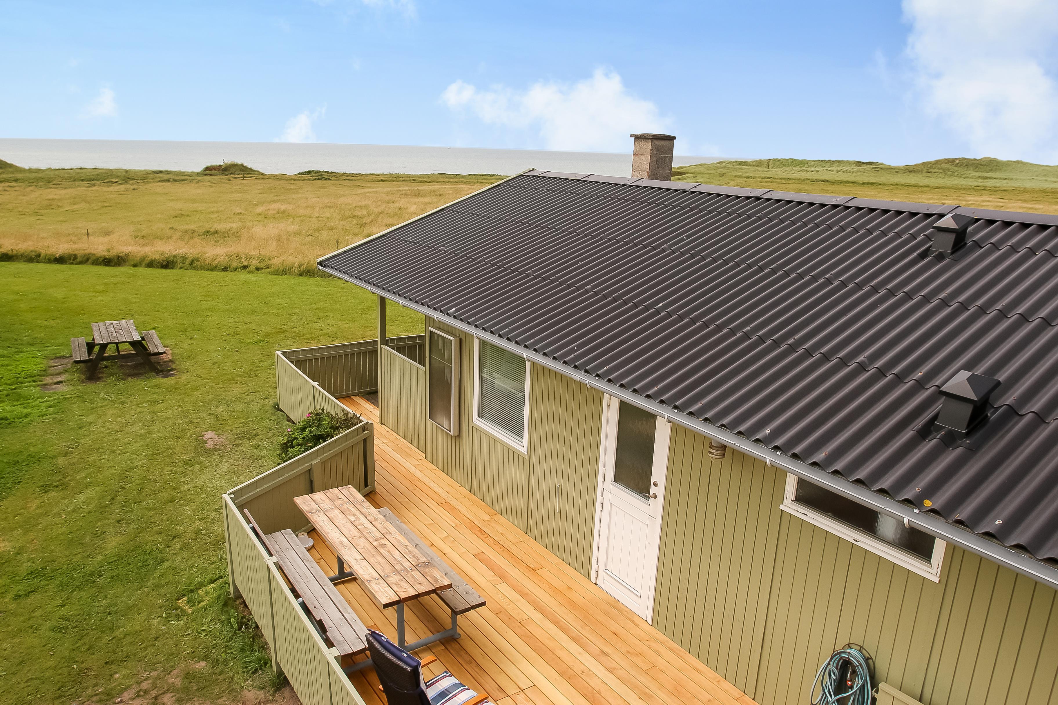 Træferiehus med gratis Internet og Havudsigt til Vesterhavet. Beliggende i hyggelige og rolige Trans Ferieby kun 100m fra stranden.