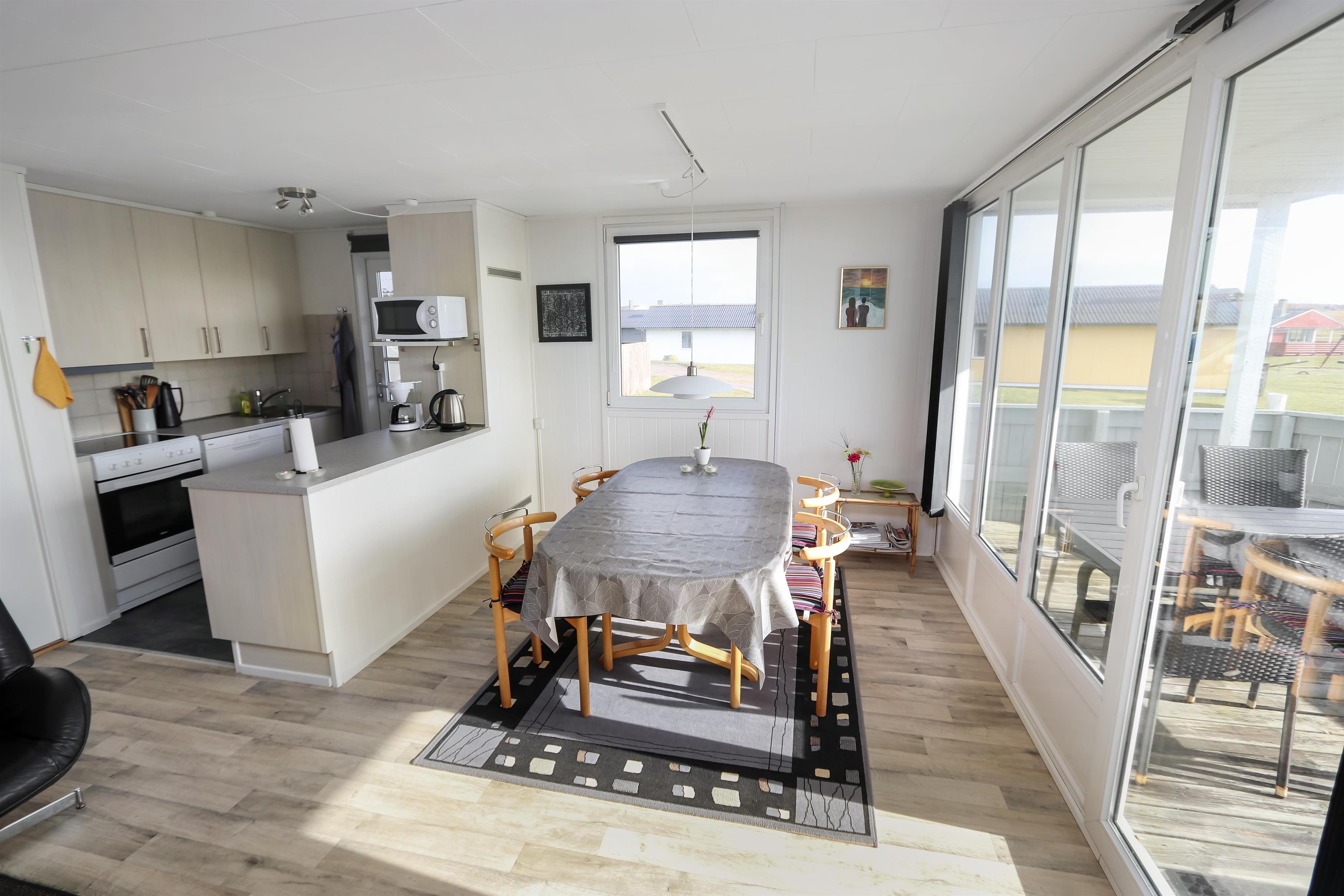 55 m2 stort træferiehus som er bygget i 1971 og delvis renoveret i 2023. 3 soveværelser (1DS, 2ES, 1KS). Dejlig, kombineret opholdsstue og nyt køkkenhjørne. Lige på den anden side af køkkenhjørnet er spisebordet placeret. Lyst og venligt indrettet med bla behagelige lædermøbler, tv med danske og tyske kanaler, DVD/radio/CD. En dejlig brændeovn og ny varmepumpe søger for en billig varmeregning og ekstra hygge. Nyt, veludstyret køkkenhjørne med Nyt komfur med keramiske kogeplader, ny opvaskemaskine, emhætte, mikroovn og køleskab med fryseboks. Flot badeværelse med toilet, bruser, håndvask, håndklædetørrer og ny vaskemaskine. Fra stuen er der flot panoramaudsigt over Vesterhavet. Flotte trægulve i hele huset. Ikke ryger hus. Max 1. husdyr tilladt.
