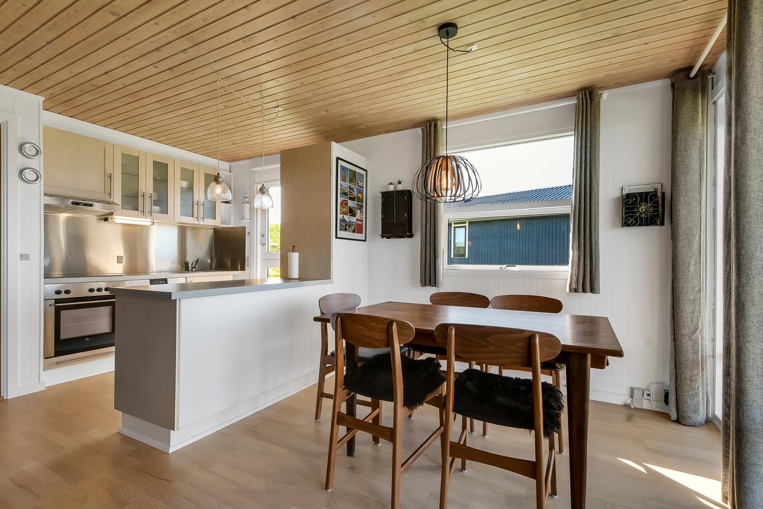 56 m2 træferiehus med 2 soveværelser (1DS, 1DS). Kombineret opholdsstue og køkkenhjørne. Lige på den anden side af køkkenhjørnet er spisebordet placeret. Herudover er der tv med danske og tyske kanaler samt mulighed for streaming af TV / radio / Apps. Opholdsstuen med lædermøbler og en varmepumpe som altid sørger for god varme en billig pris. Pænt køkkenhjørne med keramiske kogeplader, inbygningsovn, emhætte, køleskab med lille fryseboks, mikroovn, opvaskemaskine og udgang til terrasse. Pænt badeværelse med toilet, bruser, håndvask og klinkegulv med gulvvarme. Fra stuen er er kig til Vesterhavet. barnestol. Ikke ryger hus. Max 1. Husdyr tilladt.