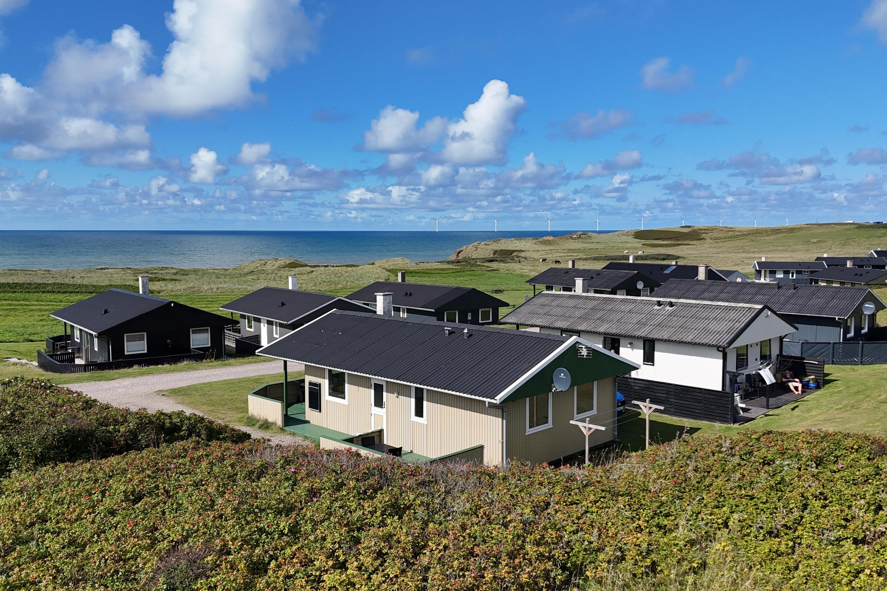 Området Trans Ferieby er et velholdt område med mange ens huse med hver deres særpræg. På de velholdte fællesarealer er der en fælles legeplads som er lavet i 2012, hvor der findes legehus, gynger, sandkasse, børnevippe, ruchebane, fodboldmål, og bålplads. Åben naturgrund er på ca. 600 m2. Delvis overdækket og indhegnet terrasse med havemøbler og grill. Ekstra indhegnet terrasse som er helt perfekt til familien med børn eller hund. Nyd de lækre terrasse eller udforsk området. Gå en tur ved havet som hver dag fortæller nye historier eller besøg handelsbyen Lemvig og fiskerbyen Thyborøn, hvor der også er masser af aktiviteter og spisemuligheder.