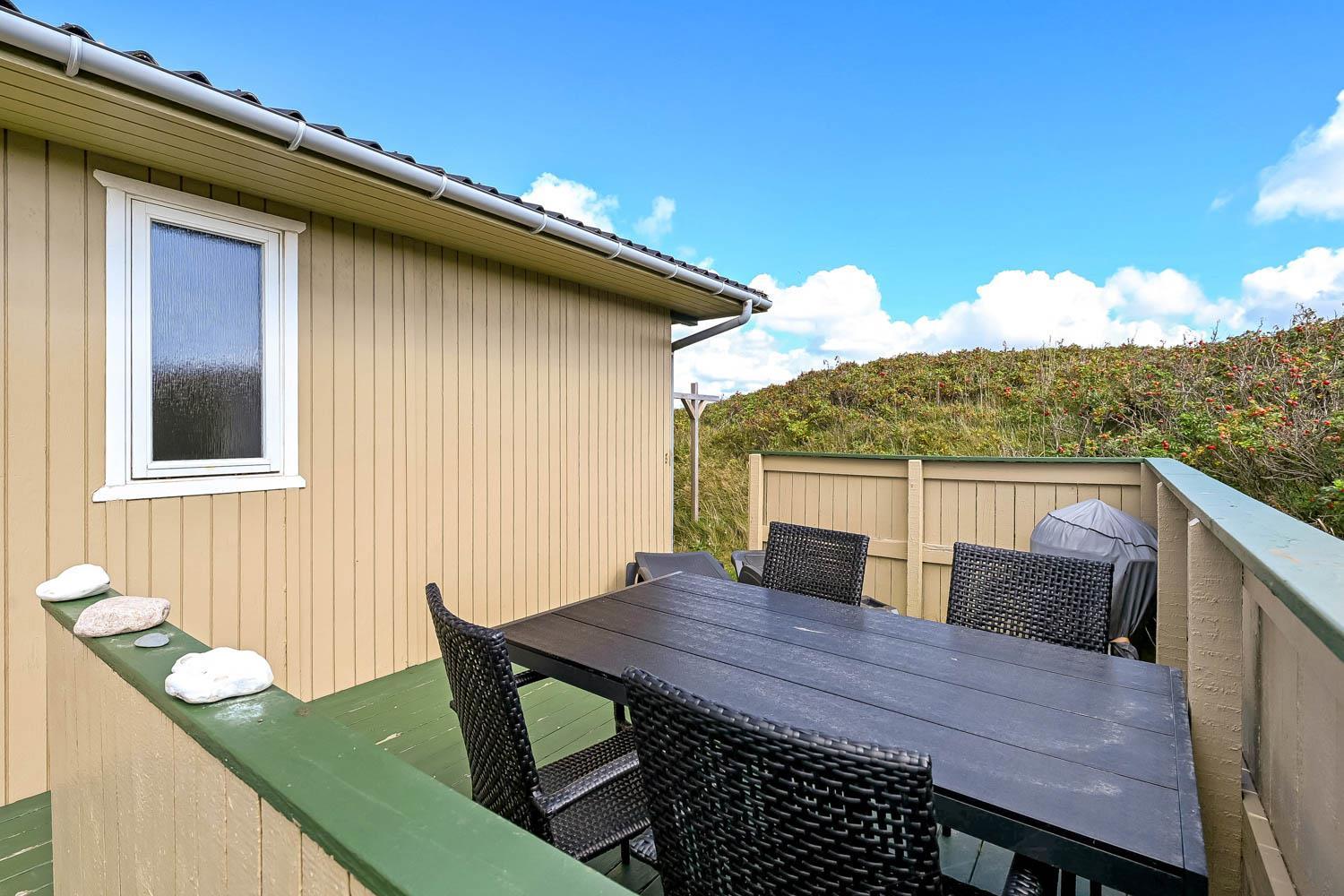 Nyrenoveret træferiehus med gratis Internet og delvis udsigt over Vesterhavet. Beliggende i hyggelige og rolige Trans Ferieby kun 120m fra Vesterhavet.