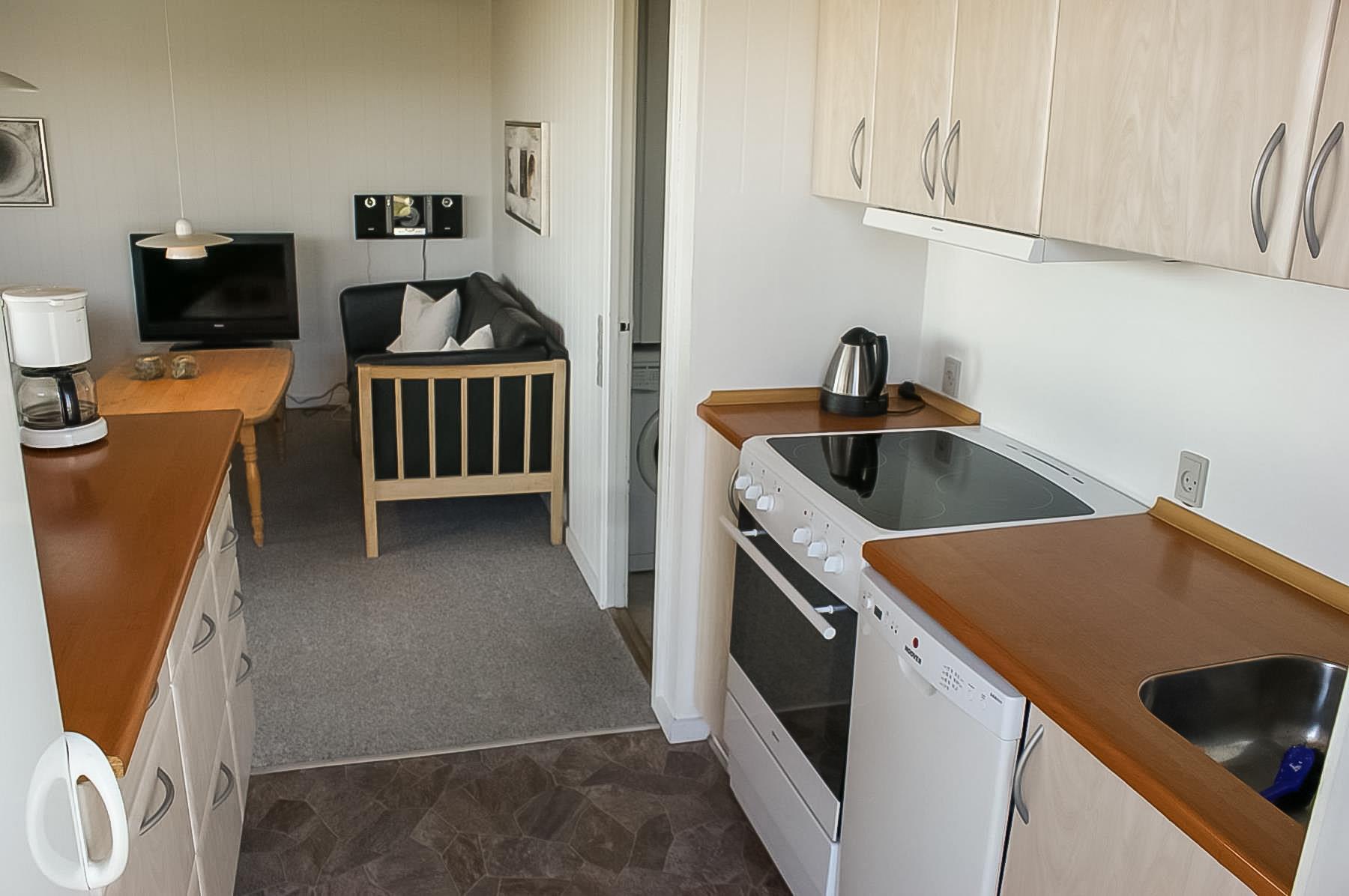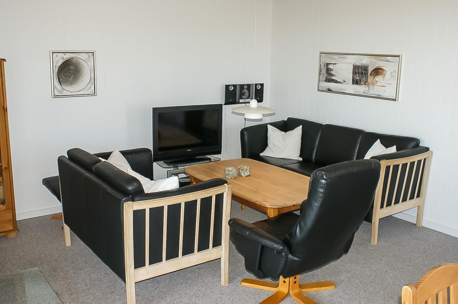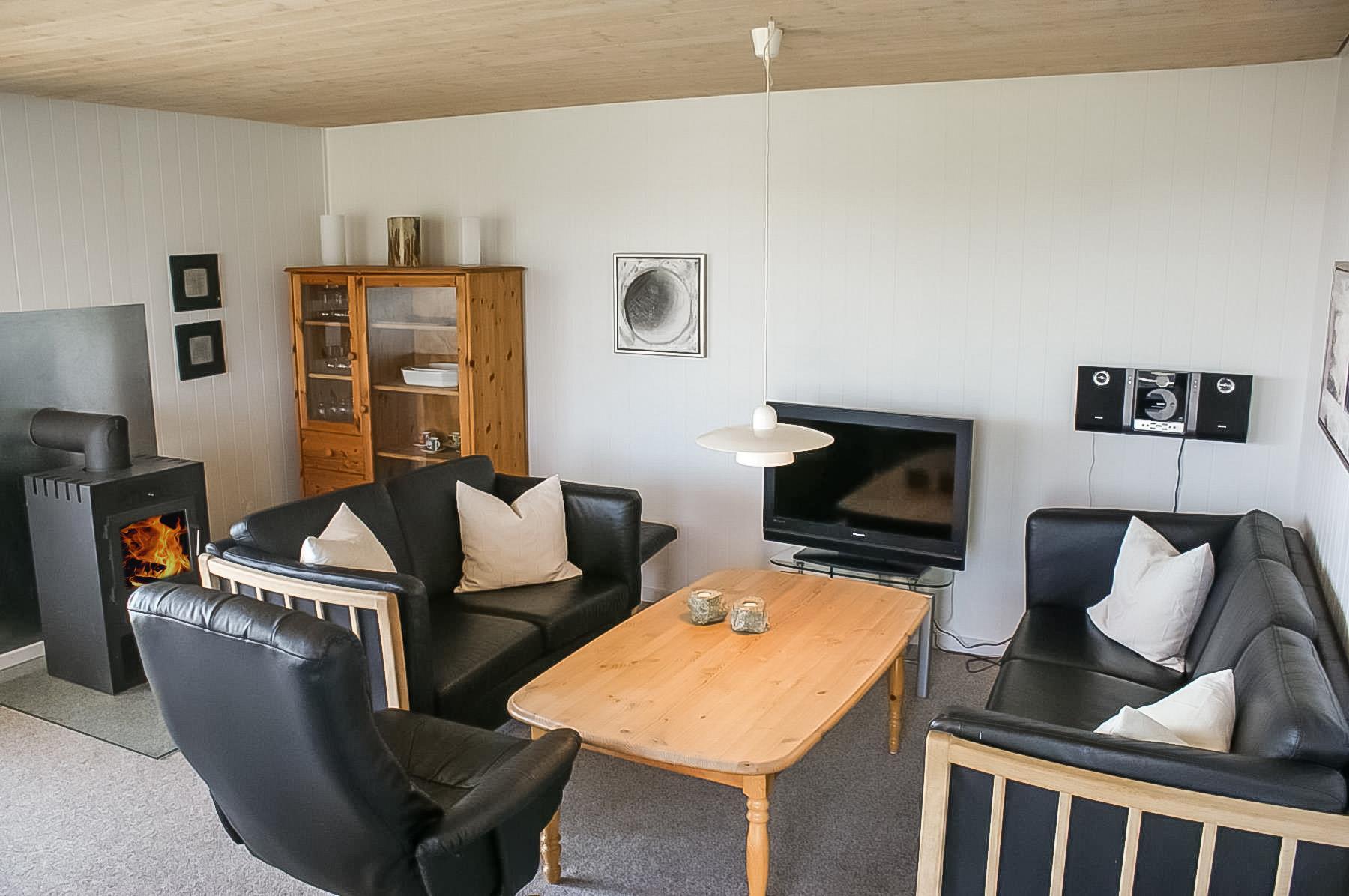 56 m2 træferiehus som er bygget i 1971 og renoveret i 2003. 3 soveværelser (1DS, 1DS 1KS). Kombineret opholdsstue og køkkenhjørne. Lige på den anden side af køkkenhjørnet er spisebordet placeret. Opholdsstue med lædermøbler, tv kun med tyske kanaler, radio/CD og en dejlig brændeovn som skaber ekstra hygge og varme. Pænt køkkenhjørne med komfur med glaskeramiske kogeplader, emhætte, opvaskemaskine og køleskab med lille fryseboks. Pænt badeværelse med toilet, bruser og håndvask. Vaskemaskine. Fra stuen er der panoramaudsigt til Vesterhavet. Der er gulvtæppe i opholdsstuen og praktisk linoleum i de andre rum. Max 1 husdyr tilladt.