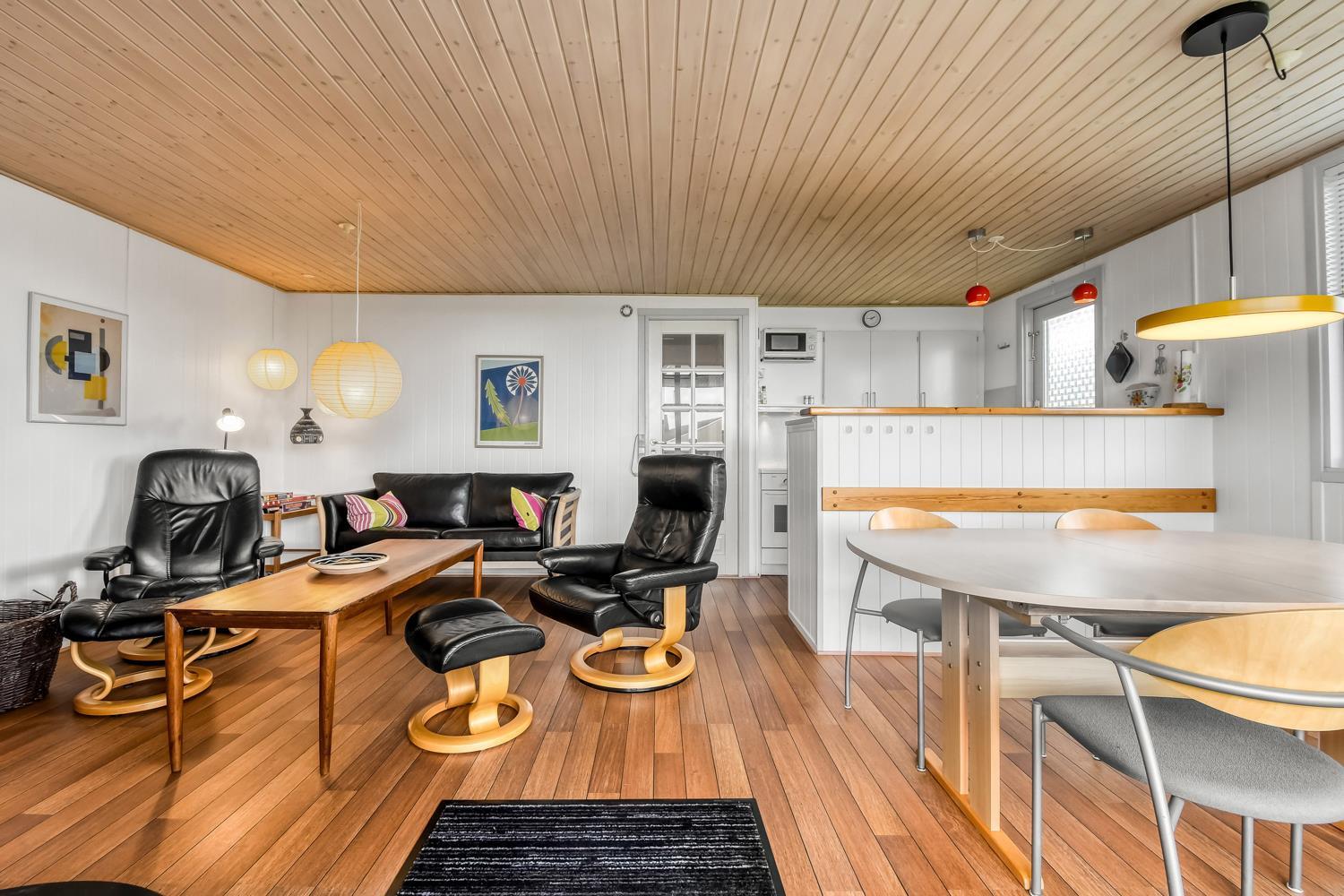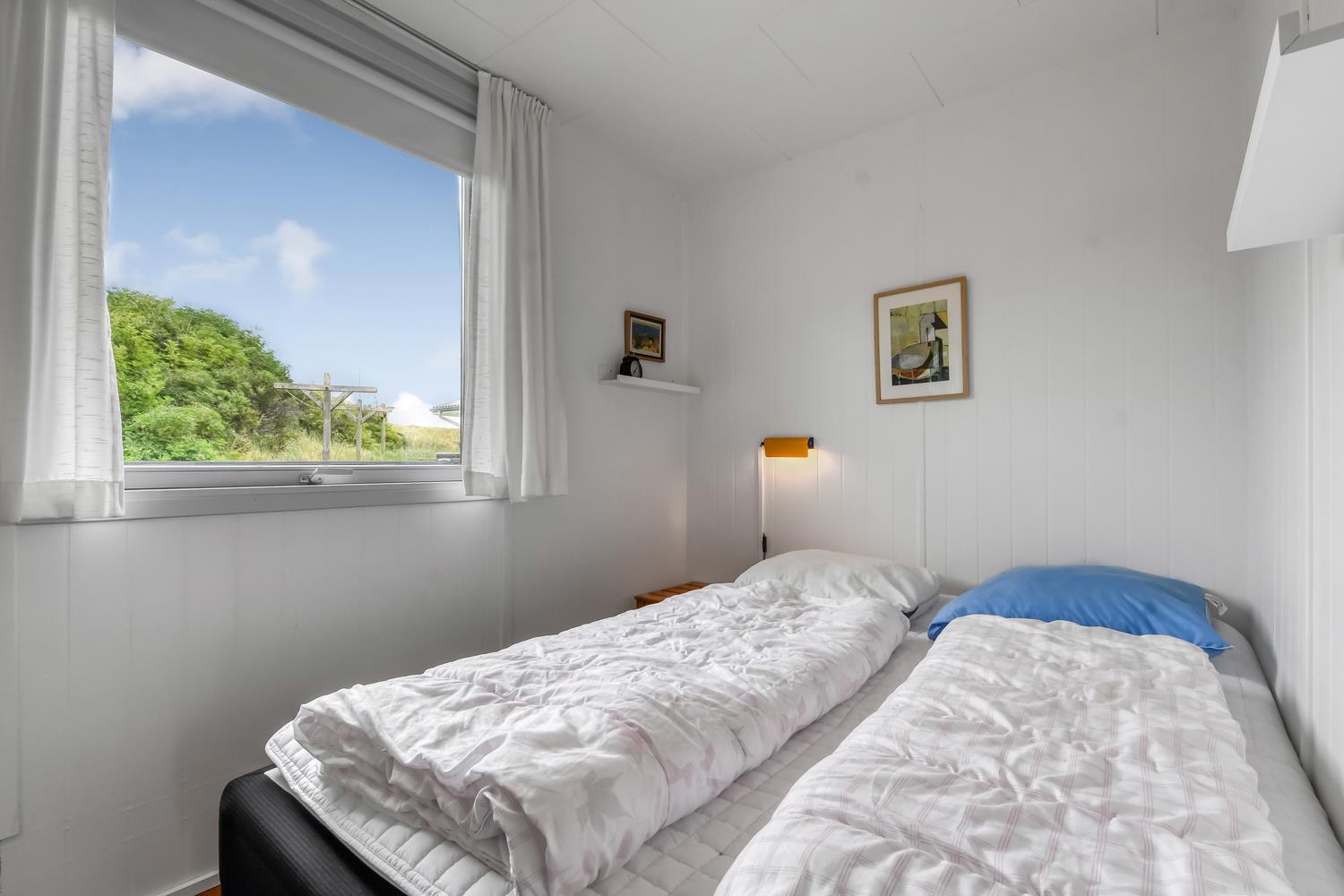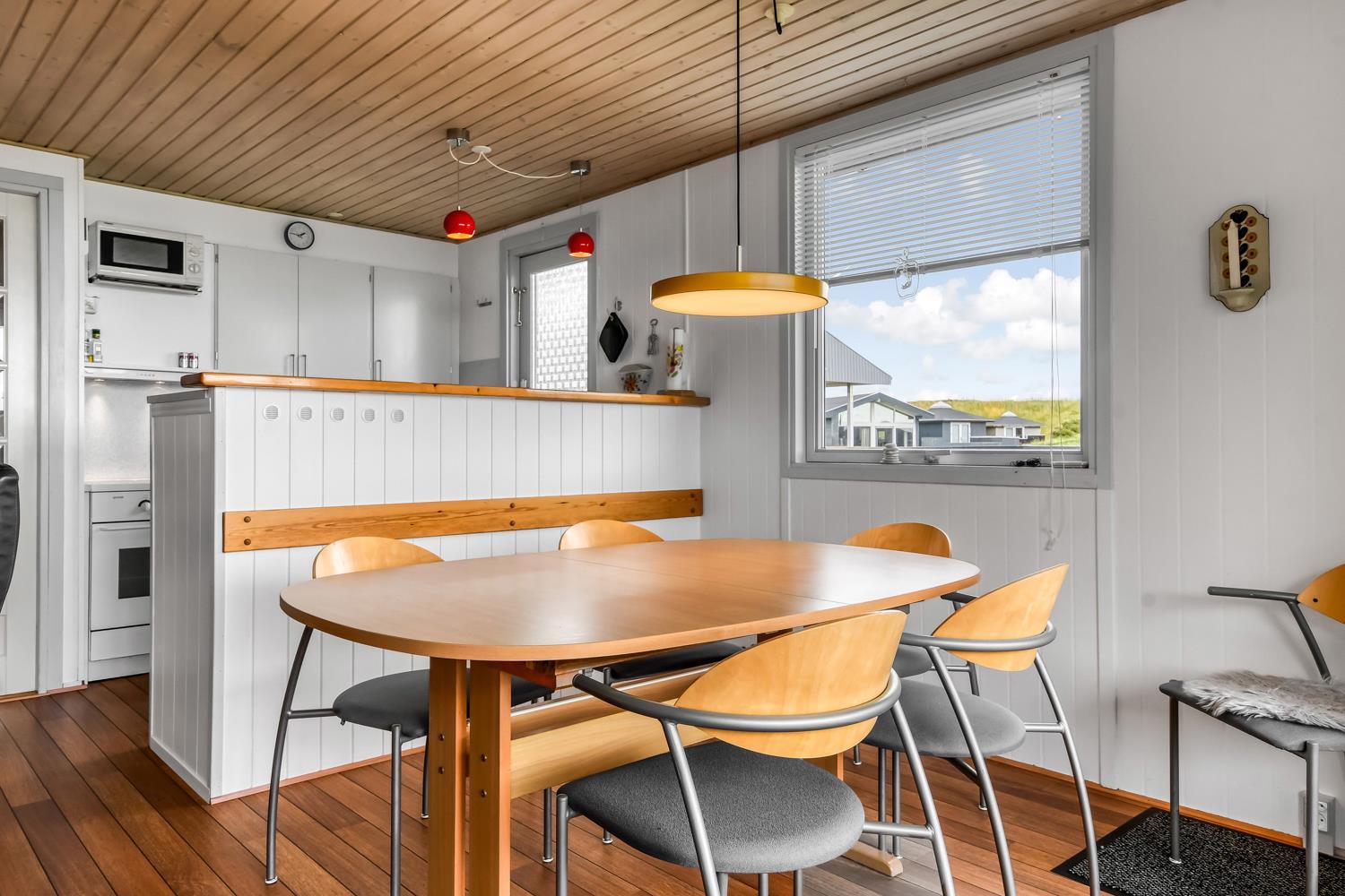55 m2 træferiehus som er bygget i 1971 og delvis renoveret i 2015. 2 soveværelser (13/4 seng (140x200), 2S ( 85x190). Kombineret opholdsstue og pænt, nyere køkkenhjørne. Lige på den anden side af køkkenhjørnet er spisebordet placeret. Herudover er der tv med danske og tyske kanaler. Varmepumpe og en dejlig brændeovn søger for en billig varmeregning og ekstra hygge. Pænt veludstyret køkkenhjørne med komfur med kogeplader og ovn, emhætte og køleskab med lille fryseboks, opvaskemaskine. Flot badeværelse med toilet, bruser, håndvask, vaskemaskine og klinkegulv med gulvvarme. Fra stuen er der kig til Vesterhavet og klitterne. Der er trægulv i hele huset. Køle-/fryseskab i køjerummet. Ikke ryger hus. Husdyr ikke tilladt.