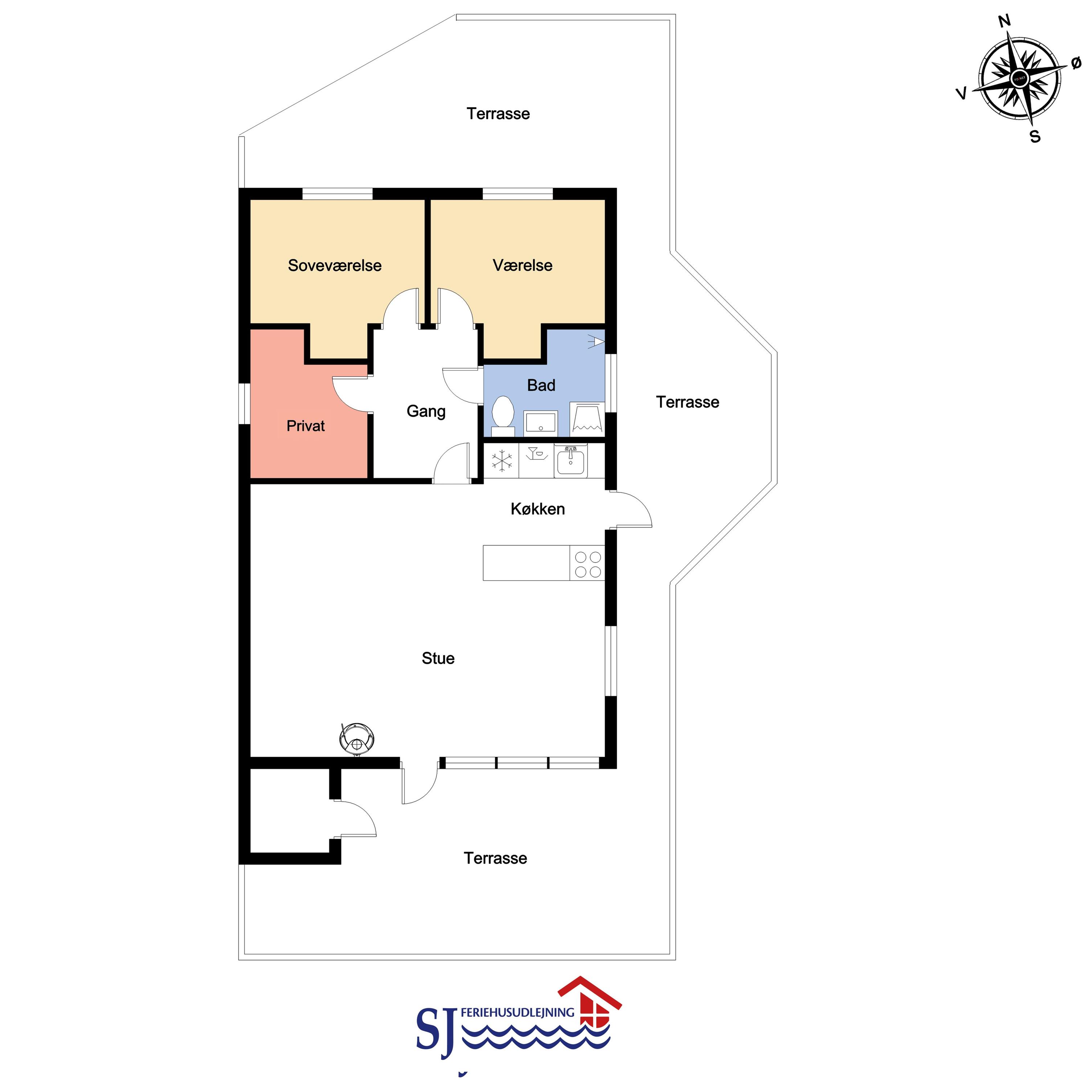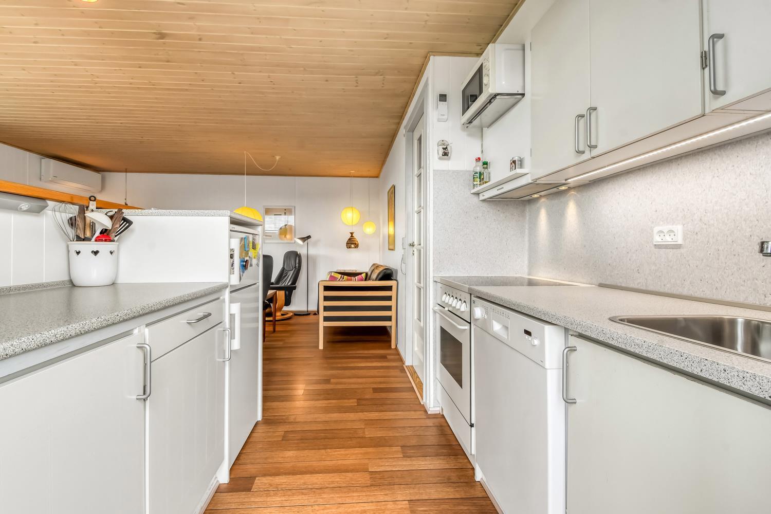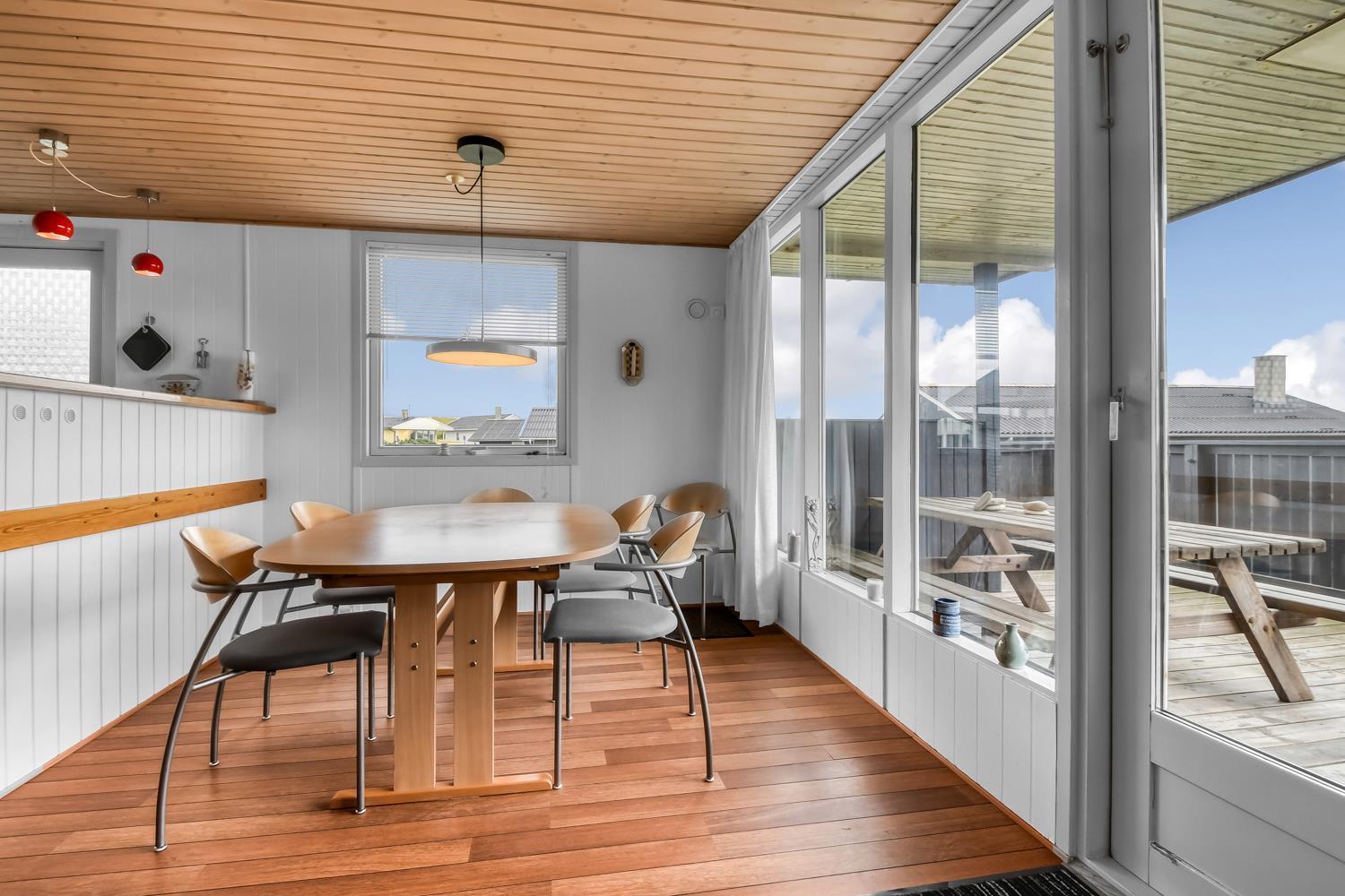 55 m2 træferiehus som er bygget i 1971 og delvis renoveret i 2015. 2 soveværelser (13/4 seng (140x200), 2S ( 85x190). Kombineret opholdsstue og pænt, nyere køkkenhjørne. Lige på den anden side af køkkenhjørnet er spisebordet placeret. Herudover er der tv med danske og tyske kanaler. Varmepumpe og en dejlig brændeovn søger for en billig varmeregning og ekstra hygge. Pænt veludstyret køkkenhjørne med komfur med kogeplader og ovn, emhætte og køleskab med lille fryseboks, opvaskemaskine. Flot badeværelse med toilet, bruser, håndvask, vaskemaskine og klinkegulv med gulvvarme. Fra stuen er der kig til Vesterhavet og klitterne. Der er trægulv i hele huset. Køle-/fryseskab i køjerummet. Ikke ryger hus. Husdyr ikke tilladt.