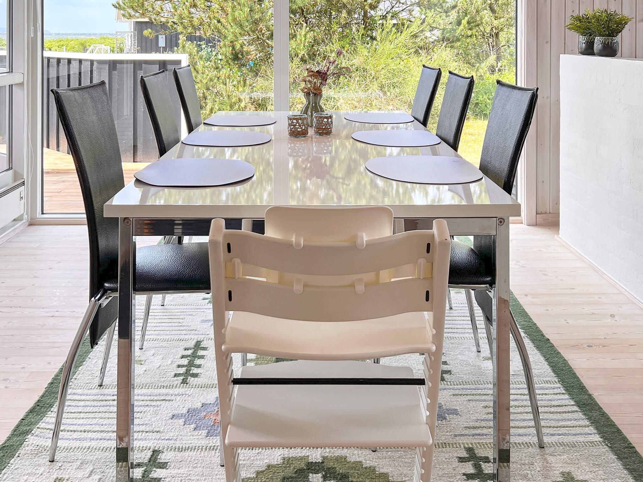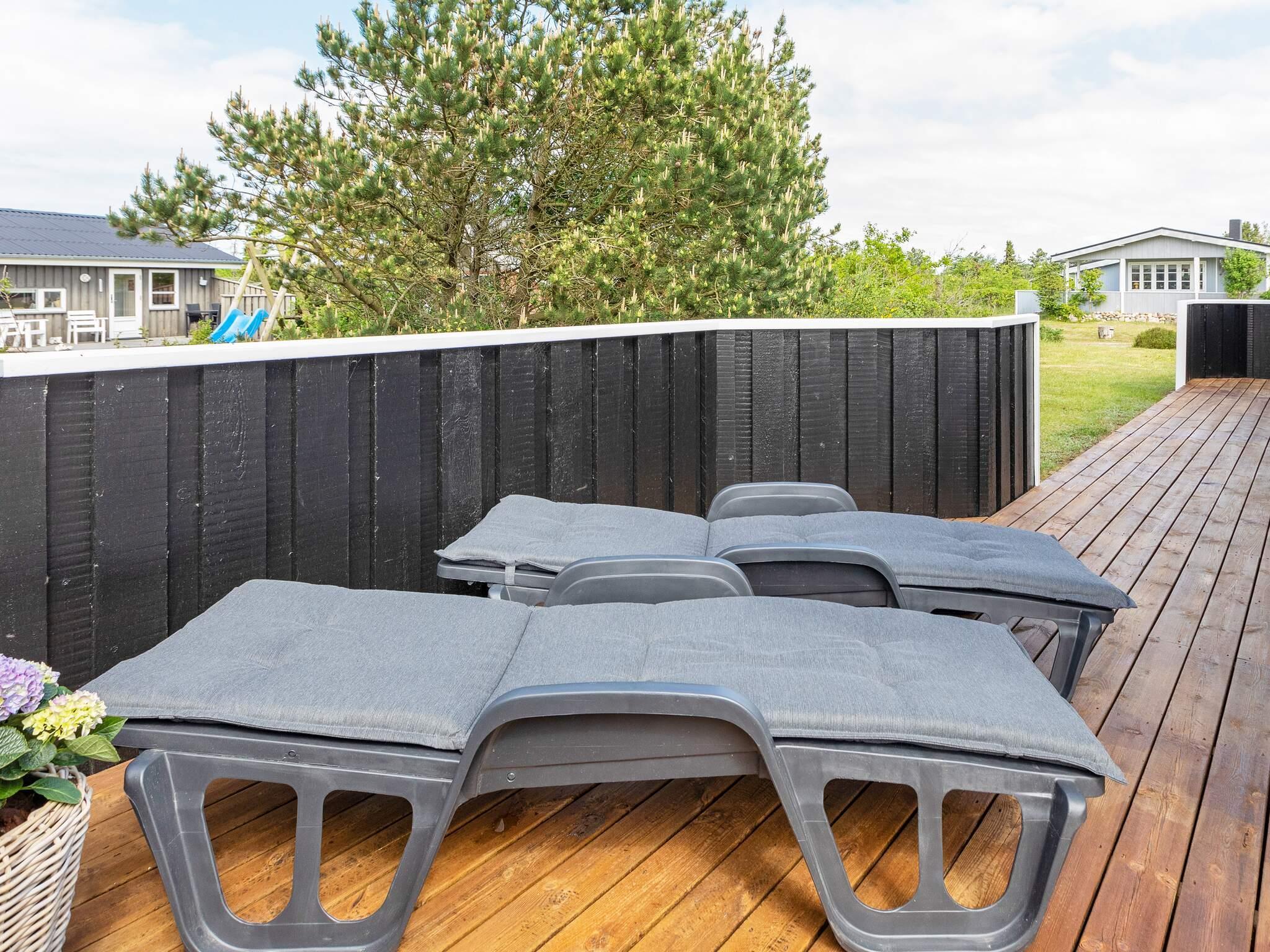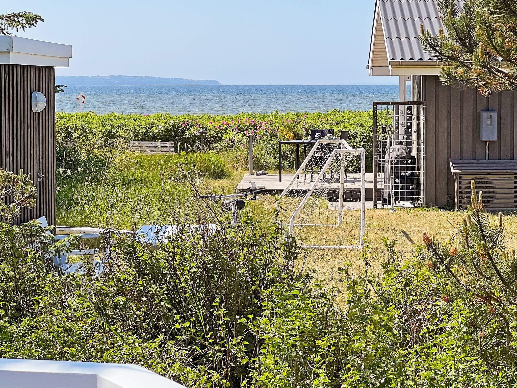 Der er både åben og overdækket terrasse med komfortable havemøbler, liggestole og gasgrill, hvor du kan nyde aftensmaden, mens du ser solen gå ned over Limfjorden. Der er legehus i haven.