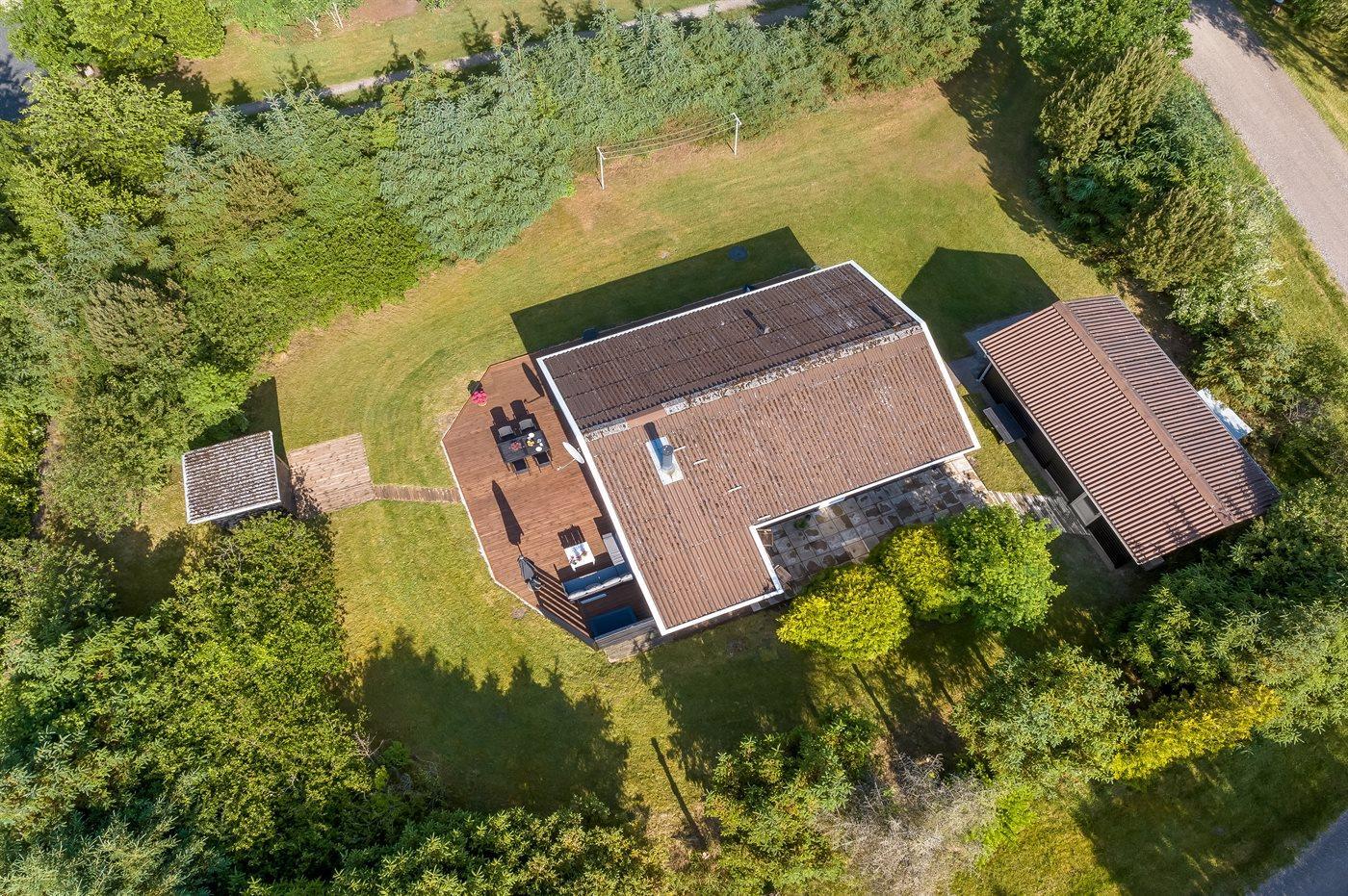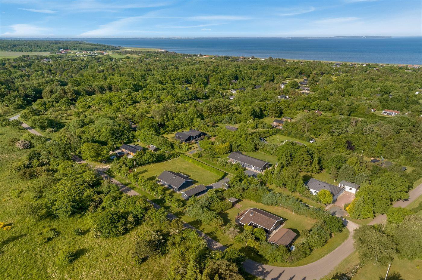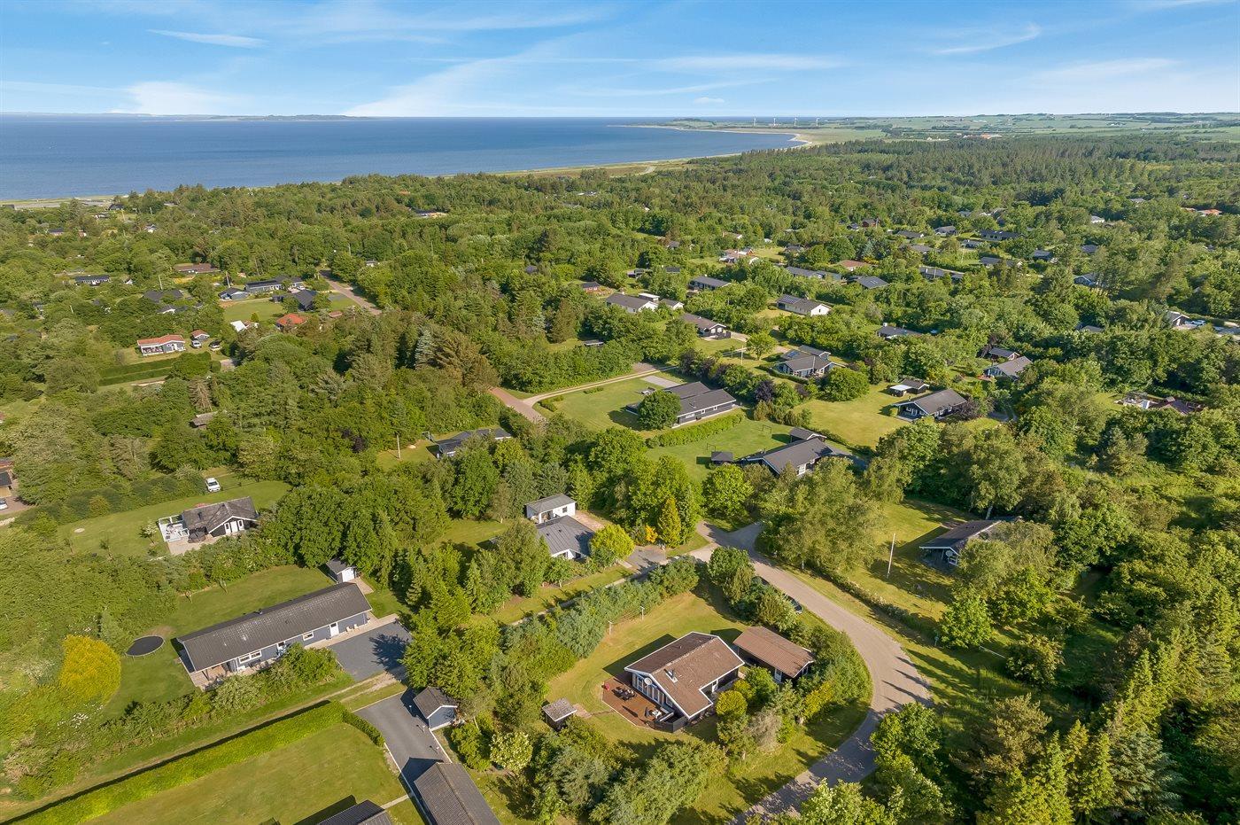 Ferieboligen er beliggende på en 1311 m² stor naturgrund. Der er 700 m til fjorden. Nærmeste forretning er beliggende i en afstand af 3000 m. Til ferieboligen hører åbent terrasseareal. Sandkasse. Parkering ved ferieboligen.