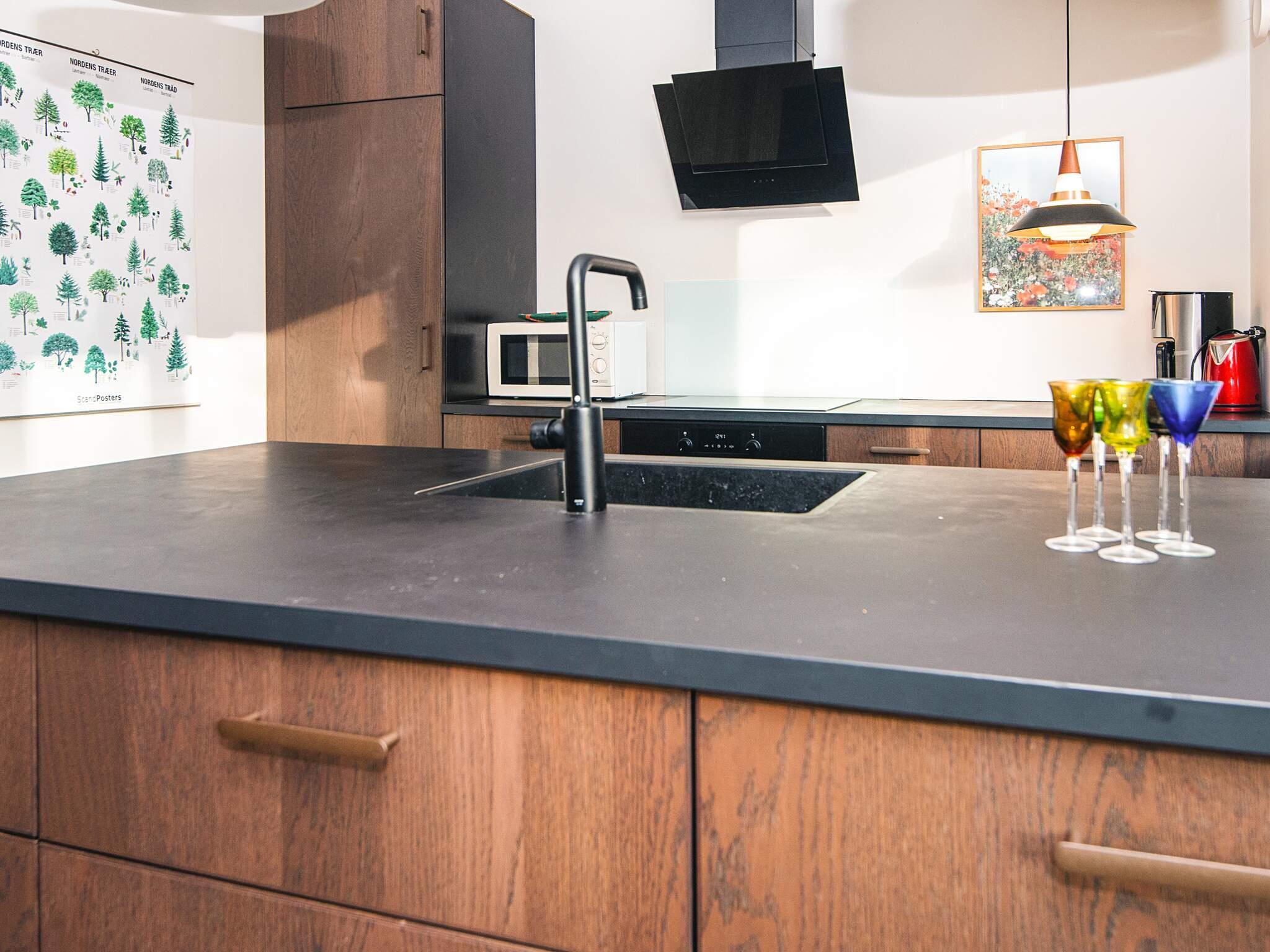 Køkkenafd.: El-komfur, køleskab, mikroovn, emhætte, kaffemaskine, opvaskemask.