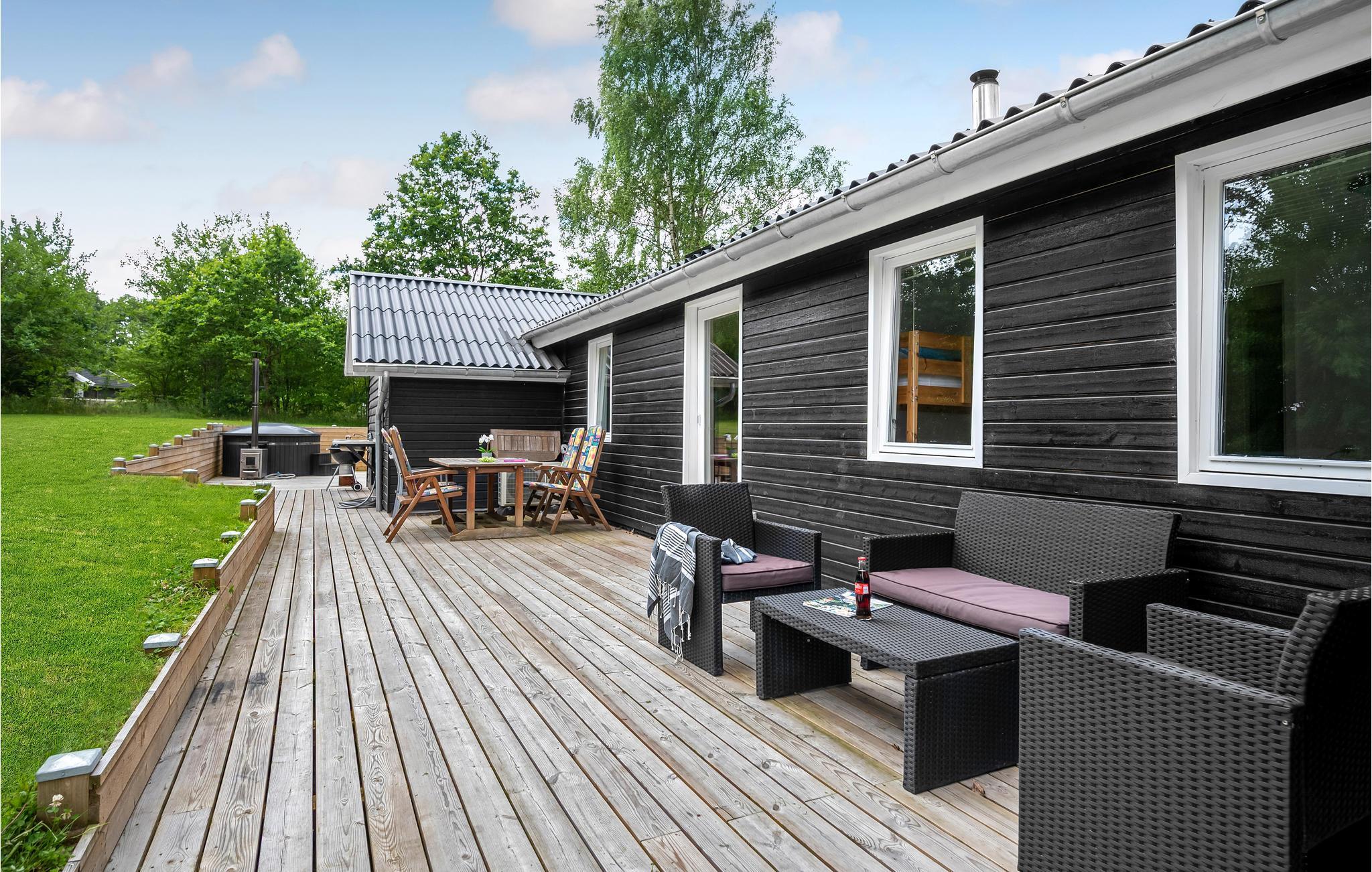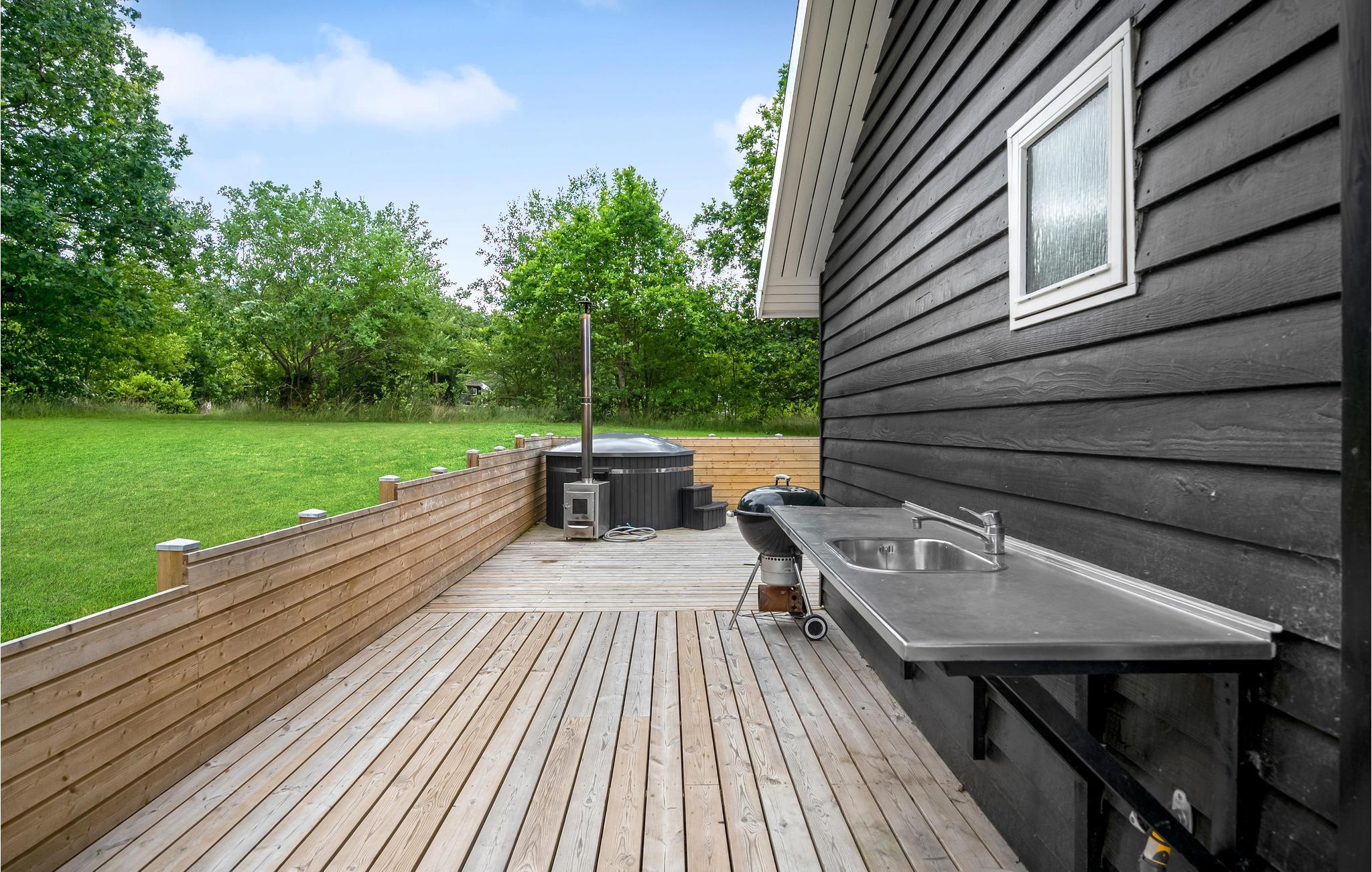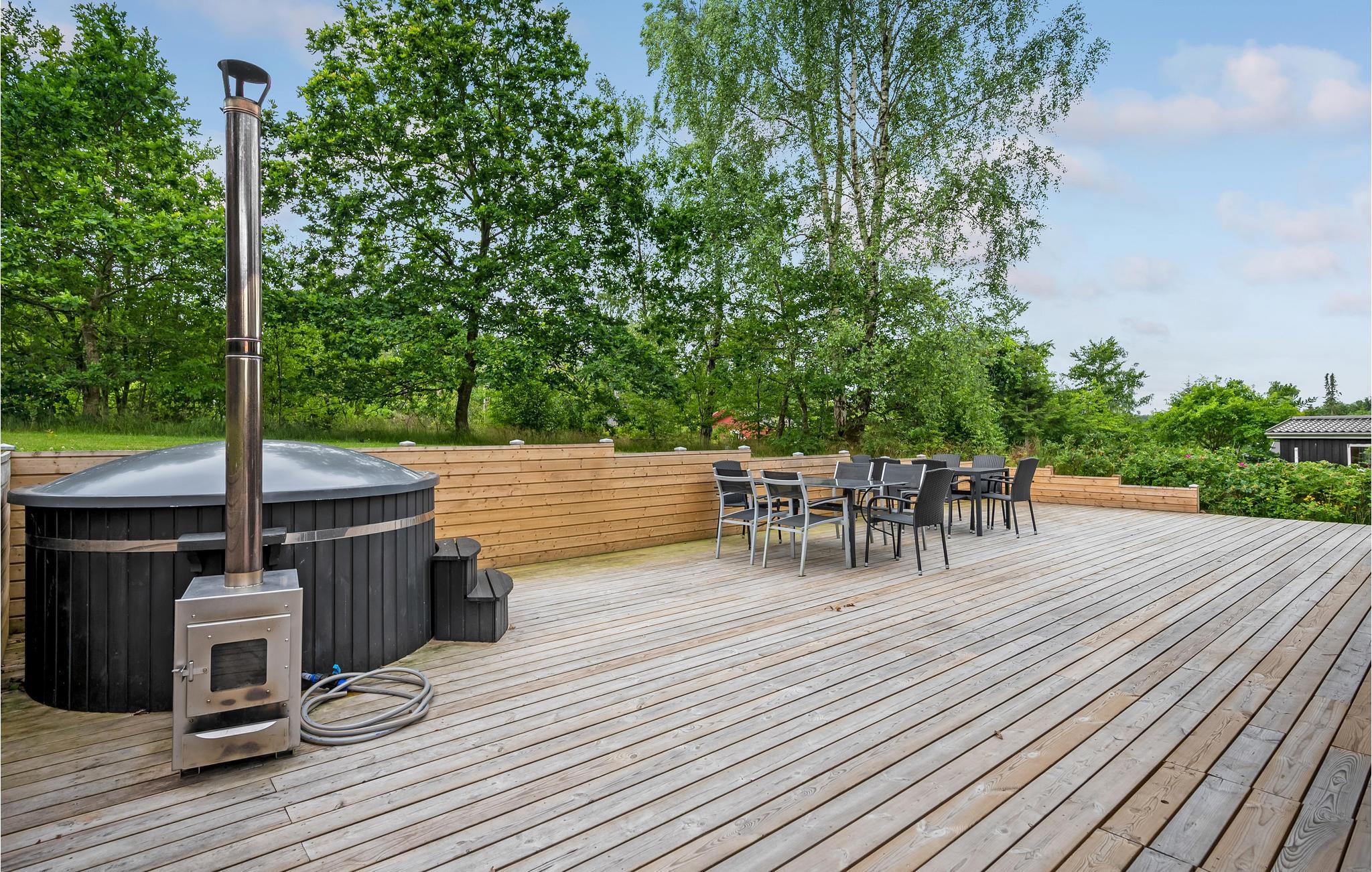 Træd ud på træterrassen, som løber rundt om det meste af huset. Læn jer tilbage i havemøblerne med en god bog eller et krydsordsblad, mens børnene leger på græsplænen. Hvis I trænger til lidt ekstra forkælelse, er vildmarksbadet det perfekte sted at slappe af efter en lang dag på farten.