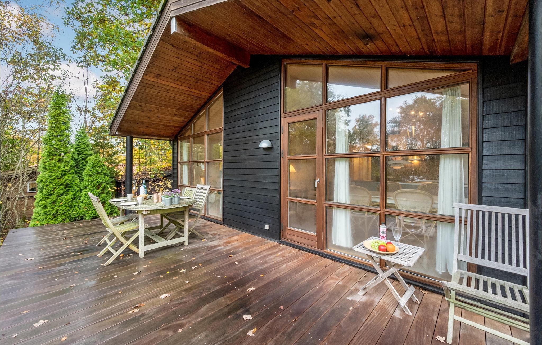 Dette charmerende feriehus ligger i naturskønne omgivelser nær Gudenåen. Masser af naturligt lys falder gennem de store vinduespartier ind i den rummelige, åbne opholdsstue og skaber en behagelig atmosfære til rolige stunder. Her vil I tilbringe mange hyggelige timer sammen med jeres kære med at lave mad, spise og slappe af foran brændeovnen. Når vejret er godt, kan I trække ud på den store træterrasse. Lad børnene boltre sig på det grønne område, mens I holder øje fra havemøblerne eller slapper af med en god bog.