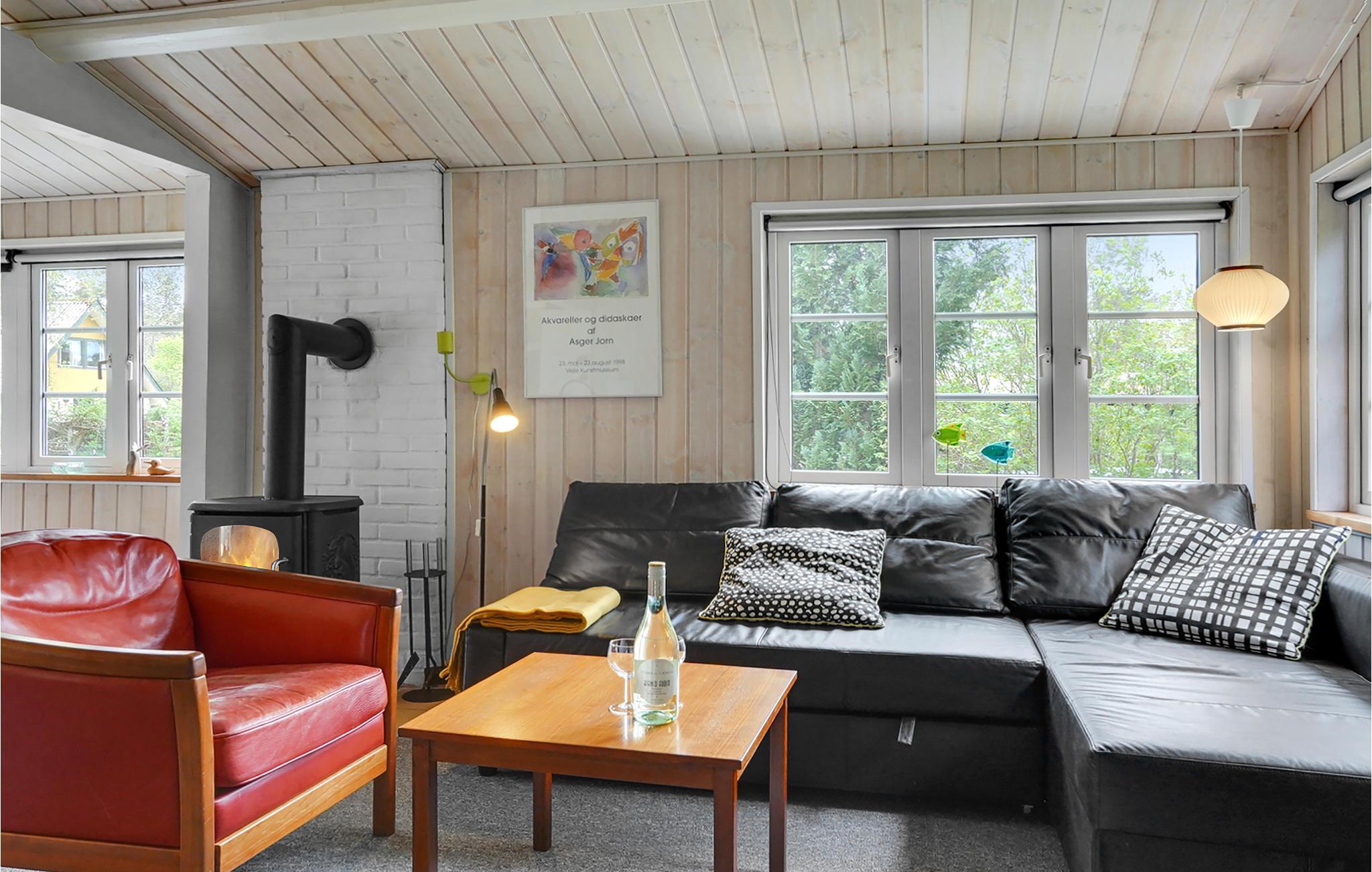 Charmerende og meget hyggeligt feriehus indrettet i den rigtige feriehusstil. Her er tænkt over indretning og den rigtige stemning. Der er flere gode terrasser, en er overdækket. Her kan I sidde og se den lyse sommerdag blive til nat, eller tage en sweater på og sidde ude selvom sommeren er blevet til efterår. På den overdækkede terrasse er der også en fin fiskerenseplads, hvor I nemt og bekvemt kan rense dagens fangst. Grunden er omkranset af træer som både giver læ og privatliv. Området er børnevenligt, om sommeren kan I tage en dukkert i den fælles udendørs pool. I kan sejle kano i Gudenåen, ikke langt væk. Naturen indbyder til gå- og cykelture, I kan også tage til enten Silkeborg eller Aarhus og nyde byens liv. Begge byer ligger under en time væk i bil.