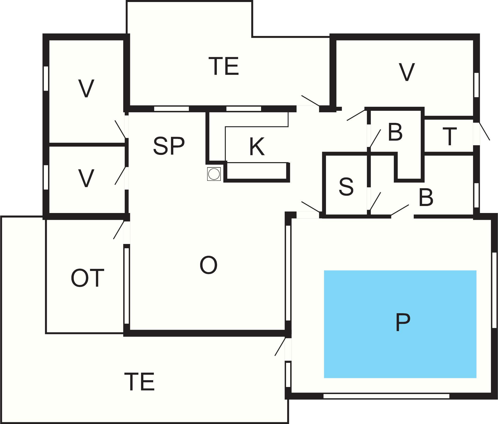 Stort poolområde med masser af plads omkring til at svømme baner eller bare lege. Poolområdet har et fantastisk naturligt lysindfald, hvor man også kan nyde udsigten til den uberørte natur.