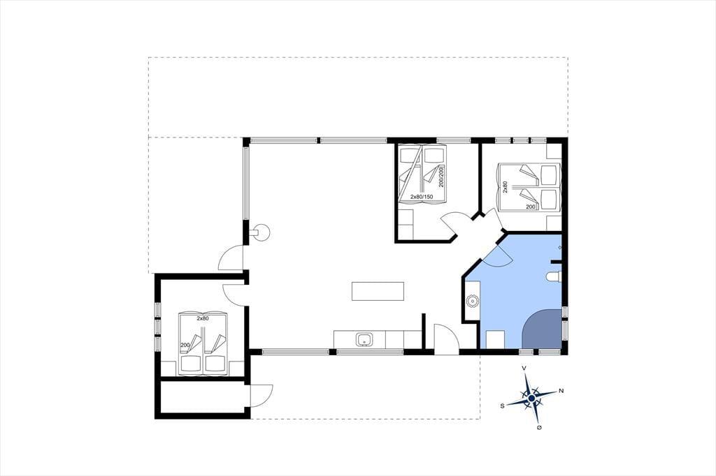 Sommerhuset er enkel og funktionel, og der er plads til både en større familie og to små familier, der ønsker at tilbringe ferien sammen. Ved indgangen møder dig to hyggelige værelser og et badeværelse, der udover en bruseniche også har et dejligt spabad, perfekt til lidt hjemme-wellness og afslapning. Køkkenet åbner op mod spiseafdelingen og stuen, hvilket skaber en fornemmelse af fællesskab under alle aktiviteter - madlavning, brætspil, eller bare en stille stund med en avis. Stuen byder på bløde sofaer, store vinduer der fylder rummet med et behageligt lys, og en brændeovn, der spreder varme på kølige dage og skaber en atmosfære af fuldstændig afslapning. Det sidste værelse ligger ved spiseafdelingen og har ligeledes god plads og opbevaringsmuligheder til tøj og sko. Alt i huset udstråler god kvalitet og stilfuld indretning med lyse og varme farver, der skaber en indbydende atmosfære.