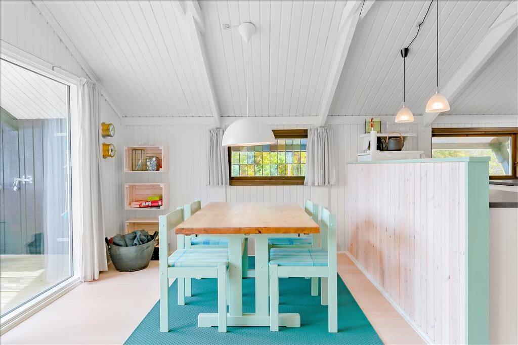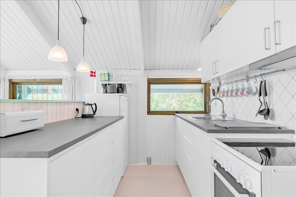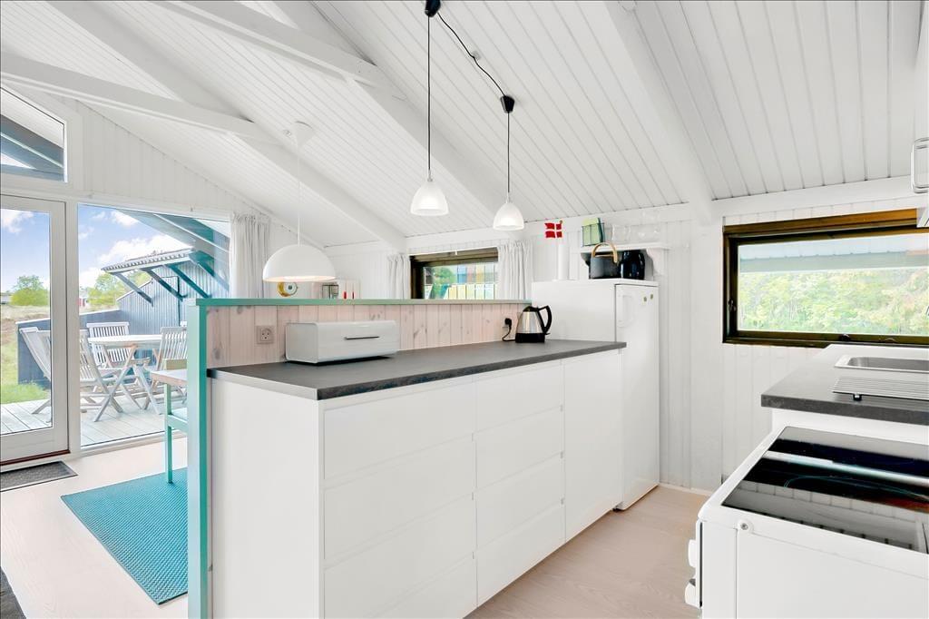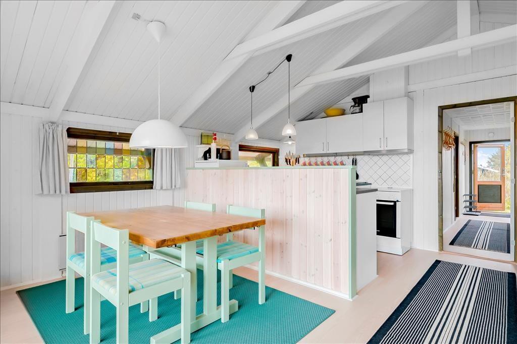 Dette sommerhus hører til i kategorien for ’småt med godt’! 68 velholdte og godt udnyttede m2 på en stille og rolig sommerhusvej lige uden for Tversted by. Sommerhuset er indrettet med pæne møbler og gode senge. Det har højt til loftet, og man kan nyde det flotte nordjyske lys, som strømmer ind ad det store vinduesparti i stuen. Stuen hænger sammen med køkkenet i ét stort opholdsrum, så man kan være sammen om de fleste aktiviteter. Den store og flotte brændeovn sørger for en hyggelig stemning, så her har man rig mulighed for at sætte tempoet lidt ned og nyde en god bog eller avisen for en stund. Sommerhuset har plads til fem overnattende personer fordelt på tre værelser, og badeværelset har brusekabine og gulvvarme. Desuden også vaskemaskine, så der er mulighed for hele tiden at have rent badetøj og håndklæder til turene i Vesterhavet. Dette sommerhus er en dejlig lille oase, hvor hyggen og samværet med familien i den grad er i højsædet.