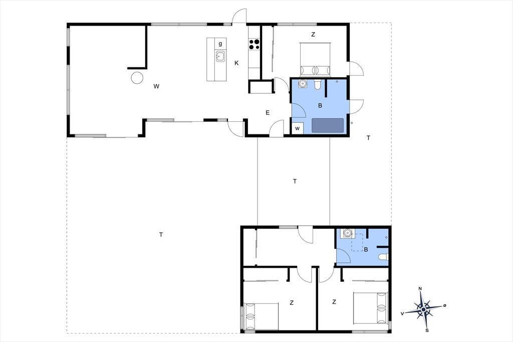 Som du træder indenfor i sommerhuset, bliver du mødt af en lys og moderne indretning. Køkkenet og alrummet står i åben forbindelse, hvilket skaber en rummelig og social atmosfære, perfekt til samvær med familie og venner. Det hyggelige køkkenområde gør det nemt at tilberede lækre måltider, som kan nydes omkring spisebordet, mens den varme brændeovn spreder hygge og varme på køligere aftener. Når det er tid til at slappe af, kan du kravle op i den lille alkove, som giver den perfekte, hyggelige plads til at læse en god bog eller tage en eftermiddagshvil. De to badeværelser giver ekstra komfort til både familier og grupper, og gør det nemt for alle at få en god start på dagen eller afslutte en dag fuld af oplevelser.