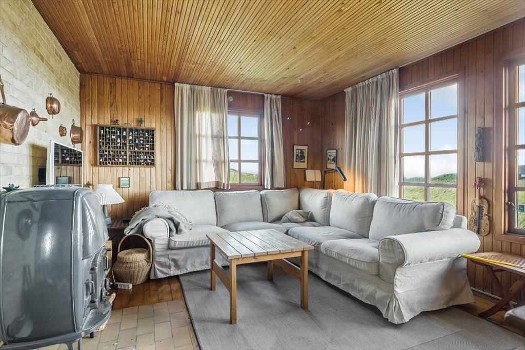 Når du træder ind i sommerhuset, bliver du mødt af en varm og indbydende atmosfære, som straks får dig til at føle dig hjemme. Den rummelige stue er omkranset af store vinduer, der lader lyset strømme ind og giver en fantastisk udsigt over landskabet. Det er det perfekte sted at slappe af med en god bog eller samles om et spil med familien. Den hyggelige brændeovn tilføjer en ekstra dimension af varme og hygge på de kølige aftener. Køkkenet er funktionelt og indbydende, ideelt til at tilberede feriemåltider, som kan nydes ved spisebordet, mens I beundrer den flotte udsigt.